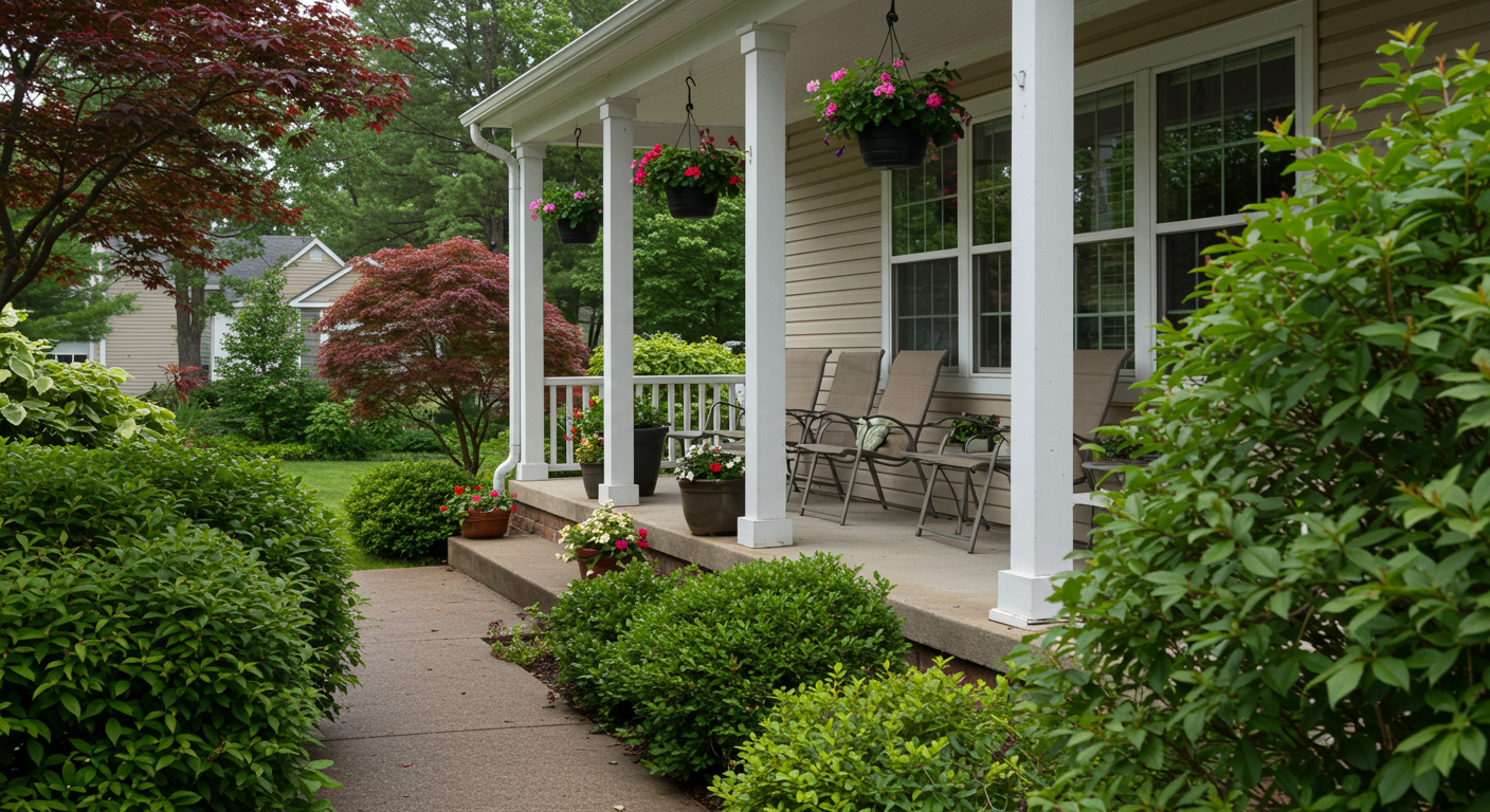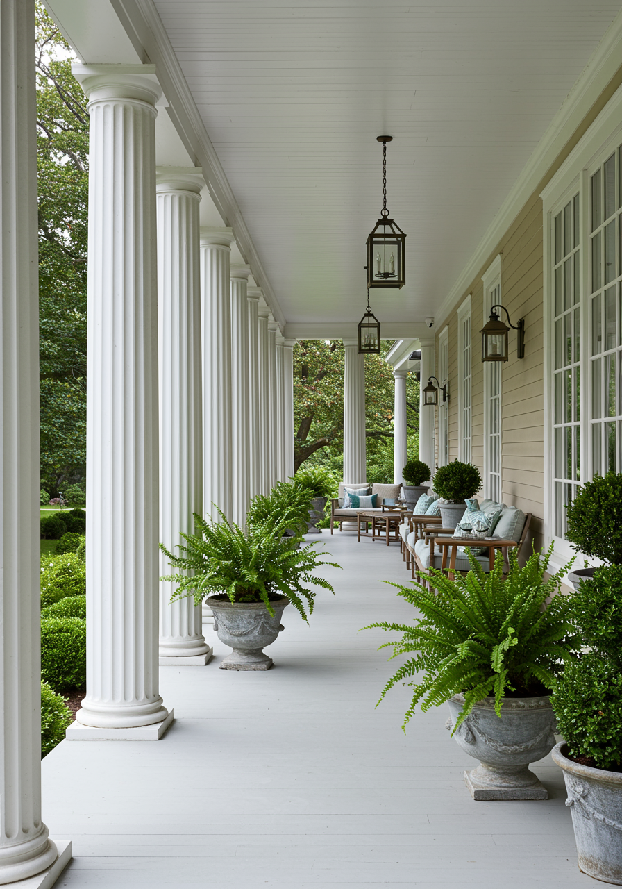 Green plants like ferns and boxwood can give your front porch a lush, healthy feel. And while seasonal blooms have their place, perennials provide a foundation of long-lasting foliage that you can count on throughout the growing season. Choose the size of your pots to suit the size of your porch. A spacious porch can handle a great big potted plant; on a smaller porch, try a tall, narrow pot or a small planter box.
