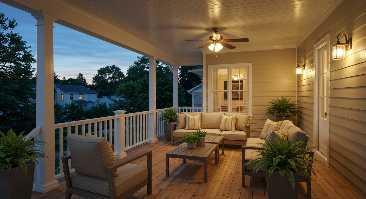 If bugs, heat or both are an issue where you live, it’s worth investing in a porch fan. Hire an electrician to install a ceiling-mounted model, or plug in a standing or tabletop outdoor version.