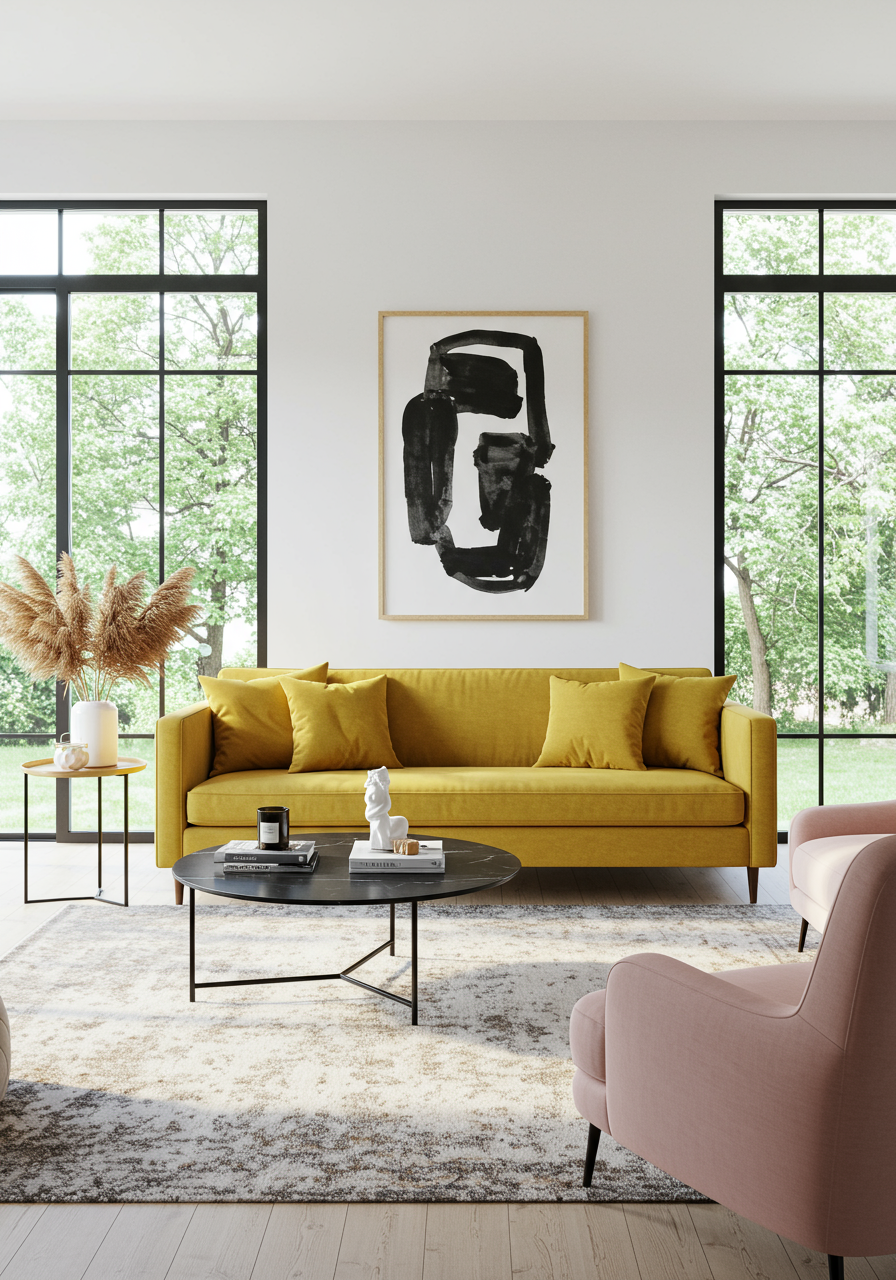 Really make a textural statement with a sofa or a cushy seat upholstered in sumptuous, butter-soft velvet. Balance the indulgent look and feel of velvet by keeping other furnishings and elements in the room more sparse, hard-edged and contemporary.