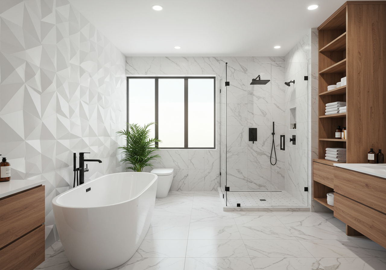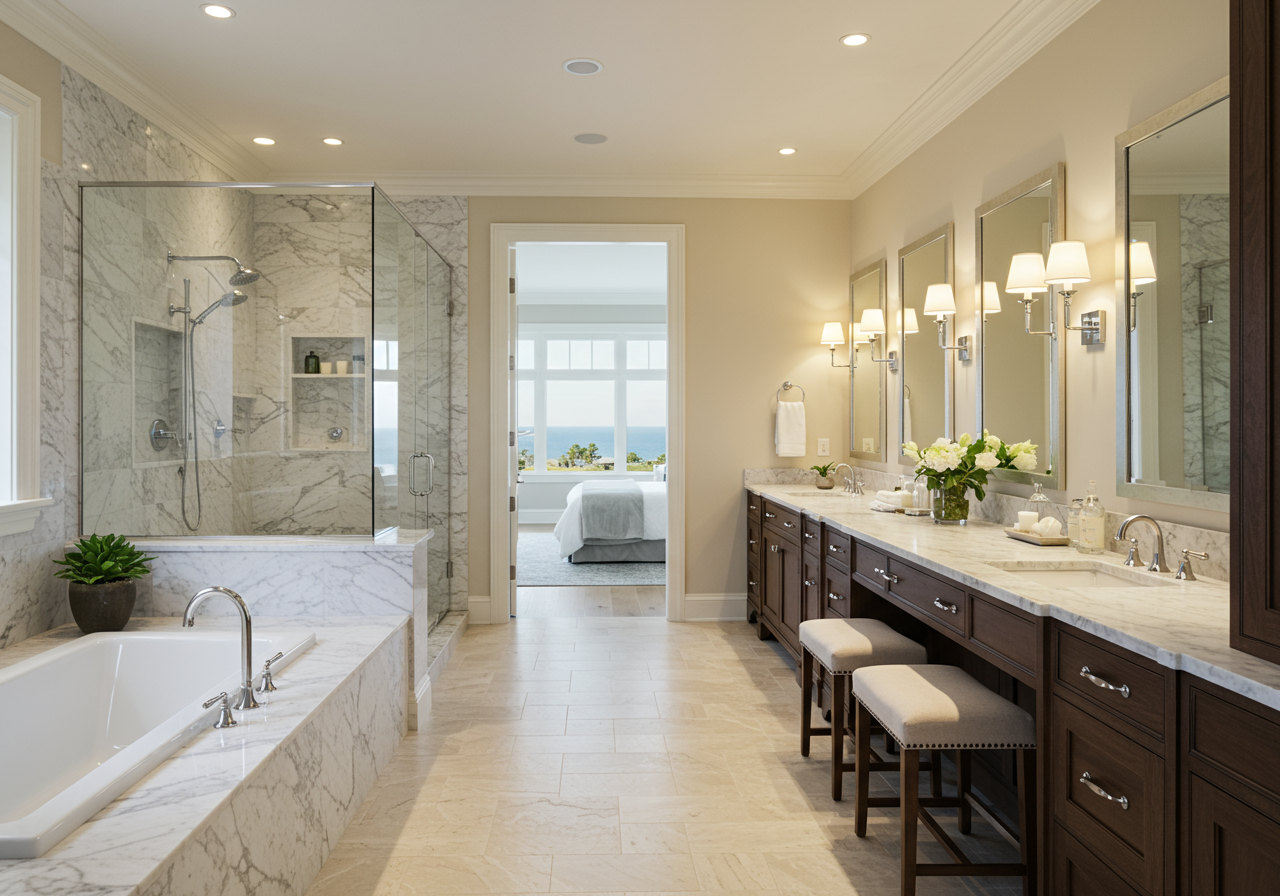A curbless shower entrance minimizes your risk of tripping over a step as you enter the shower. It’s also a wheelchair-accessible feature.