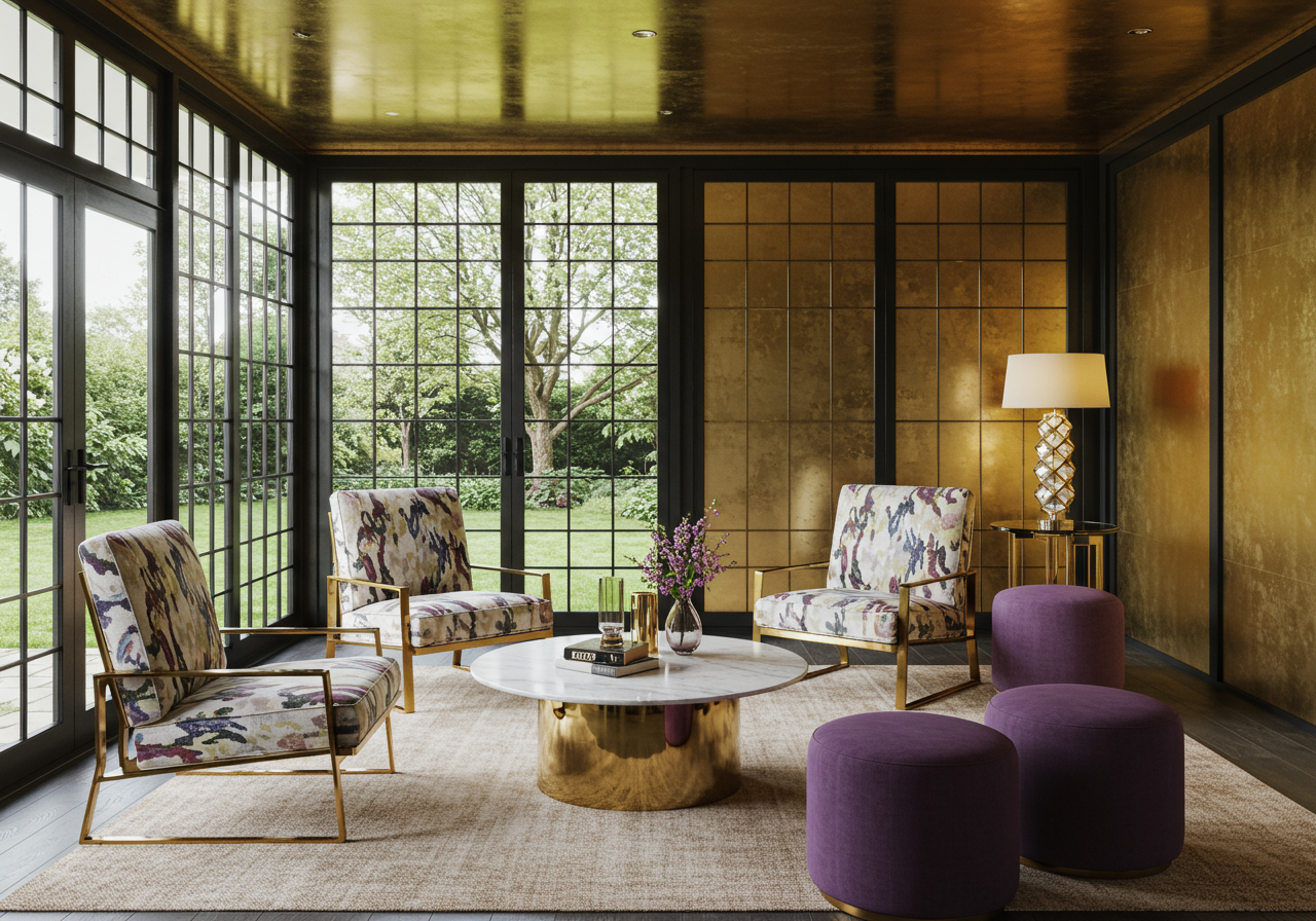 While you might be thinking “wait, this room isn’t remotely minimal” (and you’re not totally wrong here), there is a lesson to be learned from Greer Interior Design for a minimal space: all you really need is one element to take a room from subtle to daring. Strip away the gold leaf wall treatment, and you’re left with a darling sunroom.