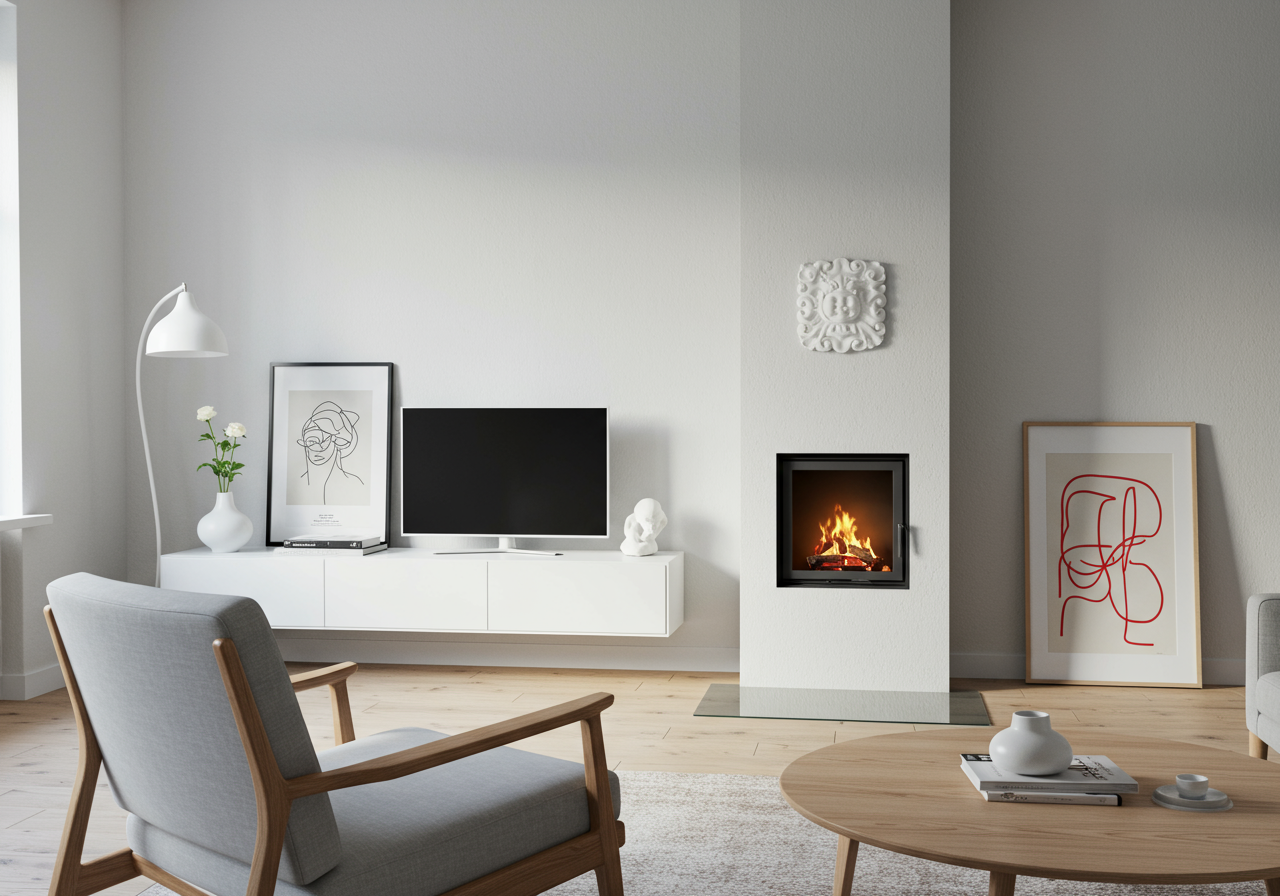 Manipulating negative space, as seen in this Dutch living room, proves how minimalism can be the furthest thing from boring. The interplay of the little fireplace, tiny cuckoo clock, small television, and framed posters creates tons of visual interest while also giving the living room a bit of an art gallery vibe.