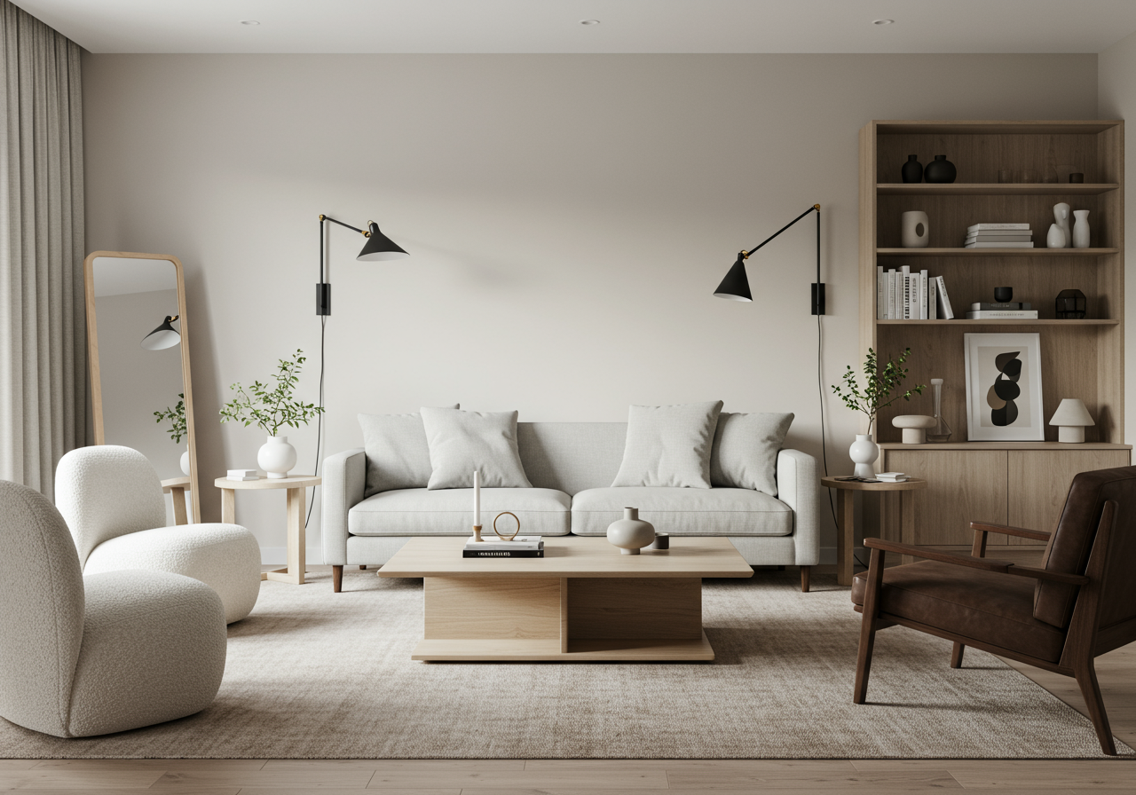 Minimalism sometimes gets a bad rap for looking sterile, but this style isn’t solely reserved for all-white, cold spaces. There are plenty of minimalist living rooms that feel cozy. Case in point: this Barcelona living room. If you mix textures and add a few natural touches to your room, the overall feel will be warm and welcoming, even if your room embraces blank space with just a few key furnishings and details.