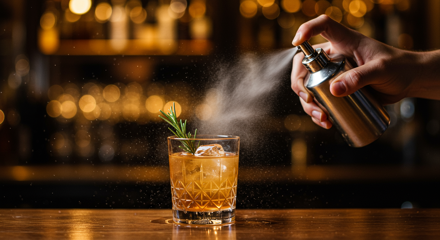 When the temperature drops, you’ll want to warm yourself on the outside as well as the inside, and you can with this smoky cocktail. “Kate, one of our other bartenders, is a Scotch fan,” says Mellgren. “This is her interpretation of an Old Fashioned with scotch.” One of four crafted Old Fashioneds on the menu, Kate’s incorporates blended scotch, honey, walnut and Angostura aromatic bitters and Laphroaig mist. This cozy cocktail is then garnished with a sprig of smoked rosemary.