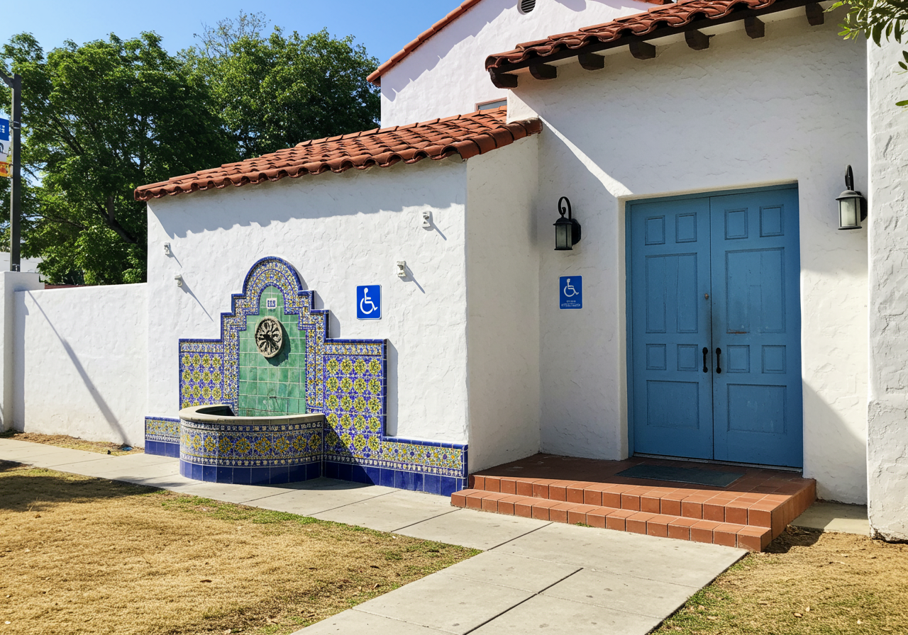 Just beyond the gateway arch, at 34105 Pacific Coast Highway, you'll find the oldest building in Dana Point — currently vacant, but built as the real estate office for the development efforts of Sidney Woodruff (of Hollywood Sign fame). The Spanish Colonial Revival-style structure features a red terra cotta tile roof and tiled doorways and fountains — under restoration since 2020.