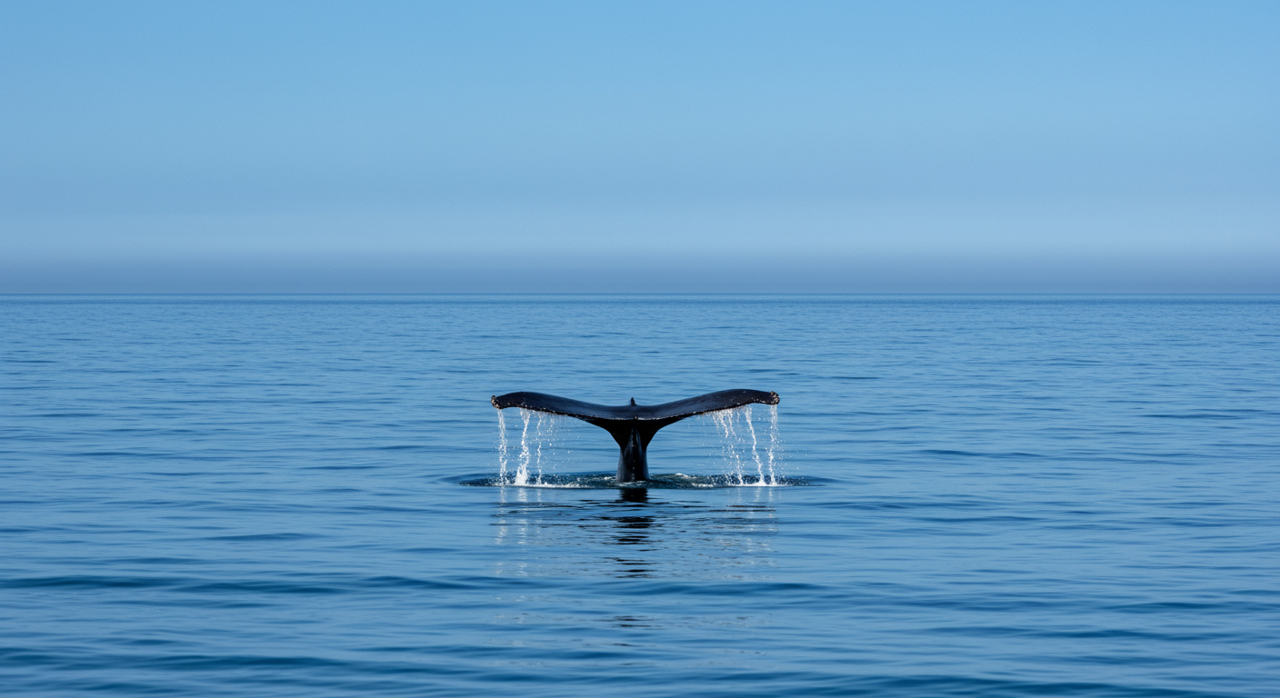 A whale flicks its tailfin out of the water for a brief moment before diving back down into the ocean. | Sandi Hemmerlein