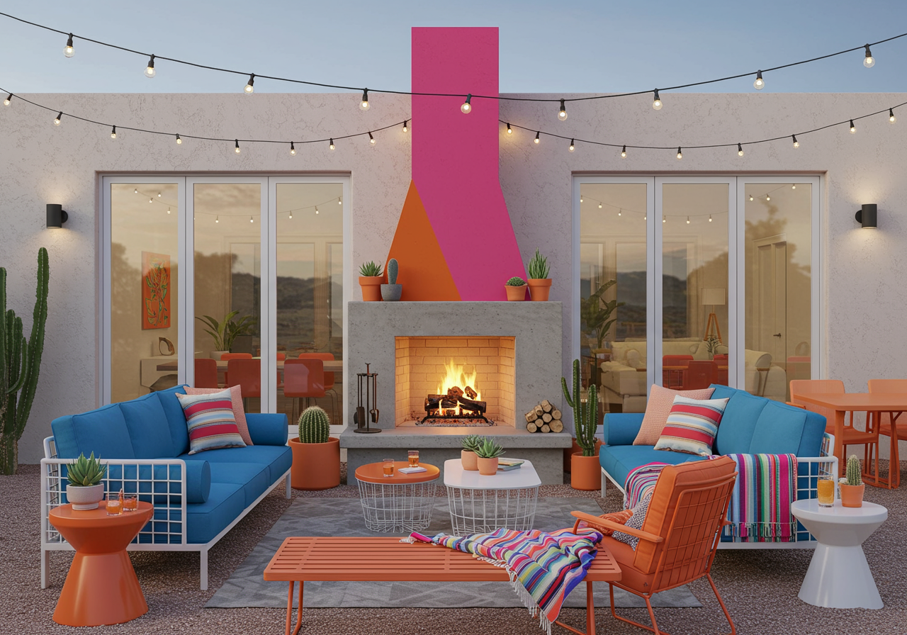 One way to guarantee your outdoor space feels fun, playful, and full of life? A quick coat of paint. Don’t be afraid to go bold in your backyard, even if it doesn’t perfectly match your home’s design. You can think of your outdoor space as its own entity that should blend with — but not match — your overall design scheme. If you’re feeling really gutsy, coat an outdoor fireplace, wall, or garden trellis with an eye-catching color combo, like this tangerine and lipstick pink duo spotted at The Saguaro in Scottsdale. Want to score this exact look? Sherwin-Williams’ Obstinate Orange is almost a dead-ringer for that cool shade.