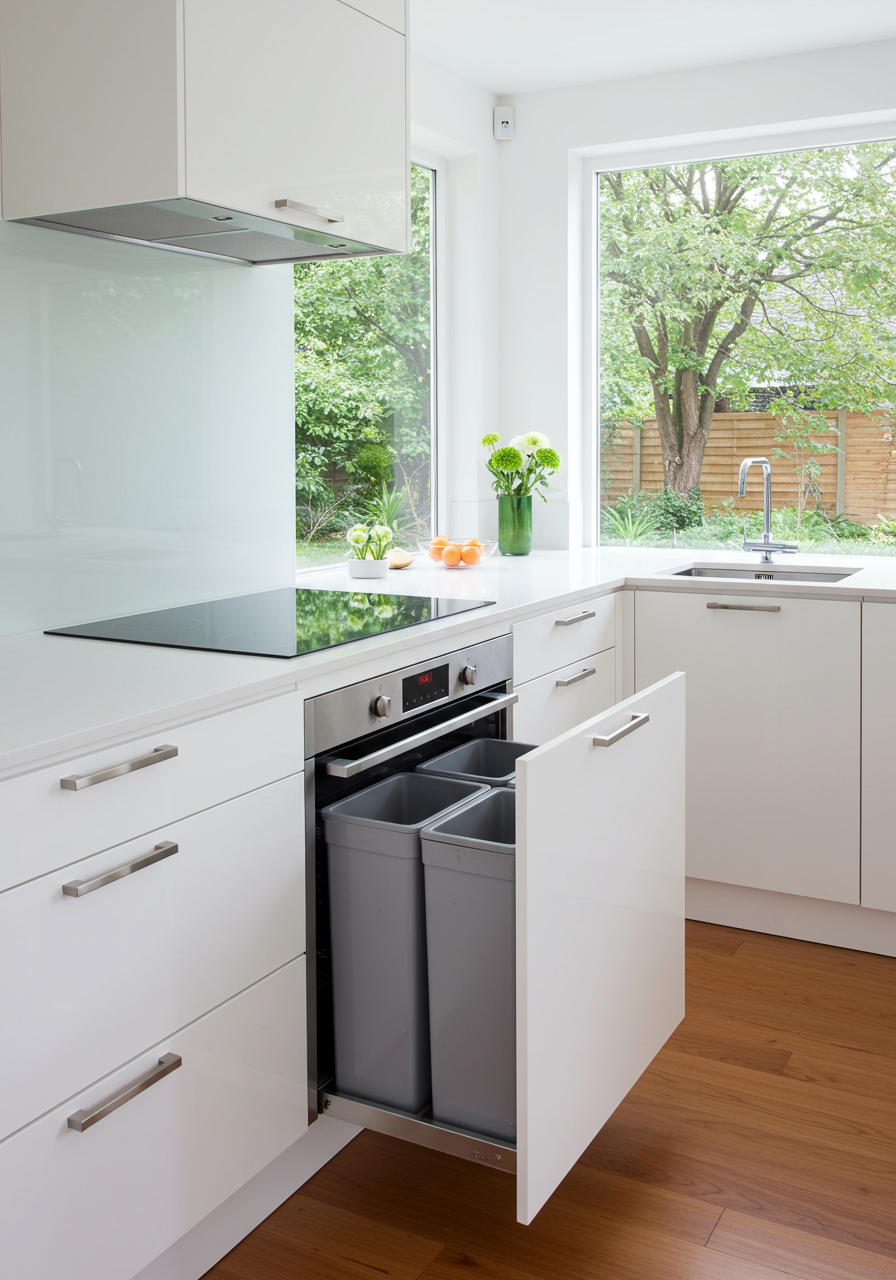 Trash bins. Some of the original pull-out units for kitchen storage were designed with stashing a trash can in mind. They’re still a popular choice for cabinets with no internal drawers or plumbing in the way, since many people don’t like to leave their trash exposed. Some units will hold just one can, but others have space for an additional trash can, which can be used for things like recycling.