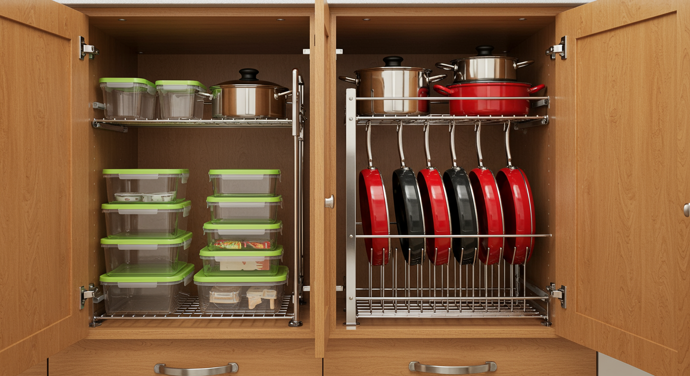 Kitchen storage can influence the entire feel and dynamic of how you navigate your kitchen. It’s wonderful to walk into a home that has lots of counter space, just stretching out like barren land ready for you to populate it with your favorite kitchen gadgets. But even a kitchen with limited counter space can be made so much more useful by better utilizing the thing that’s just below those counters: your lower cabinets. Lower cabinets are some of the most poorly utilized spaces in kitchens absolutely everywhere. No one wants to bend over to sort through dark and poorly organized cabinets, so eventually those spots just get kind of forgotten and ignored. This is where pull-out cabinet units can massively transform your space.