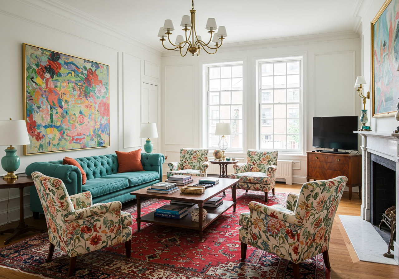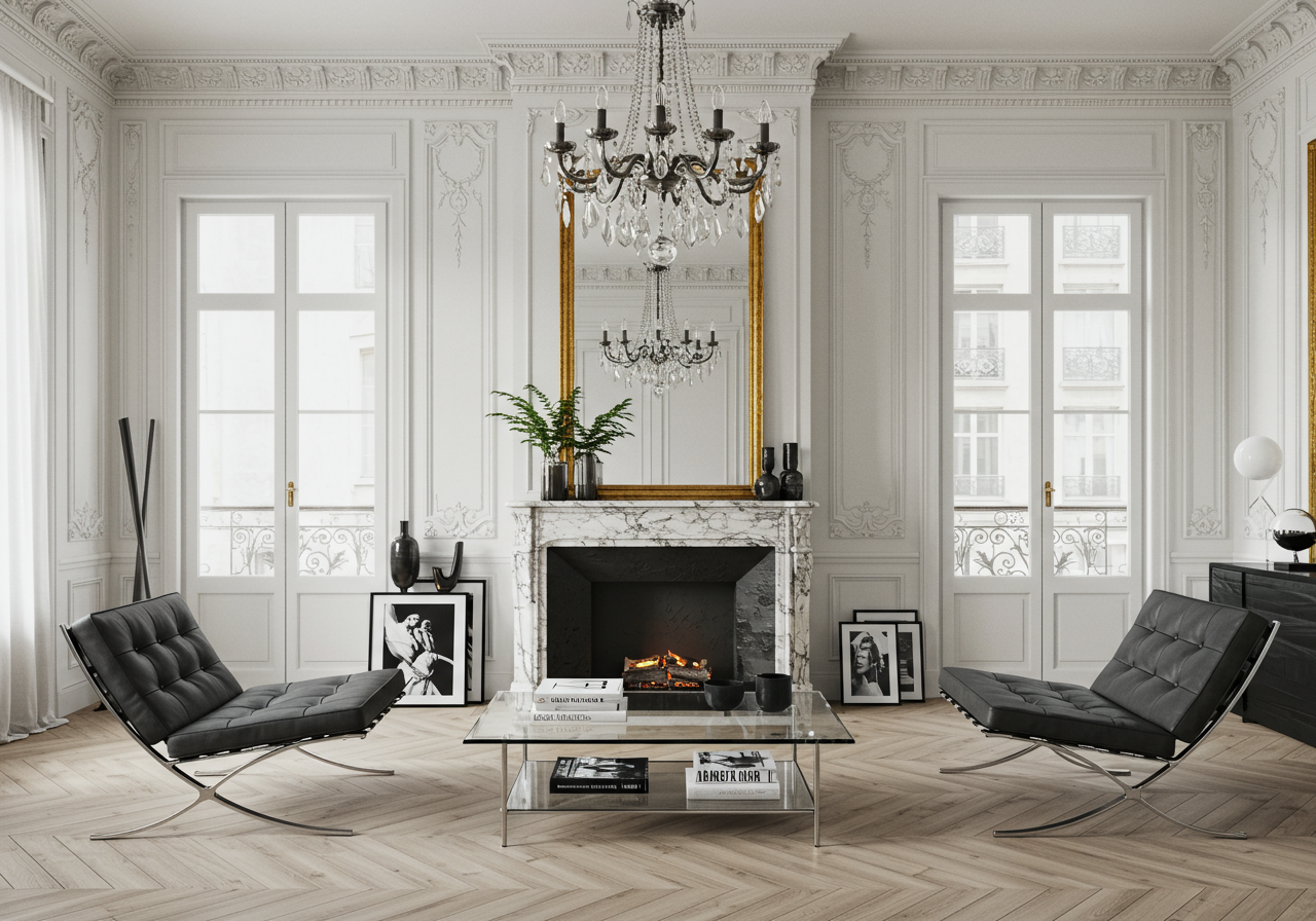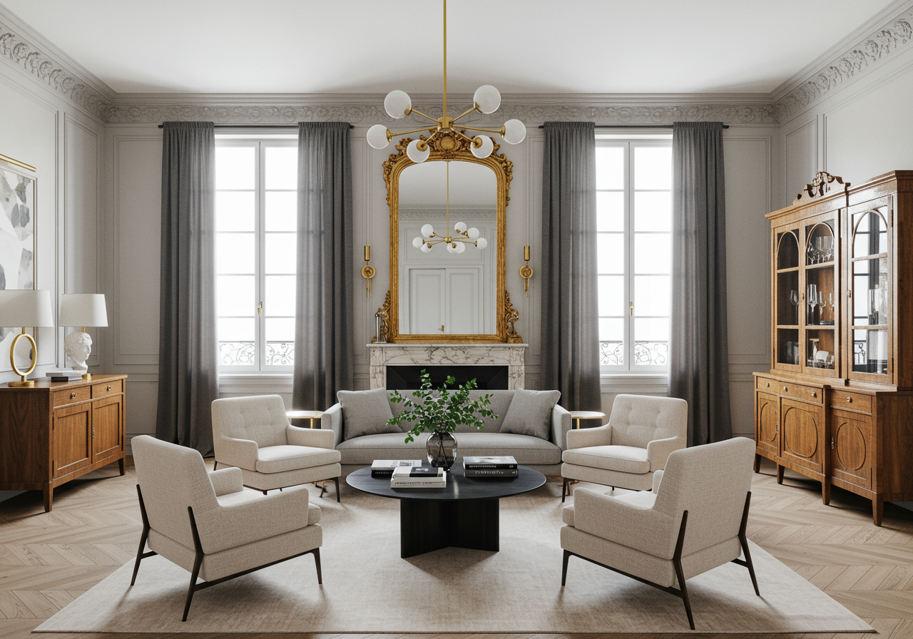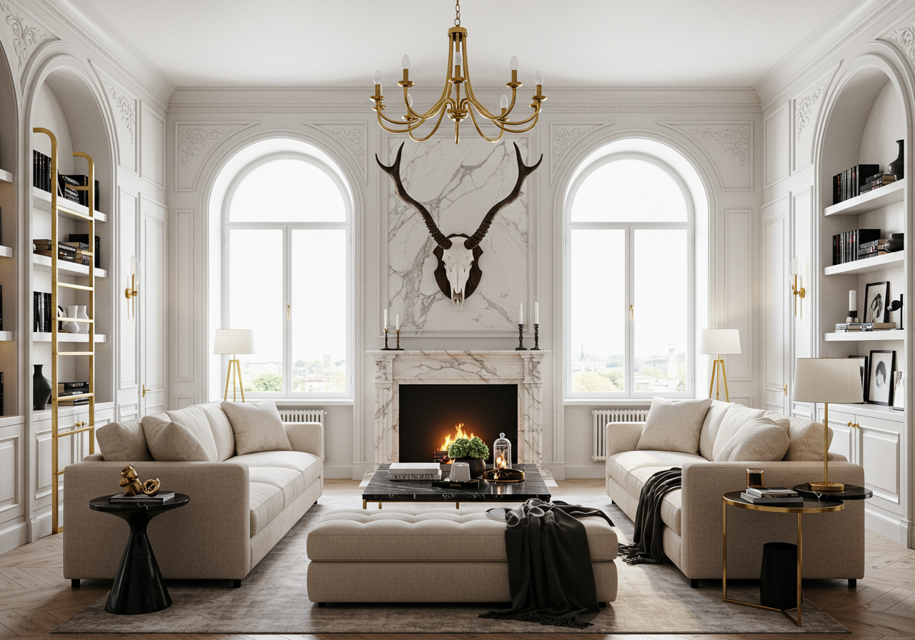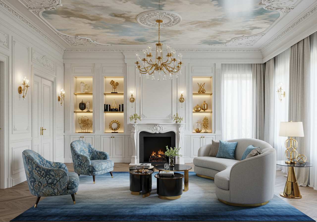 Nothing is more elegant than a French-style living room. To achieve this look, go for decorative couches, historical artwork, and detail-focused design elements throughout.