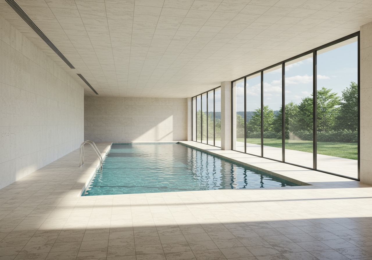 Clean contemporary lines, serene living and sleeping spaces, and inspiring views of sunsets and foothills distinguish this masterful home in a coveted quiet neighborhood just north of downtown Santa Fe. Highlights include a sleek kitchen, living and dining rooms where walls of glass turn scenery into dynamic art, three tranquil bedrooms, and a three-car garage. On the home’s lower level, a natatorium features an enviable 60-foot indoor lap pool surrounded by tall windows that open to create a rare refreshing indoor-outdoor environment.