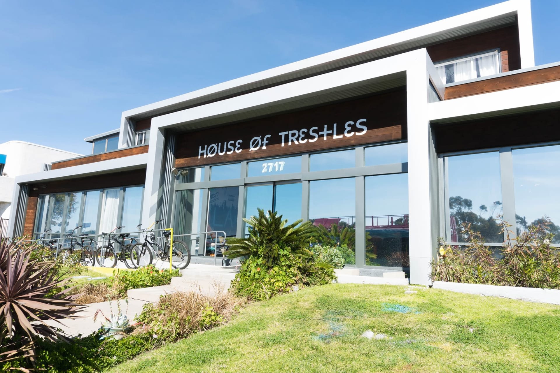All guests at House of Trestles can take advantage of a lounge, skate ramp, laundry room, work space, books and games, a communal kitchen, surf lessons, and surfboard, wetsuit and e-bike rentals.
