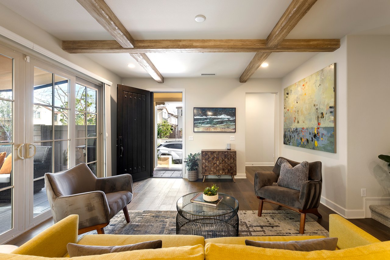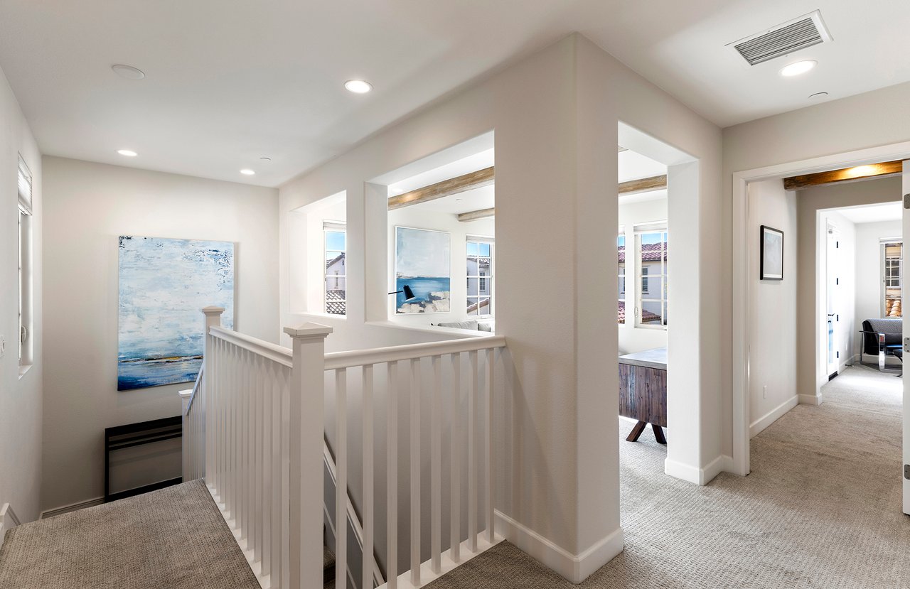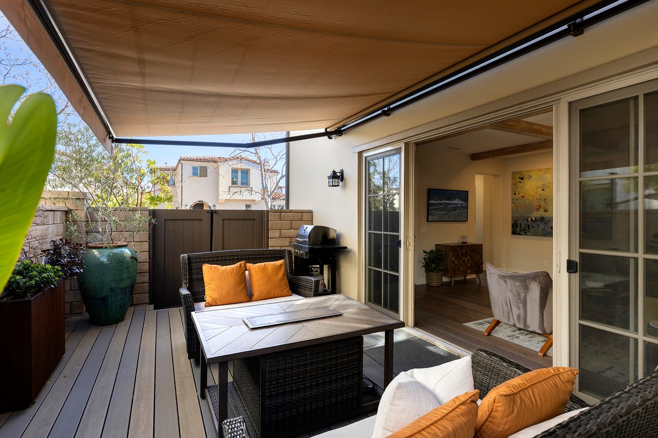Located within the Aqua neighborhood of Sea Summit in San Clemente, this beautifully designed coastal residence offers a refined balance of architecture, comfort, and lifestyle just moments from the Pacific. Spanning approximately 2,374 square feet with three bedrooms, three bathrooms, and a versatile upstairs loft, the home blends thoughtful design with relaxed coastal living. Inside, warm wood flooring, recessed lighting, and an open-concept layout create an inviting yet sophisticated atmosphere filled with natural light. The kitchen anchors the main living space with quartz countertops, a generous center island, walk-in pantry, and premium appliances including a Wolf gas cooktop with built-in griddle, separate Wolf oven, and Sub-Zero refrigerator. The space flows seamlessly into the dining and living areas where expansive sliding doors open to a private outdoor patio. Designed as a natural extension of the home, the patio features a retractable awning and offers a comfortable, private setting for outdoor dining, relaxing, or gathering with friends. A main-level bedroom and full bath provide flexibility for guests, extended family, or a quiet workspace. Upstairs, the primary suite offers a spacious retreat with a walk-in closet and a well-appointed bath featuring a dual-sink vanity, soaking tub, and separate walk-in shower. Two additional bedrooms, a full bath, and the loft complete the upper level and create flexible living space for everyday life. Additional highlights include an attached two-car garage with epoxy flooring and built-in storage, an interior laundry room, and numerous thoughtful upgrades throughout. Residents of Sea Summit enjoy access to the community's resort-style amenities including a coastal clubhouse, fitness center, spa, fire pits, and gathering spaces, along with miles of scenic walking trails that wind through preserved coastal canyon and lead toward the beach. Ideally positioned near the San Clemente Outlets, neighborhood parks, dining, and the North Beach train station, this home offers an exceptional opportunity to experience one of San Clemente's most desirable coastal communities where architecture, convenience, and coastal lifestyle come together.