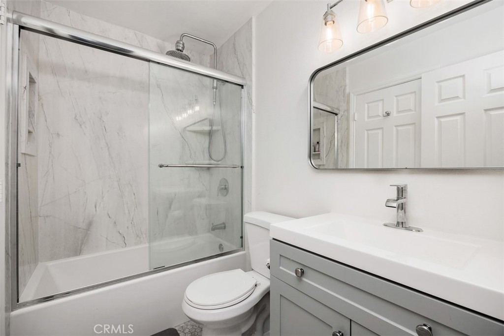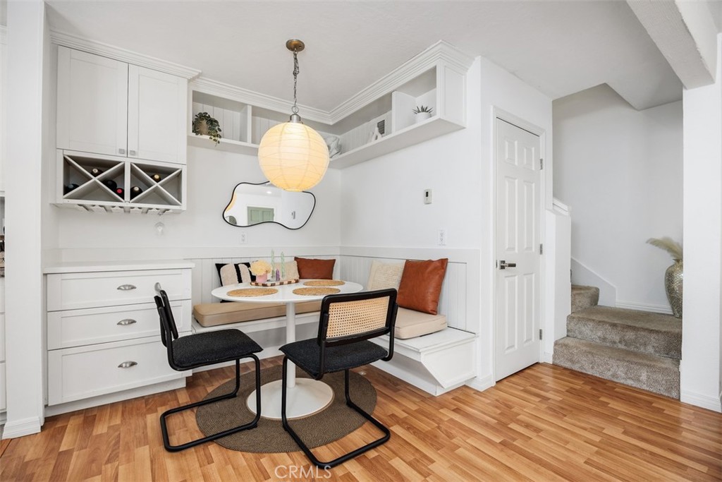 Where coastal ease meets everyday connection. Tucked in Cardiff's sought-after Park Place community, this bright two-story 3-bedroom, 1.5-bath home spanning approximately 1,258 square feet captures the calm, connected lifestyle that defines life on the east side. Sunlight filters through double-pane windows, illuminating open spaces. The layout feels both grounded and open--modern updates meet timeless function. A built-in banquet with drawers, wine storage, and upper display shelves anchors the dining nook--crafted for slow breakfasts, late-night conversations, and the kind of togetherness that makes a house feel like home. The kitchen blends clean design with white shaker cabinetry, stainless-style appliances, and a pass-through window that encourages easy indoor-outdoor living. Off the kitchen, a convenient pantry, laundry room, and half bath with wainscoting complete the main level, where wood-look laminate flows through the living areas and primary suite for a cohesive coastal feel. From the spacious living room, step through wide sliding doors to a private enclosed patio--ideal for morning coffee, rinsing off after a surf, or relaxing in the salt air. Upstairs, an updated carpeted stairway leads to two secondary bedrooms and a tranquil primary suite with generous closet space, a private vanity, and soft natural light. The shared bathroom is beautifully remodeled with a quartz surround tub and shower. Across the street, Park Place residents enjoy acres of HOA-owned parkland with resort-style amenities including a pool, volleyball court, baseball field, scenic hiking trails, RV and boat parking, and a friendly off-leash dog policy with special tags required. Explore the trails, connect with neighbors, and embrace the outdoor lifestyle that makes Cardiff so special. Here, life moves at a slower, sunnier rhythm. From this location, it's easy to reach Cardiff Reef, Swami's, or downtown in minutes. Meet neighbors at the private community park, where weekends bring volleyball, dog walks, and sunset swims. With trails at San Elijo Lagoon and top-rated schools nearby, this is a place designed for balance--coastal by nature, community by heart.
