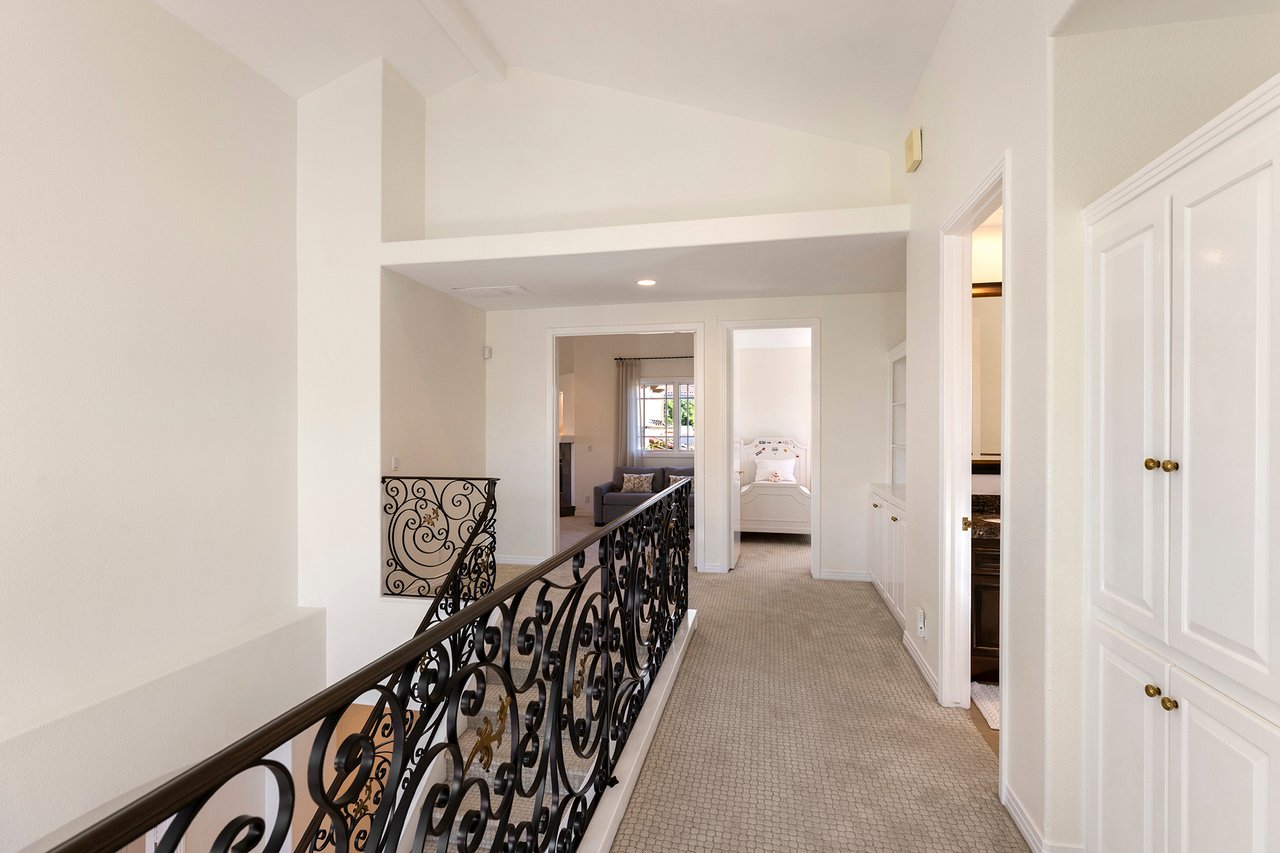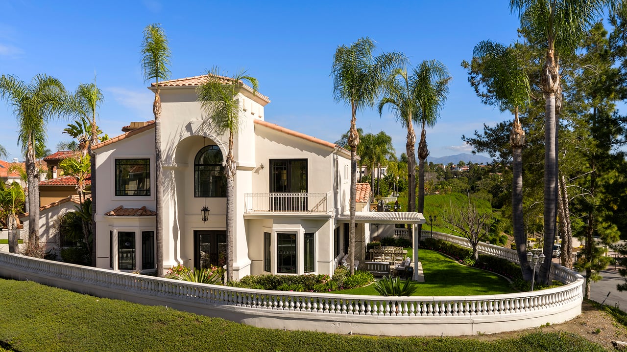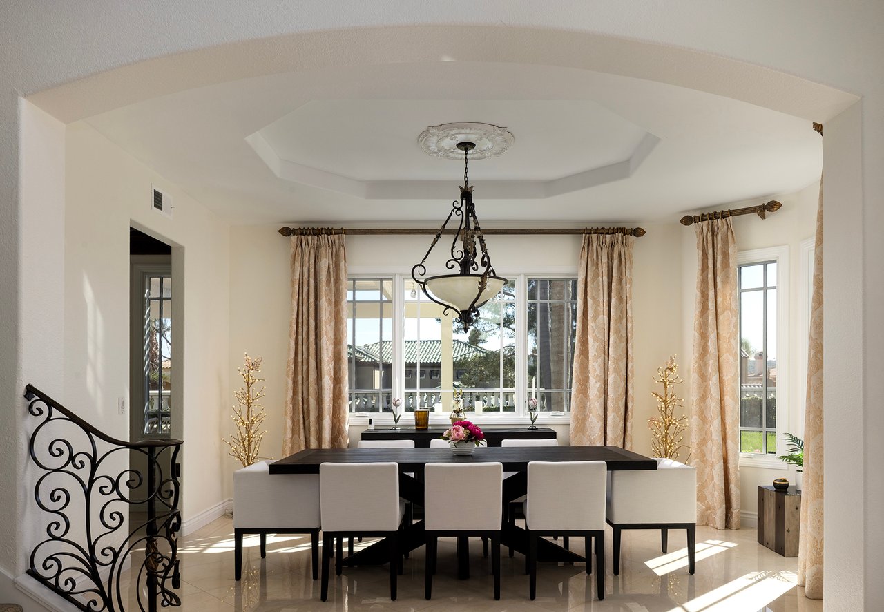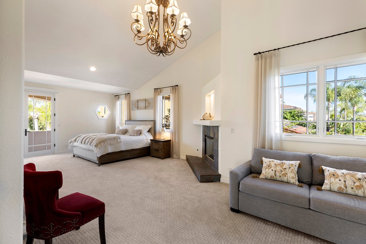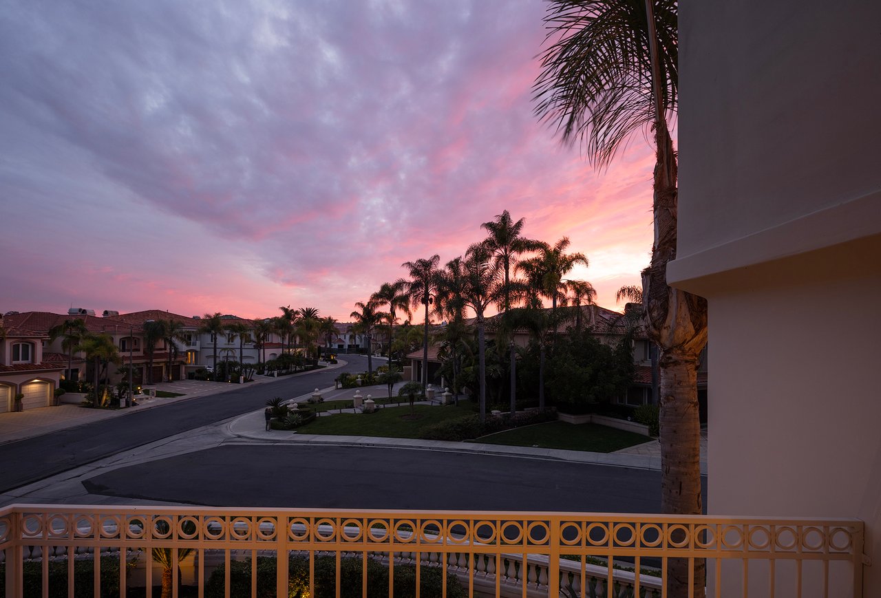 Behind the gates of The Estates at Rancho Niguel, 14 San Rafael is a commanding corner-lot residence defined by architectural scale, refined detailing, and elevated coastal living. Encompassing approximately 3,403 sqft, this four-bedroom, three-bathroom estate blends grand proportions with livability in one of Laguna Niguel's most established gated communities. A dramatic double-door entry opens to soaring two-story ceilings, formal living and dining rooms, and a sweeping wrought-iron staircase that sets the tone for the home's craftsmanship. Marble flooring, crown molding, custom millwork, and a built-in wet bar create an elegant and inviting atmosphere. The family room, anchored by a fireplace and wired for sound, flows seamlessly into the kitchen, forming the heart of the home. The kitchen reflects European influence and enduring quality, appointed with custom cabinetry, marble countertops, a farmhouse sink, center island, walk-in pantry, and professional-grade appliances including a Wolf range and Sub-Zero refrigerator. A breakfast nook framed by French doors opens to the backyard, extending everyday living outdoors. A main-level bedroom and full bath provide flexibility for guests or multigenerational living. Upstairs, the primary suite offers impressive volume, its own fireplace, and access to a private balcony capturing hillside views. The primary bath evokes a spa experience with marble dual vanity, a custom-tiled walk-in shower, a jetted tub, and dual walk-in closets. The backyard is composed for privacy and presence, wrapped in balustrade walls and enhanced by landscape lighting. Covered and open seating areas allow for effortless entertaining beneath mature palms and open skies. The residence reflects meticulous care and investment, including windows, A/C system, front door and patio doors, Cove dishwasher, and landscaping drip system, along with a prior full re-pipe -- offering aesthetic refinement and meaningful system upgrades. A three-car garage with epoxy flooring and built-in cabinetry completes the property with scale and polish. Residents enjoy exclusive access to The Club at Rancho Niguel, offering lighted tennis courts, heated lap pools, spa, gym, volleyball and basketball courts, clubhouse facilities, and community programming. Beaches, resorts, championship golf, premier dining, and highly regarded schools are nearby. A refined estate within a gated enclave designed for those who value space, privacy, and enduring quality.