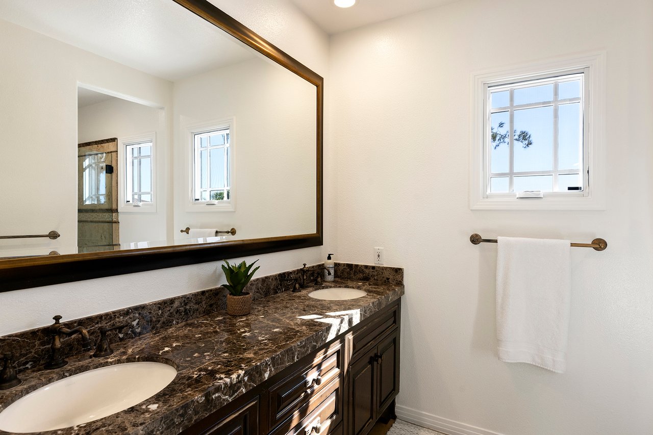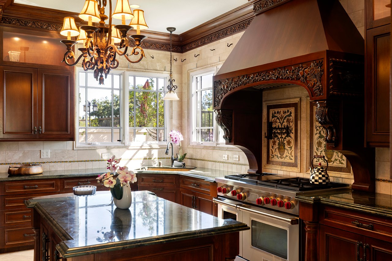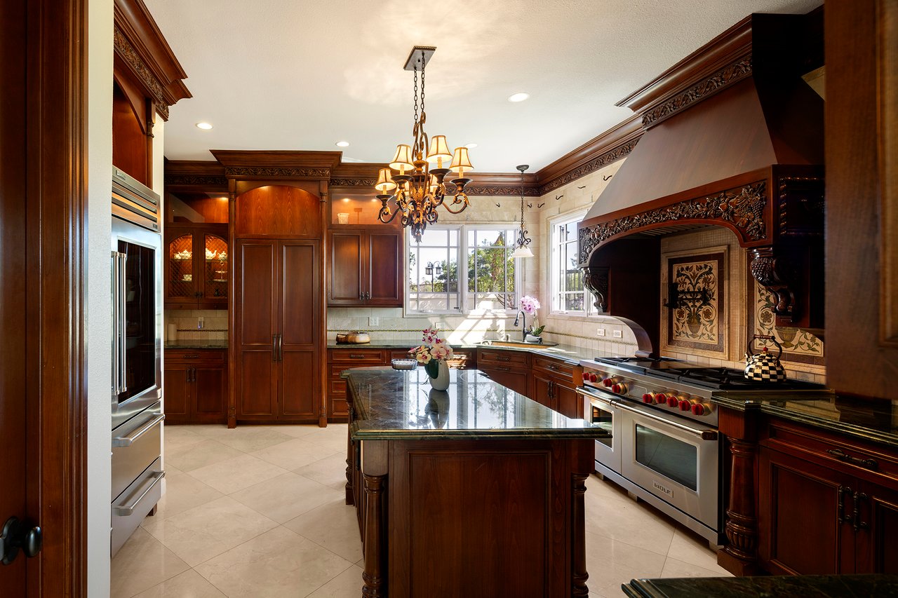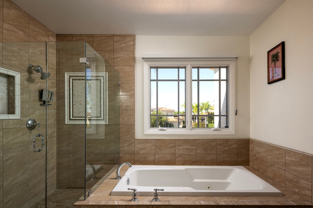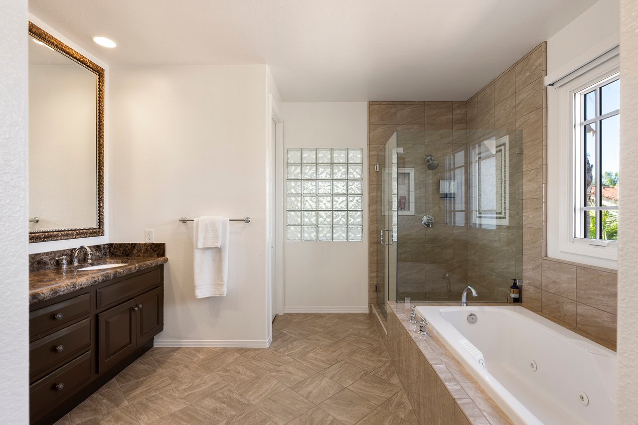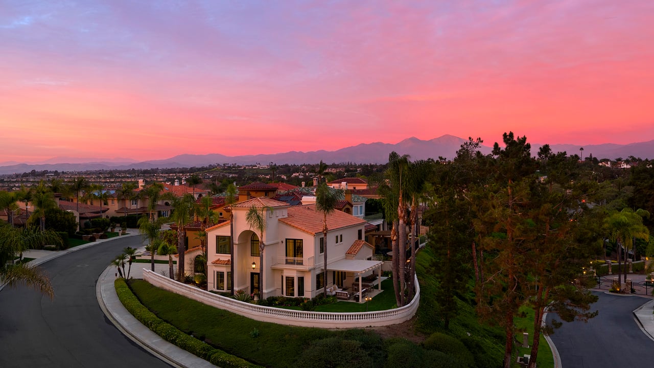 Behind the gates of The Estates at Rancho Niguel, 14 San Rafael is a commanding corner-lot residence defined by architectural scale, refined detailing, and elevated coastal living. Encompassing approximately 3,403 sqft, this four-bedroom, three-bathroom estate blends grand proportions with livability in one of Laguna Niguel's most established gated communities. A dramatic double-door entry opens to soaring two-story ceilings, formal living and dining rooms, and a sweeping wrought-iron staircase that sets the tone for the home's craftsmanship. Marble flooring, crown molding, custom millwork, and a built-in wet bar create an elegant and inviting atmosphere. The family room, anchored by a fireplace and wired for sound, flows seamlessly into the kitchen, forming the heart of the home. The kitchen reflects European influence and enduring quality, appointed with custom cabinetry, marble countertops, a farmhouse sink, center island, walk-in pantry, and professional-grade appliances including a Wolf range and Sub-Zero refrigerator. A breakfast nook framed by French doors opens to the backyard, extending everyday living outdoors. A main-level bedroom and full bath provide flexibility for guests or multigenerational living. Upstairs, the primary suite offers impressive volume, its own fireplace, and access to a private balcony capturing hillside views. The primary bath evokes a spa experience with marble dual vanity, a custom-tiled walk-in shower, a jetted tub, and dual walk-in closets. The backyard is composed for privacy and presence, wrapped in balustrade walls and enhanced by landscape lighting. Covered and open seating areas allow for effortless entertaining beneath mature palms and open skies. The residence reflects meticulous care and investment, including windows, A/C system, front door and patio doors, Cove dishwasher, and landscaping drip system, along with a prior full re-pipe -- offering aesthetic refinement and meaningful system upgrades. A three-car garage with epoxy flooring and built-in cabinetry completes the property with scale and polish. Residents enjoy exclusive access to The Club at Rancho Niguel, offering lighted tennis courts, heated lap pools, spa, gym, volleyball and basketball courts, clubhouse facilities, and community programming. Beaches, resorts, championship golf, premier dining, and highly regarded schools are nearby. A refined estate within a gated enclave designed for those who value space, privacy, and enduring quality.
