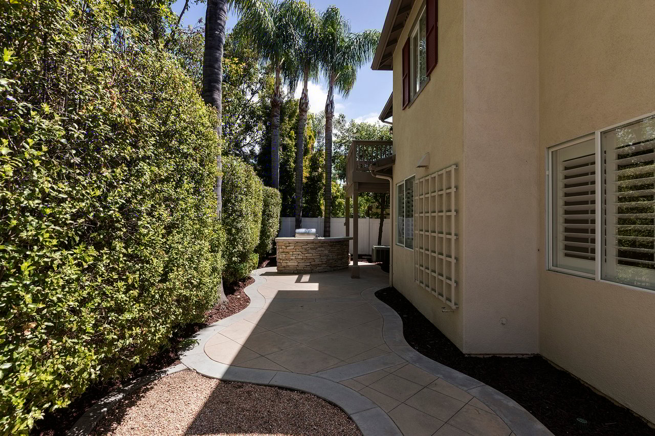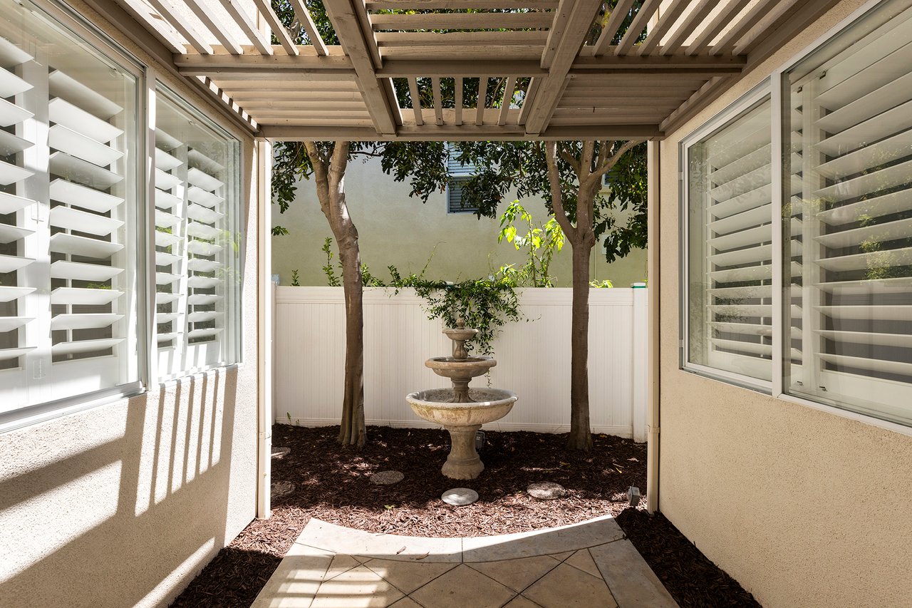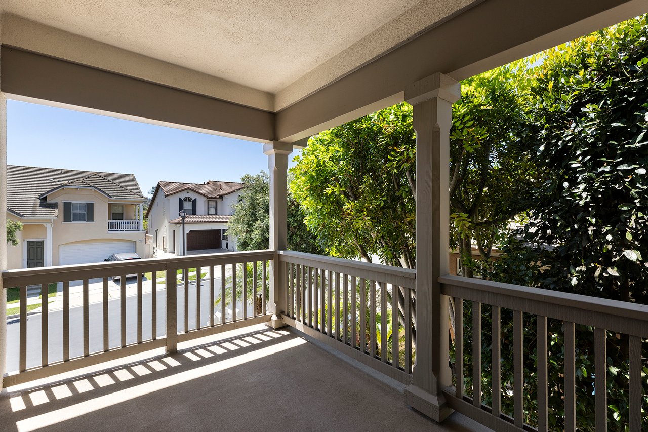 Set within the Solana enclave of Talega, 17 Camino Azulejo unfolds as a home designed for both connection and retreat, where light, space, and thoughtful transitions shape the rhythm of daily living. The living room welcomes you with soaring double-height ceilings and an abundance of natural light, creating an open and airy first impression. Wood-look tile flooring spans the main level, offering both durability and warmth, while the floor plan draws you inward to a private interior courtyard anchored by a statement fountain, creating a quiet architectural moment at the heart of the home. The layout is both functional and intentional, with a main-level bedroom and full bath offering flexibility for guests, extended stays, or a private office. The family room centers around a stacked-stone fireplace and flows effortlessly into the open-concept kitchen, where a granite island and stainless steel appliances create a natural gathering place. Upstairs, a generous loft offers versatility as a media room, workspace, or potential fifth bedroom. The primary suite is privately positioned and features a spacious bath with dual sink vanity, soaking tub, walk-in shower, and walk-in closet. A private balcony looks out over lush landscaping and mature trees, offering a peaceful setting for morning coffee or evening wind-downs. Two additional bedrooms are thoughtfully situated and share a balcony that provides an elevated vantage point overlooking the neighborhood. Surrounded by greenery and backing to a scenic pathway that leads to Talega Park, the home enjoys a rare sense of privacy with no neighbors directly behind. The backyard, courtyard, and multiple balconies create a series of outdoor spaces designed for both intimate moments and larger gatherings, all framed by natural beauty. Leased solar adds efficiency, while the location places you within one of San Clemente's most sought-after master-planned communities. Talega offers miles of scenic trails, neighborhood parks, award-winning schools, and a strong sense of community, all just moments from the coastline. A home where indoor and outdoor living are seamlessly connected, offering comfort, privacy, and a refined sense of place within one of San Clemente's most established communities.