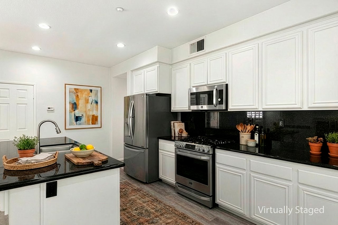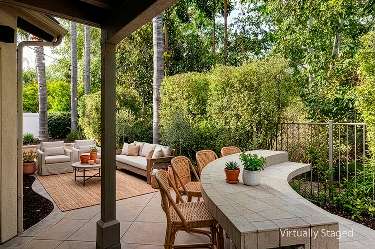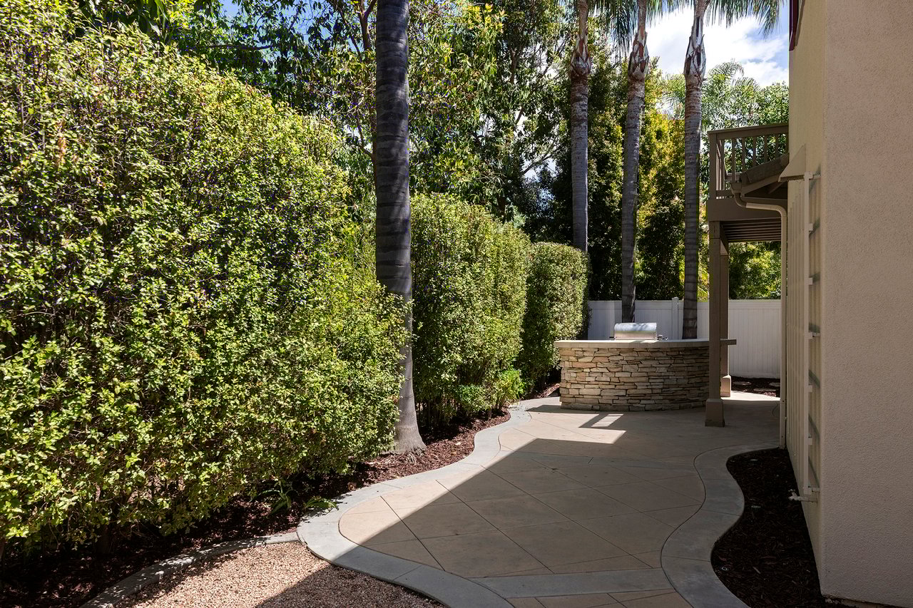 Set within the Solana enclave of Talega, 17 Camino Azulejo unfolds as a home designed for both connection and retreat, where light, space, and thoughtful transitions shape the rhythm of daily living. The living room welcomes you with soaring double-height ceilings and an abundance of natural light, creating an open and airy first impression. Wood-look tile flooring spans the main level, offering both durability and warmth, while the floor plan draws you inward to a private interior courtyard anchored by a statement fountain, creating a quiet architectural moment at the heart of the home. The layout is both functional and intentional, with a main-level bedroom and full bath offering flexibility for guests, extended stays, or a private office. The family room centers around a stacked-stone fireplace and flows effortlessly into the open-concept kitchen, where a granite island and stainless steel appliances create a natural gathering place. Upstairs, a generous loft offers versatility as a media room, workspace, or potential fifth bedroom. The primary suite is privately positioned and features a spacious bath with dual sink vanity, soaking tub, walk-in shower, and walk-in closet. A private balcony looks out over lush landscaping and mature trees, offering a peaceful setting for morning coffee or evening wind-downs. Two additional bedrooms are thoughtfully situated and share a balcony that provides an elevated vantage point overlooking the neighborhood. Surrounded by greenery and backing to a scenic pathway that leads to Talega Park, the home enjoys a rare sense of privacy with no neighbors directly behind. The backyard, courtyard, and multiple balconies create a series of outdoor spaces designed for both intimate moments and larger gatherings, all framed by natural beauty. Leased solar adds efficiency, while the location places you within one of San Clemente's most sought-after master-planned communities. Talega offers miles of scenic trails, neighborhood parks, award-winning schools, and a strong sense of community, all just moments from the coastline. A home where indoor and outdoor living are seamlessly connected, offering comfort, privacy, and a refined sense of place within one of San Clemente's most established communities.