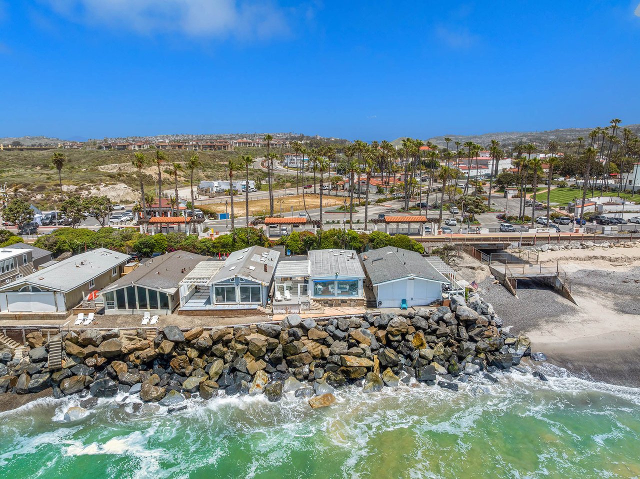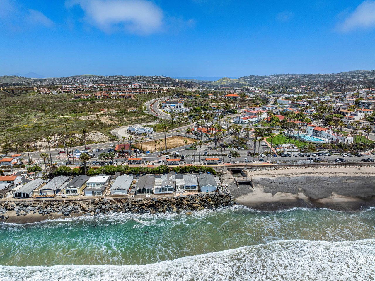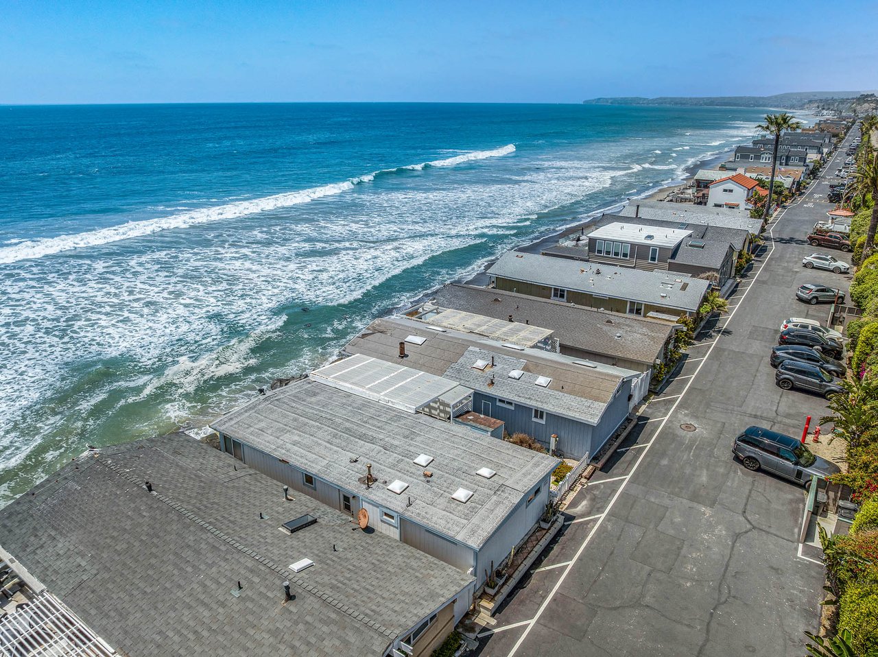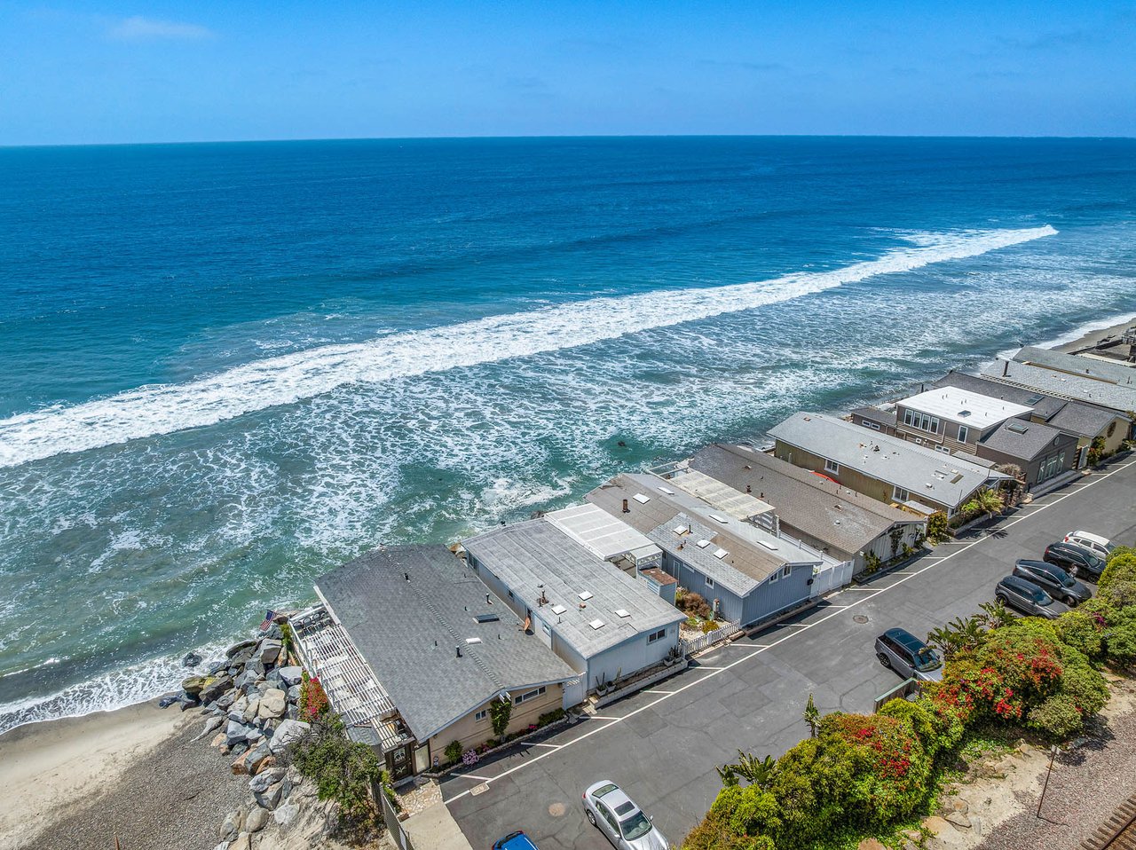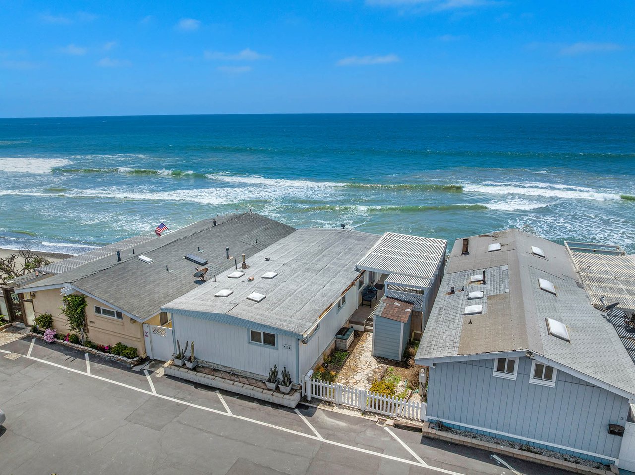 Unobstructed on-the-beach views extending from San Clemente's famous pier to the towering Dana Point Headlands set the scene for outstanding oceanfront living at this classic home in the private community of Capistrano Shores. A sunny patio introduces the single-level residence, which welcomes abundant natural light and breathtaking whitewater, Catalina Island and sunset views through massive floor-to-ceiling windows in the living room. Approximately 1,000 square feet, the open-concept design makes it easy to entertain by erasing boundaries between the kitchen, living and dining rooms. A peninsula bar for serving up appetizers and enjoying morning coffee opens to the living room from the kitchen, where white Shaker cabinetry, low-maintenance contemporary countertops, a Bosch dishwasher, and a range with smooth cooktop are on display. Two bedrooms and two baths lend versatility to the home, which is also appointed with high ceilings and woodgrain laminate flooring. Nearly 2,265 square feet, the homesite reveals a beach-front patio with retractable awning and a coveted location within Capistrano Shores. One of San Clemente's most sought-after addresses, the seaside enclave is moments from miles of beach trails, shops and restaurants along Avenida del Mar, Dana Point's beautifully revitalized harbor, famous surf spots, scenic neighborhood parks and the Ole Hanson Swim Club.