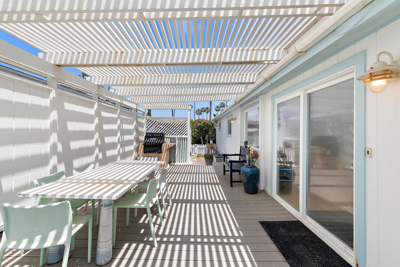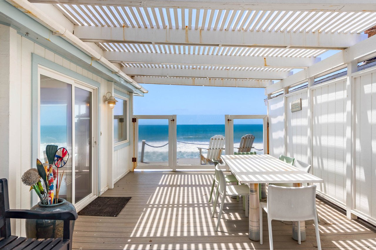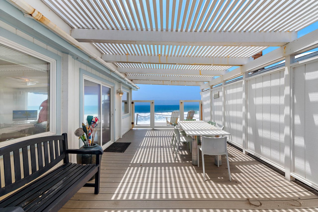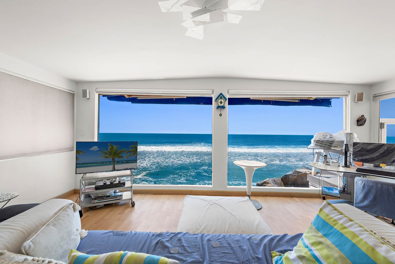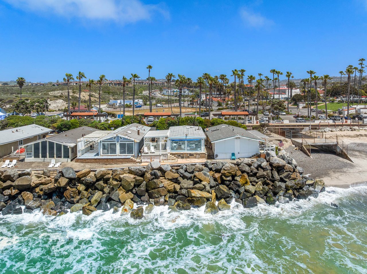 Unobstructed on-the-beach views extending from San Clemente's famous pier to the towering Dana Point Headlands set the scene for outstanding oceanfront living at this classic home in the private community of Capistrano Shores. A sunny patio introduces the single-level residence, which welcomes abundant natural light and breathtaking whitewater, Catalina Island and sunset views through massive floor-to-ceiling windows in the living room. Approximately 1,000 square feet, the open-concept design makes it easy to entertain by erasing boundaries between the kitchen, living and dining rooms. A peninsula bar for serving up appetizers and enjoying morning coffee opens to the living room from the kitchen, where white Shaker cabinetry, low-maintenance contemporary countertops, a Bosch dishwasher, and a range with smooth cooktop are on display. Two bedrooms and two baths lend versatility to the home, which is also appointed with high ceilings and woodgrain laminate flooring. Nearly 2,265 square feet, the homesite reveals a beach-front patio with retractable awning and a coveted location within Capistrano Shores. One of San Clemente's most sought-after addresses, the seaside enclave is moments from miles of beach trails, shops and restaurants along Avenida del Mar, Dana Point's beautifully revitalized harbor, famous surf spots, scenic neighborhood parks and the Ole Hanson Swim Club.