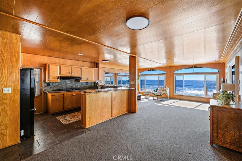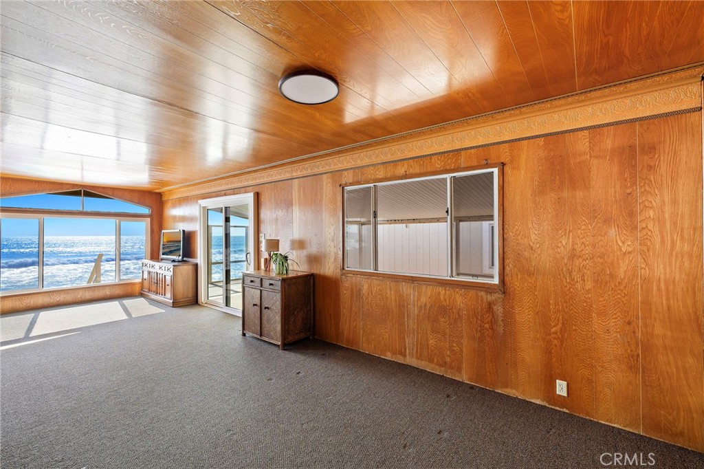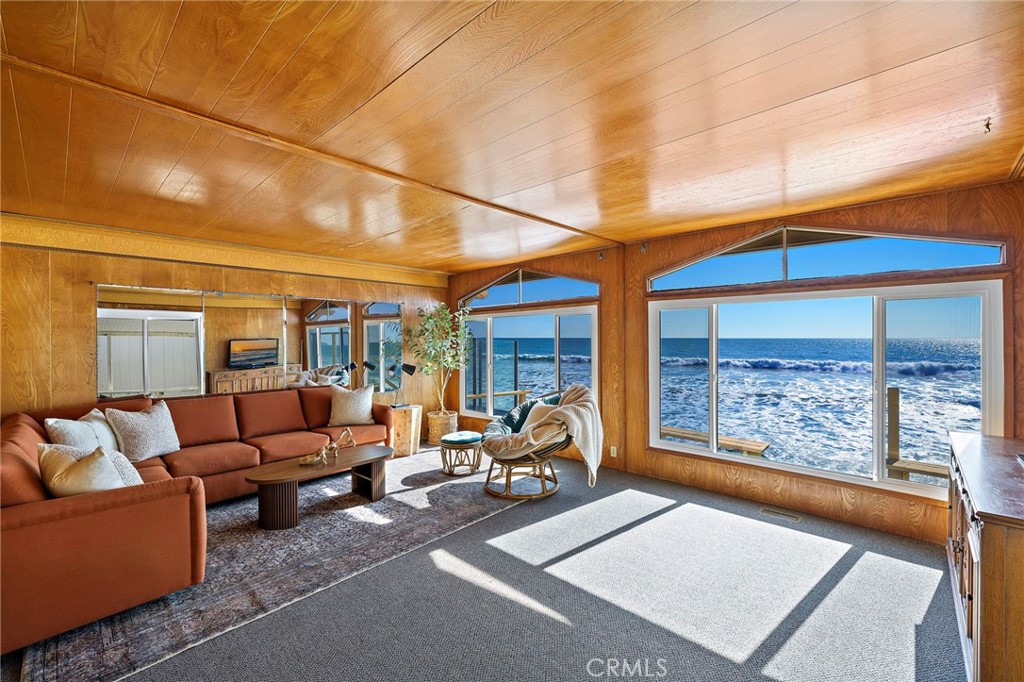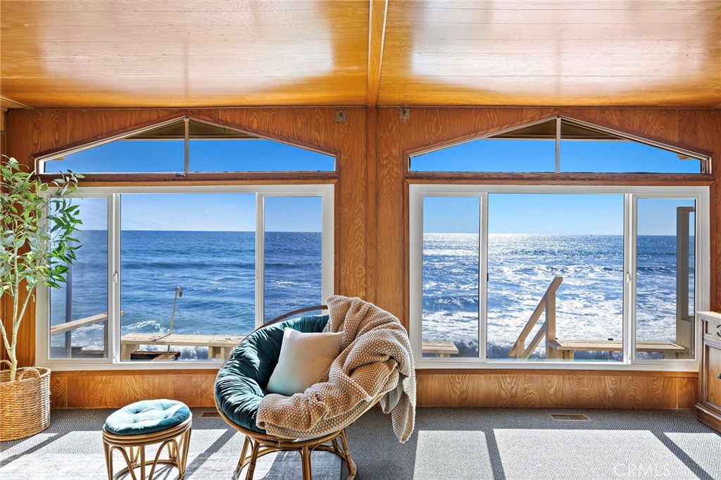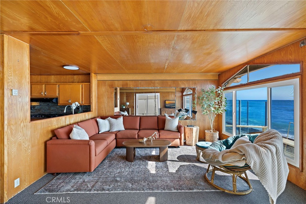 Perched directly on the sand within San Clemente's private Capistrano Shores enclave, this single-level cottage is a rare midcentury gem awaiting its next chapter. Preserved in remarkable detail, the approximately 1,200-square-foot residence on a 3,075-square-foot lot captures endless Pacific horizons, with unobstructed views that sweep from San Clemente's iconic pier to the Dana Point Headlands and Catalina Island beyond. Inside, the home embraces its vintage soul--wood-paneled walls and ceilings, intact formica countertops, and original lighting evoke the character and charm of true midcentury design. Expansive windows frame the coastline and flood the living spaces with natural light, while the open flow between living, dining, and kitchen areas makes every moment feel connected to the sea. Two bedrooms and two baths complete the layout, offering comfort today while inspiring possibilities for thoughtful updates or a complete reimagination. Whether restored with reverence for its period details or transformed into a contemporary retreat, the potential here is as boundless as the views. Outside, a generous oceanfront patio leads directly to the sand--an unrivaled vantage point for sunrise coffees, surf checks, and sunsets that paint the horizon in vivid color. Capistrano Shores is a guard-gated community of only 90 homes, celebrated for its rare on-the-sand living and close proximity to the very best of the Southern California coast. From here, surf breaks, beach trails, Dana Point's harbor, Avenida Del Mar's dining and shops, and neighborhood parks are just minutes away. 1880 N El Camino Real #38 is more than a home--it's a preserved piece of California's midcentury story, set in one of the coast's most coveted oceanfront settings.