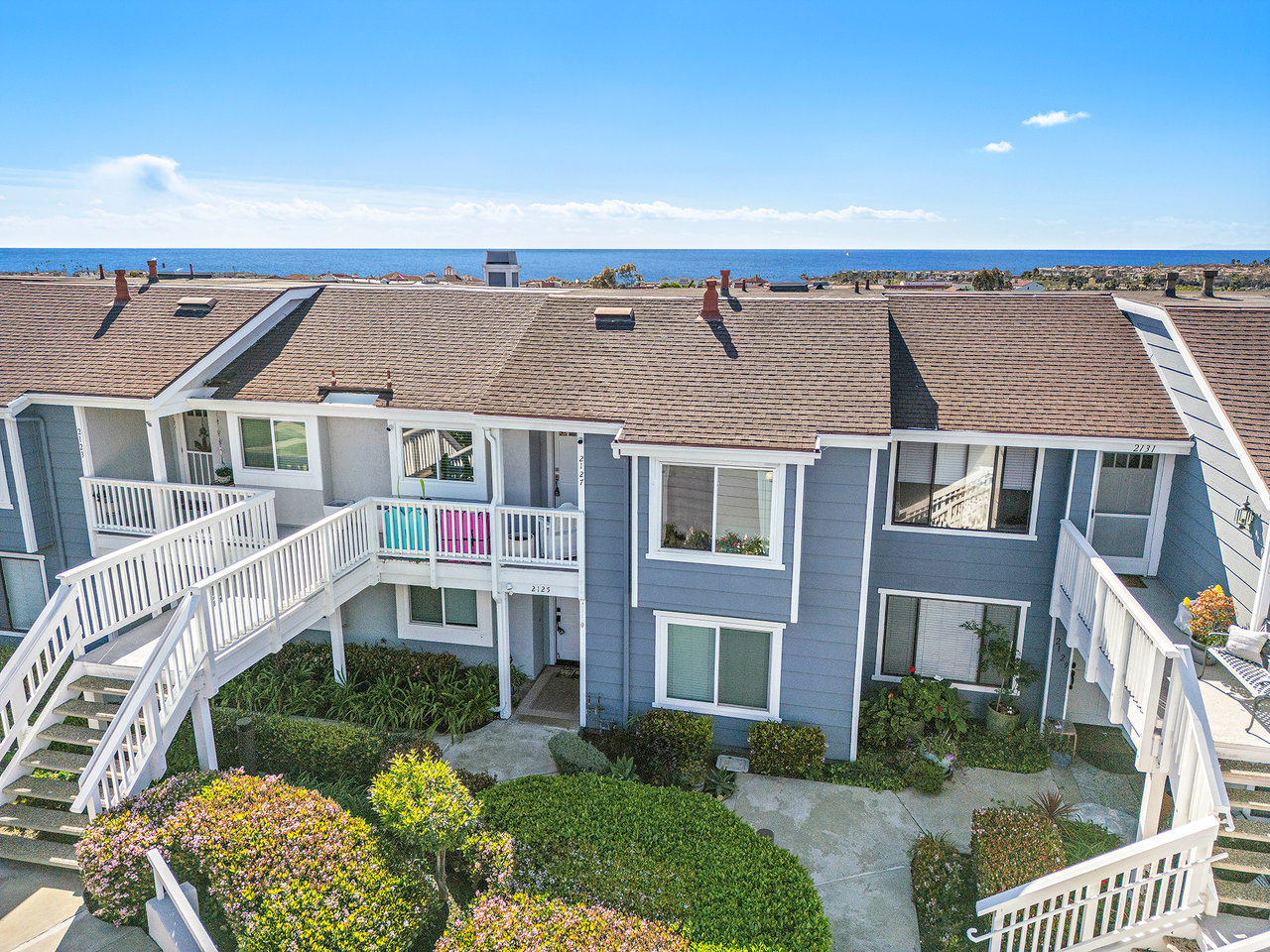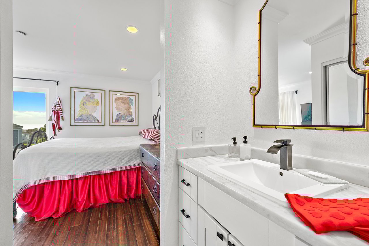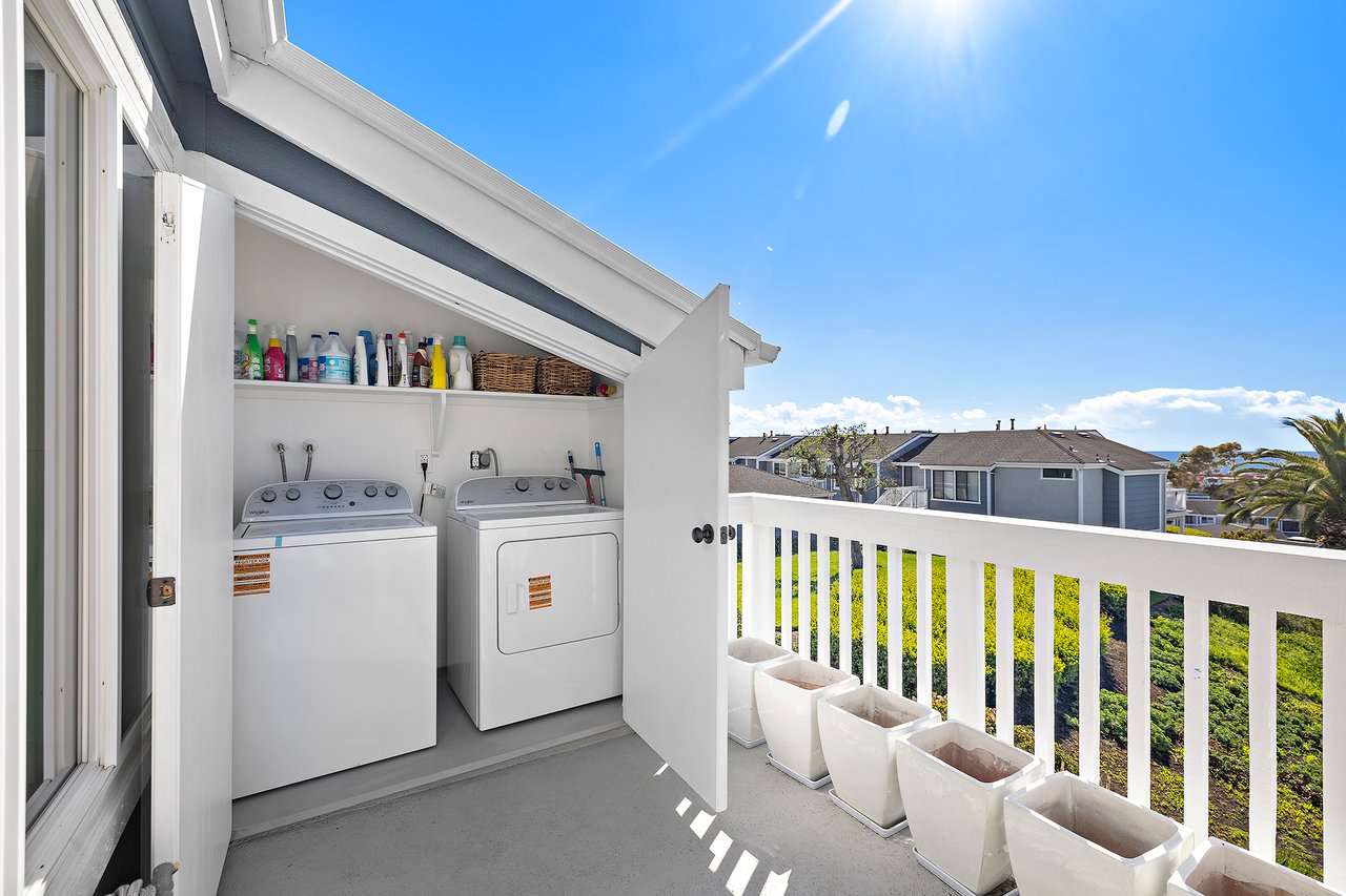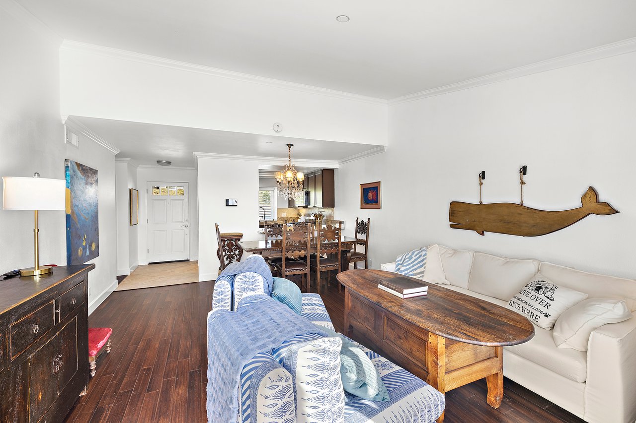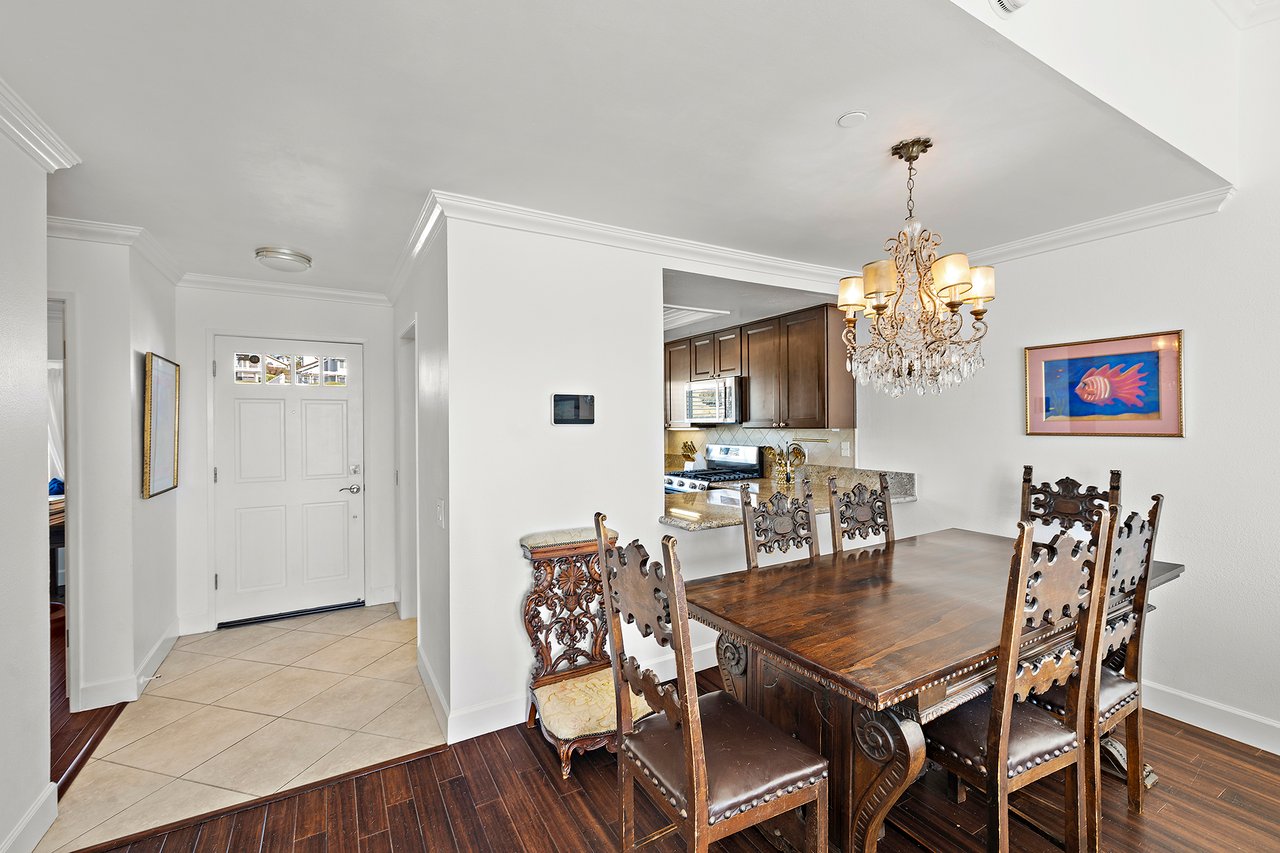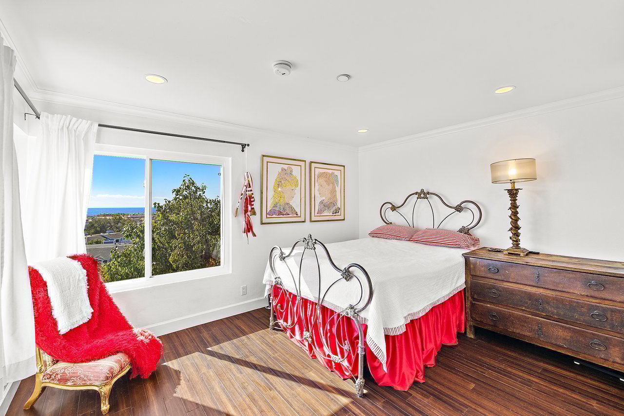 Set high in Faire Harbour within the Marblehead community, 2127 Avenida Espada is a top-floor, single-level residence with rare sit-down ocean views stretching to Catalina Island and settling into sweeping sunsets. From this elevated position, the Pacific becomes part of your everyday backdrop, shifting in color and mood from morning light to golden hour. Inside, vaulted ceilings and rich hardwood floors create a warm, airy atmosphere that feels refined yet relaxed. The living, dining, and kitchen spaces flow naturally together, oriented toward the patio and the coastline beyond. Ocean views are enjoyed throughout, from the main living areas to the kitchen and into the primary bedroom, creating a true horizon experience rather than a distant glimpse. The kitchen features clean-lined cabinetry, stone countertops, a coordinating backsplash, stainless steel appliances, recessed lighting, under-cabinet illumination, and a breakfast bar that keeps the space open and inviting. Gas cooking and air conditioning add everyday comfort, while dual-pane Anlin windows, crown moulding, and thoughtful detailing bring a finished, cohesive feel. Both bathrooms are well-appointed with a consistent, elevated aesthetic that complements the home's contemporary coastal style. The tiled patio extends the living space outdoors, offering an easy place to begin the day with ocean air or settle in as the sun drops into the Pacific. A private two-car garage, a rare offering within Faire Harbour, adds a level of convenience and storage not often found in this community. Faire Harbour's location in Marblehead offers a peaceful, elevated setting close to beaches, coastal trails, Avenida Del Mar, local dining, and the Outlets at San Clemente, with convenient access to the 5 freeway and Pacific Coast Highway. This is a home that blends view, comfort, and location into one cohesive experience, elevated above the coastline and grounded in the rhythm of a vibrant beach town.