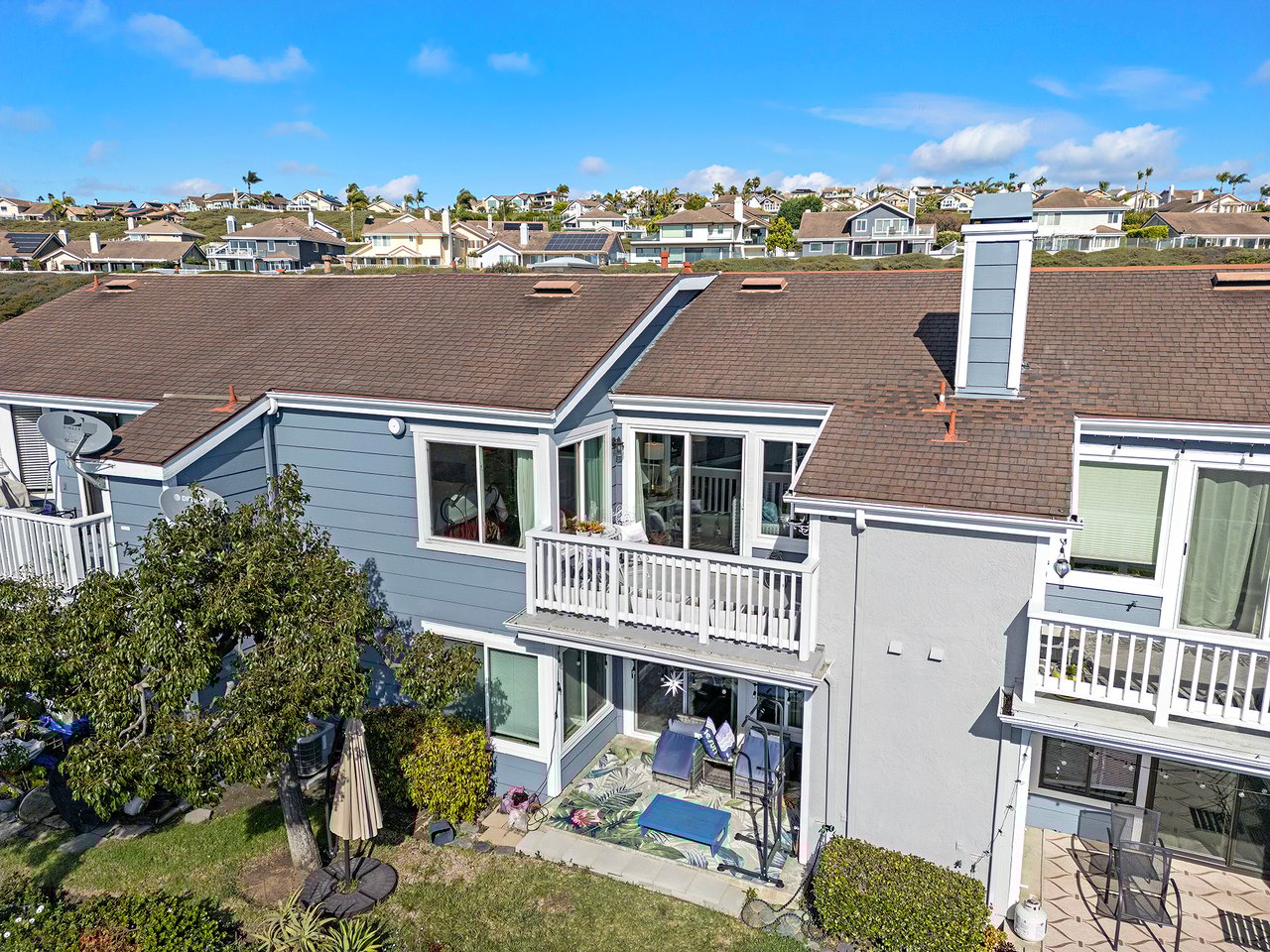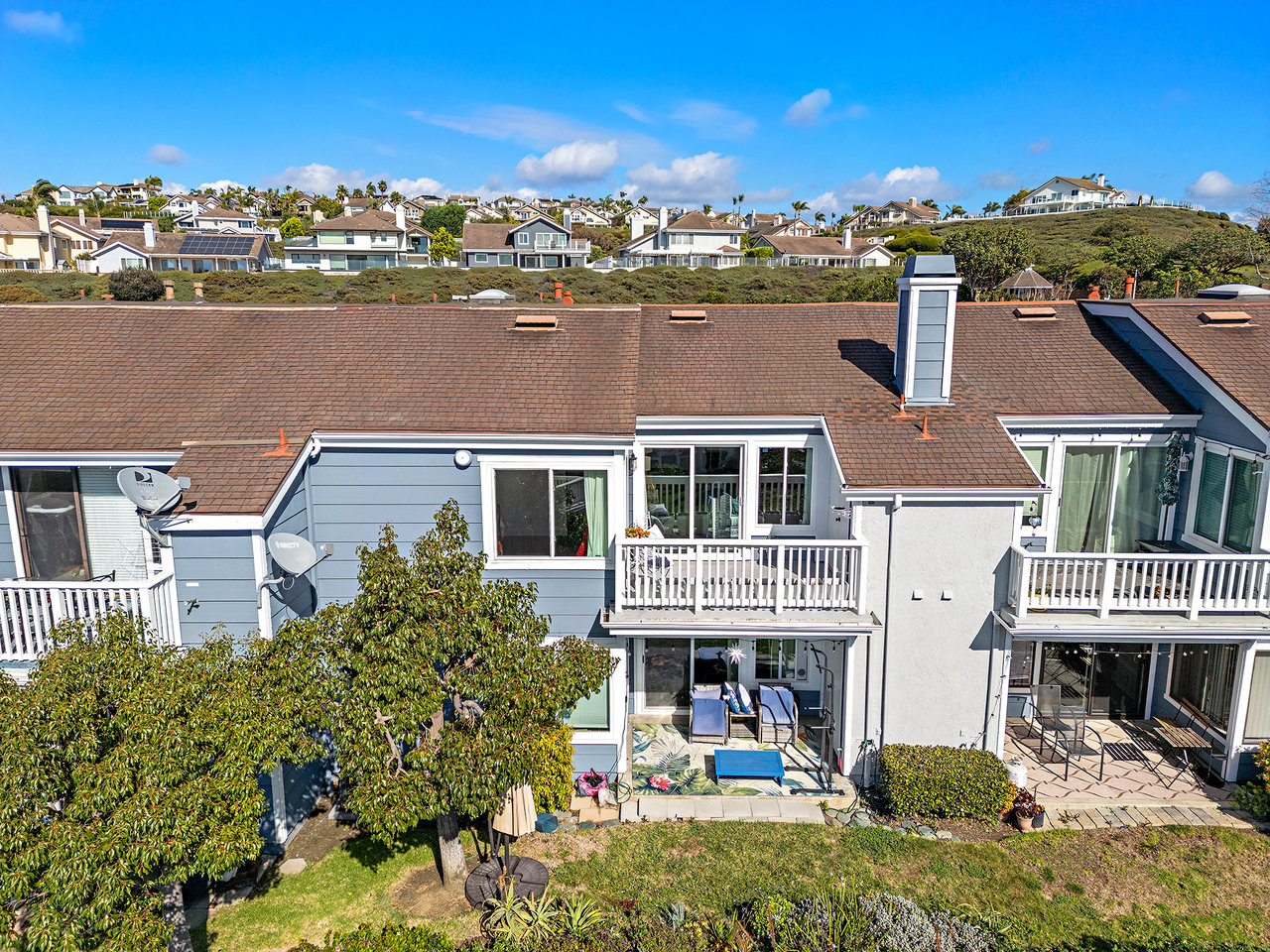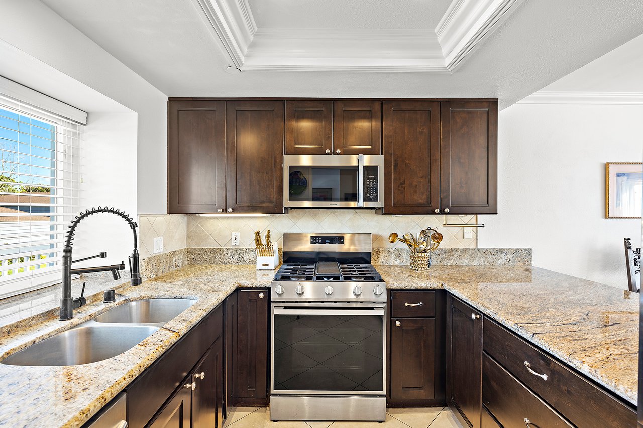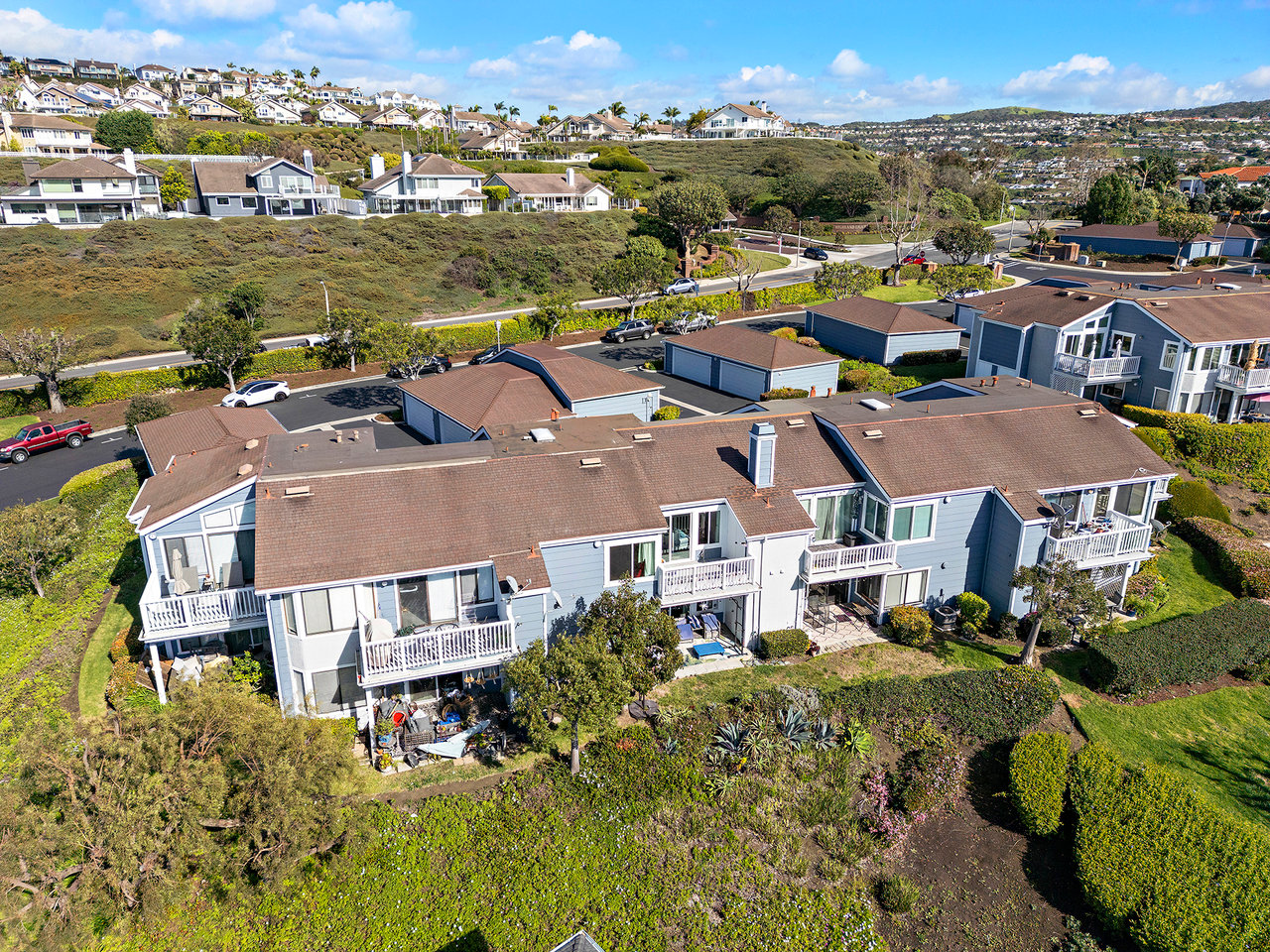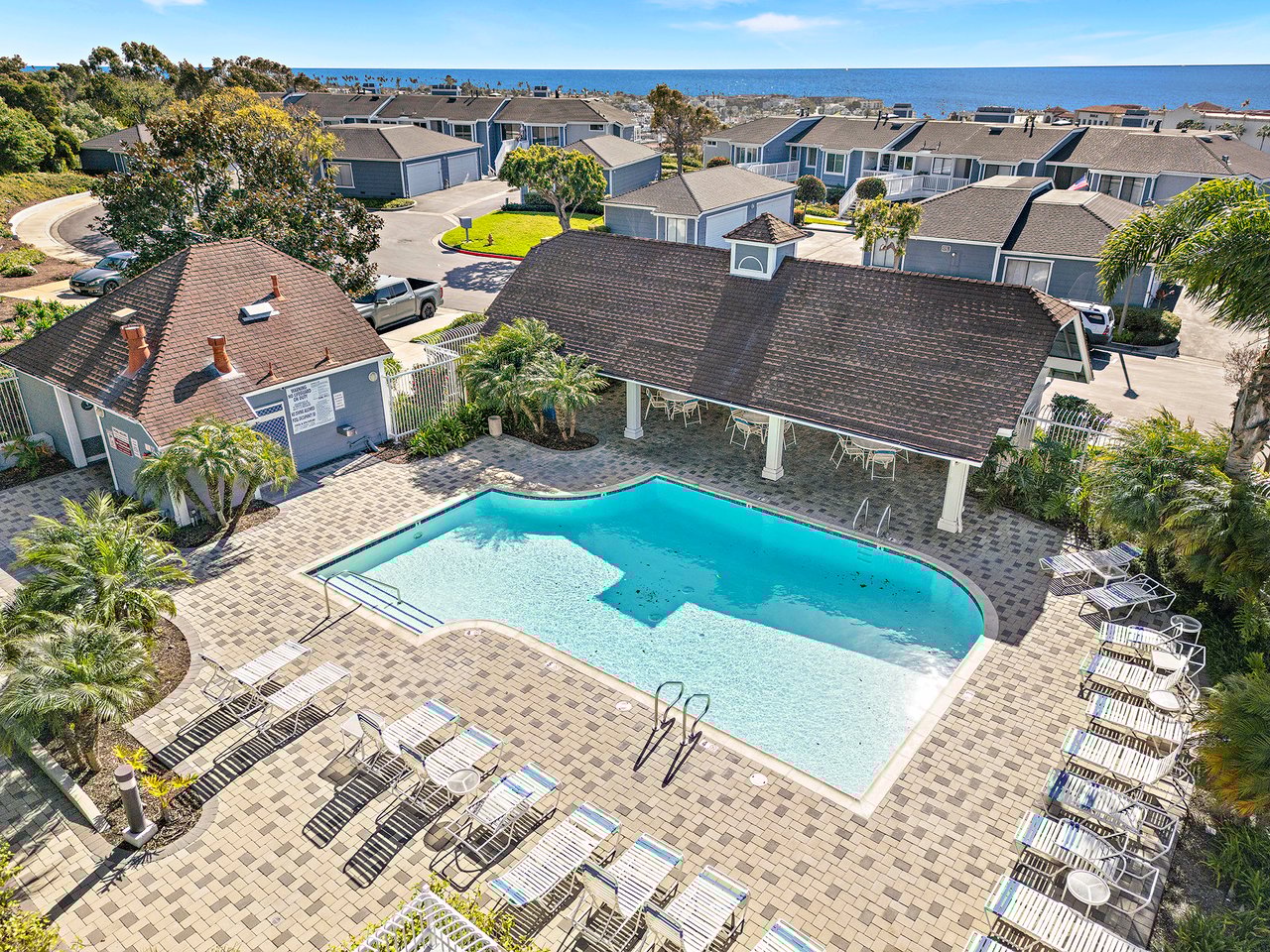 Set high in Faire Harbour within the Marblehead community, 2127 Avenida Espada is a top-floor, single-level residence with rare sit-down ocean views stretching to Catalina Island and settling into sweeping sunsets. From this elevated position, the Pacific becomes part of your everyday backdrop, shifting in color and mood from morning light to golden hour. Inside, vaulted ceilings and rich hardwood floors create a warm, airy atmosphere that feels refined yet relaxed. The living, dining, and kitchen spaces flow naturally together, oriented toward the patio and the coastline beyond. Ocean views are enjoyed throughout, from the main living areas to the kitchen and into the primary bedroom, creating a true horizon experience rather than a distant glimpse. The kitchen features clean-lined cabinetry, stone countertops, a coordinating backsplash, stainless steel appliances, recessed lighting, under-cabinet illumination, and a breakfast bar that keeps the space open and inviting. Gas cooking and air conditioning add everyday comfort, while dual-pane Anlin windows, crown moulding, and thoughtful detailing bring a finished, cohesive feel. Both bathrooms are well-appointed with a consistent, elevated aesthetic that complements the home's contemporary coastal style. The tiled patio extends the living space outdoors, offering an easy place to begin the day with ocean air or settle in as the sun drops into the Pacific. A private two-car garage, a rare offering within Faire Harbour, adds a level of convenience and storage not often found in this community. Faire Harbour's location in Marblehead offers a peaceful, elevated setting close to beaches, coastal trails, Avenida Del Mar, local dining, and the Outlets at San Clemente, with convenient access to the 5 freeway and Pacific Coast Highway. This is a home that blends view, comfort, and location into one cohesive experience, elevated above the coastline and grounded in the rhythm of a vibrant beach town.