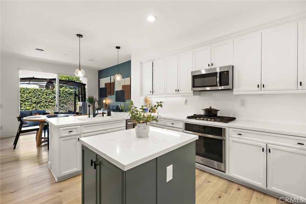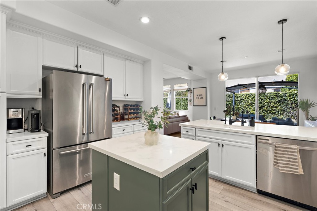 Welcome to this delightful coastal retreat, nestled in the scenic hills of the Verano tract in Talega, San Clemente. Thoughtfully designed for both comfort and style, this home features luxury vinyl plank flooring throughout both levels, adding warmth and durability to the beautifully designed interior. The updated kitchen boasts sleek white shaker-style cabinetry, a KitchenAid built-in range, convection oven, and dishwasher, plus a charming kitchen island and breakfast bar perfect for casual dining. A reverse osmosis water filtration system ensures pure, clean drinking water right from the tap. Modern flush-mount LED recessed lighting enhances the home's bright and inviting ambiance. The main floor includes a dedicated office space that can also serve as an optional bedroom, making it ideal for remote work or a cozy study. Upstairs, the primary suite offers a luxurious ensuite bathroom with a jetted tub, double-sink vanity, walk-in shower, and walk-in closet. Additionally, there are two more bedrooms and a full bath on the upper level. Step outside to a lovely brick patio with a raised planter bed, providing a perfect space to host BBQs and enjoy al fresco dining with friends and family. The property also features a driveway that accommodates two additional cars, offering convenient extra parking. Additional upgrades include a new tankless water heater, a smart home garage door opener, and an EV charger for effortless electric vehicle charging at home. Located in the highly desirable master-planned community of Talega, residents enjoy an array of exceptional amenities, including sports and play parks, golf courses, hiking trails, the Swim and Athletic Club, the lap pool at Saluda, Tierra Grande pool, and the Verano community pool and spa. Plus, you're just a short drive from downtown San Clemente, with its boutique shops, fine dining, stunning beaches, world-class surf breaks, and The Outlets at San Clemente. Easy access to Dana Point Harbor, luxury resorts, and major freeways makes this an unbeatable location. Don't miss the chance to experience the best of coastal living in this beautiful home!
