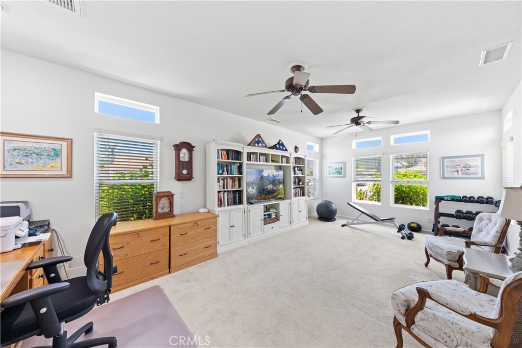 Welcome to your next chapter in the heart of West Murrieta! This beautifully maintained single-story pool home offers 3 bedrooms plus office, 2 bathrooms, and a spacious 2,276 sq ft layout. The sellers have taken great care of the home, with upgrades including a newer roof, paid-off solar, newer windows, water softener, updated pool pump, and more. The open-concept design flows seamlessly into the family room, made even more special by its trio of skylights that bathe the space in soft, natural light.
