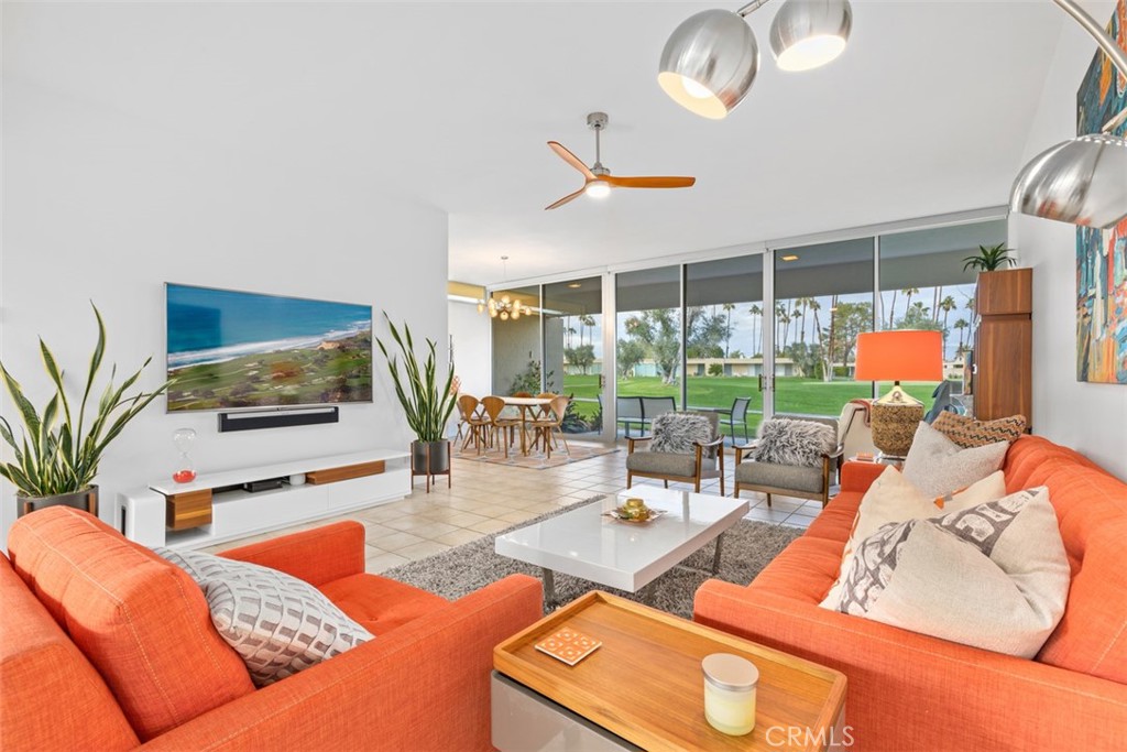 This light-filled midcentury modern home, with owned solar, is located on the best street in Seven Lakes Golf & Country Club with the most spectacular views of the Santa Rosa and San Jacinto Mountains in all of Palm Springs. The home is located on the 15th hole of the Ted Robinson executive golf course with an extra wide fairway and true mountain panoramas from every room. It has been styled to reflect modern living and capture the outstanding views of snow peaked mountain tops and Bob Hope's house. Designed in 1969 by Palm Springs architect Richard Harrison, this Mid-century Modern two bed, two bath home is located in the Seven Lakes Country Club Community known as ''The Gem of the Desert.'' Truly designed for year-round outdoor living, the north & south walls of glass open to extend your living space. The private courtyard offers beautiful views of the mountains and a BBQ perfect for entertaining. Designed in true Palm Springs style, the home boasts ten-foot ceilings, tile flooring, walls of glass, skylights and clerestory windows. Built between 1964 and 1972, Seven Lakes Golf & Country Club is the only private, guarded and gated mid-century modern community in South Palm. The community provides breathtaking views over a Ted Robinson designed 18-hole executive golf course enhanced by mid-century modern architecture designed by Richard Harrison and William Cody. Amenities include a 24-hour attended-gate, an 18-hole par 58 golf course that is 2,712 yards long, a club house complete with a restaurant and lively bar, 15 community heated swimming pools and spas, 11 BBQ areas, full sized tennis and pickleball court, shuffleboard, golf/pro shop, and electric car charging stations. Seven Lakes CC is a very low-density community with over 30% percent of the area being "green space." Just steps away from The Parker Hotel, a 5 minute drive to several grocery stores and restaurants, and a 10 minute drive to downtown Palm Springs. Designed in 1963 by Ted Robinson, the Executive golf course is suited for all types of players, from beginners to the most experienced golfers. Limited membership means you'll rarely, if ever, have to wait for a tee time. No matter how you choose to participate at Seven Lakes, you will be on the same course that PGA Hall of Fame Johnny Revolta lived and played, and where President Eisenhower shot his famous hole in one.