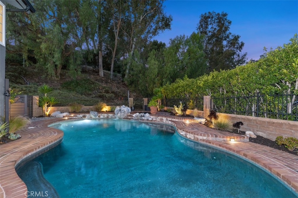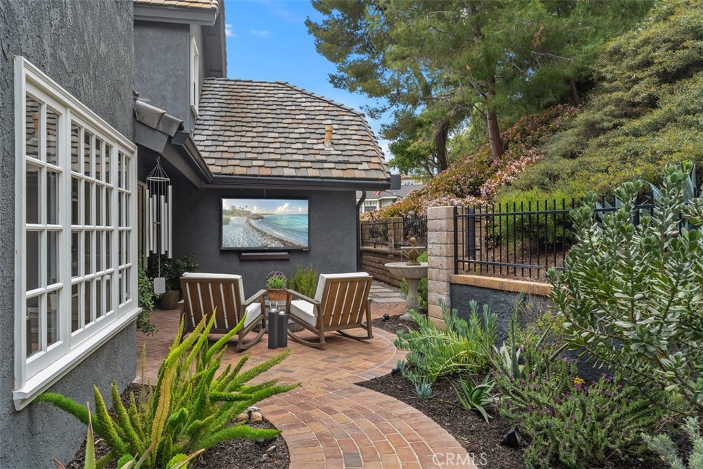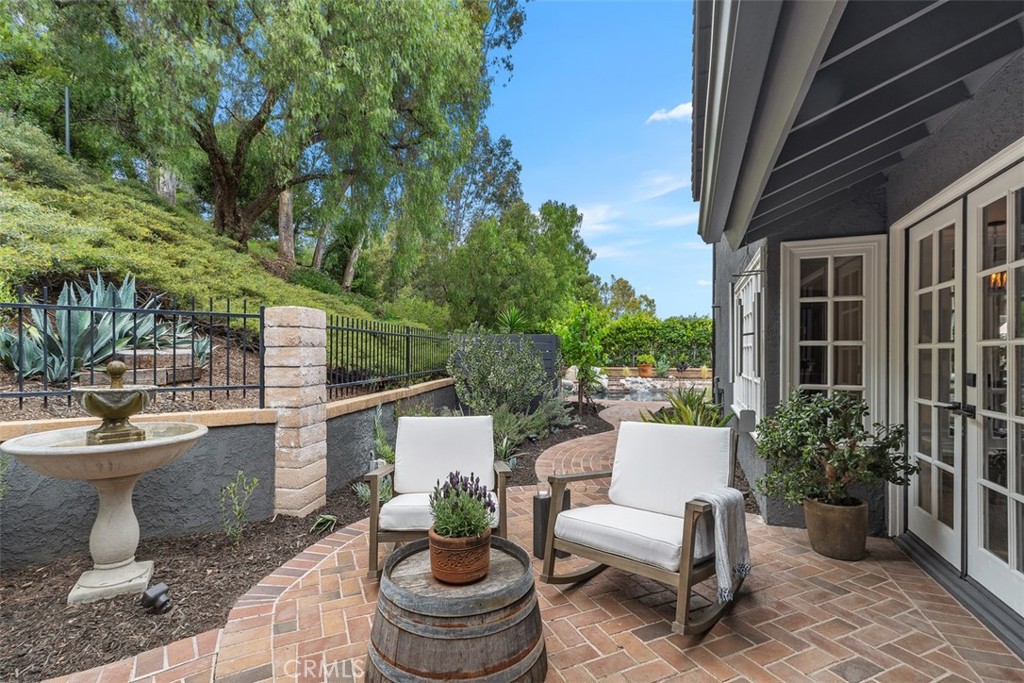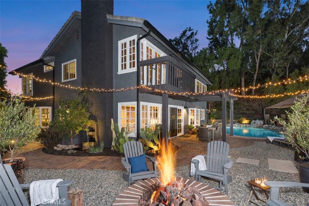 Welcome to your dream home-a stunning Cape Cod-style sanctuary offering 5 spacious bedrooms, a versatile bonus room, and 4 full baths, all set on a private, desirable lot at the end of a cul-de-sac, on the most elevated location in the neighborhood. From the moment you enter the gated front courtyard, you'll love the tranquil fountain, lush landscaping, and custom Dutch door that opens into an inviting entryway. The living room is full of charm and functionality, with tall ceilings and French doors that lead to a serene courtyard area with a TV and water feature. The light-filled kitchen has stainless steel appliances, a farmhouse sink, granite countertops, and an inviting bar area, perfect for casual dining or entertaining. Flowing seamlessly into the family room, this space has tons of natural light with views of the lush backyard and sparkling pool. The family room is anchored by a cozy floor-to-ceiling white brick fireplace with a reclaimed wood mantle and opens onto the covered outdoor dining and entertaining area. Step into the serene wrap-around backyard, designed for relaxation and entertaining. Highlights include a built-in fire pit, pool and spa, multiple seating areas, and thoughtfully curated landscaping with succulents, beach grasses, eco-friendly pea gravel, and Malibu lighting. The main floor is perfectly designed for convenience and comfort, featuring two bedrooms, two full baths, a laundry area fit for dual full-size stackable washers and dryers, and a dramatic staircase. Upstairs, the luxurious primary suite offers a cozy sitting area with fireplace, abundant natural light, a large primary bath, a walk-in closet, and breathtaking views of the hills. The second floor also includes two additional bedrooms, two full baths, and a large bonus room with a TV viewing area, pool table, natural wood tongue-and-groove paneling, and its own mini-split heating and AC system. Additional features of this meticulous home include luxury vinyl plank flooring throughout, a whole-house PEX re-piping, a water filtration system, a Sonos sound system, a Vivint security system, and a professionally installed multi-access point network for seamless connectivity indoors and out. With no HOA fees, this home is located near top-rated schools, charming downtown San Juan Capistrano, and the vibrant new River Street. This home blends timeless architectural elegance with modern convenience, offering a luxurious lifestyle and endless possibilities for creating memories.