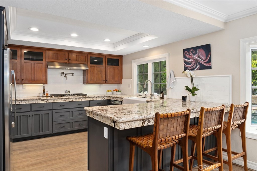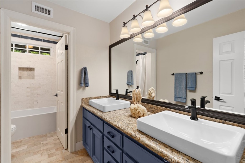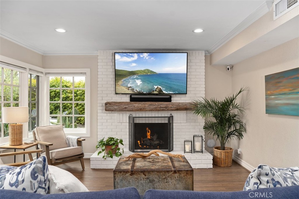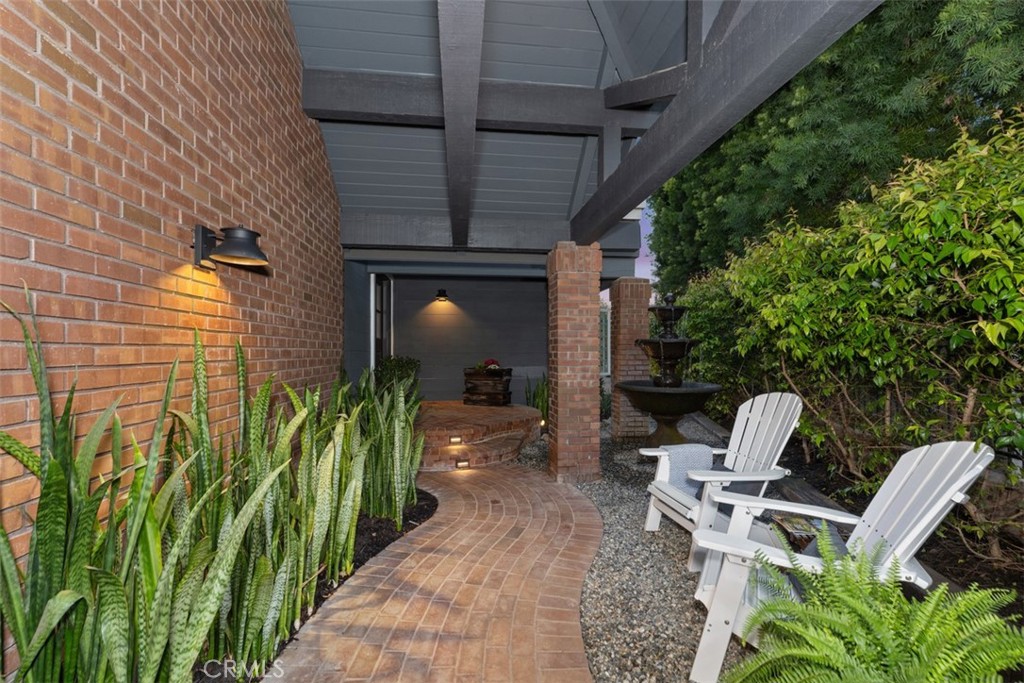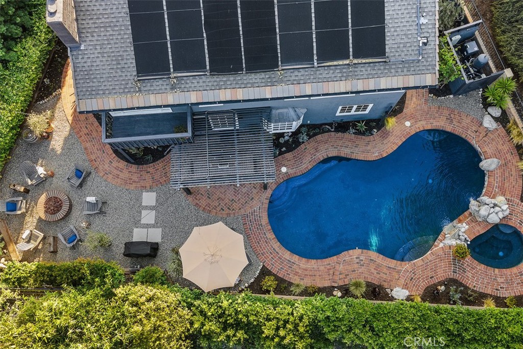 Welcome to your dream home-a stunning Cape Cod-style sanctuary offering 5 spacious bedrooms, a versatile bonus room, and 4 full baths, all set on a private, desirable lot at the end of a cul-de-sac, on the most elevated location in the neighborhood. From the moment you enter the gated front courtyard, you'll love the tranquil fountain, lush landscaping, and custom Dutch door that opens into an inviting entryway. The living room is full of charm and functionality, with tall ceilings and French doors that lead to a serene courtyard area with a TV and water feature. The light-filled kitchen has stainless steel appliances, a farmhouse sink, granite countertops, and an inviting bar area, perfect for casual dining or entertaining. Flowing seamlessly into the family room, this space has tons of natural light with views of the lush backyard and sparkling pool. The family room is anchored by a cozy floor-to-ceiling white brick fireplace with a reclaimed wood mantle and opens onto the covered outdoor dining and entertaining area. Step into the serene wrap-around backyard, designed for relaxation and entertaining. Highlights include a built-in fire pit, pool and spa, multiple seating areas, and thoughtfully curated landscaping with succulents, beach grasses, eco-friendly pea gravel, and Malibu lighting. The main floor is perfectly designed for convenience and comfort, featuring two bedrooms, two full baths, a laundry area fit for dual full-size stackable washers and dryers, and a dramatic staircase. Upstairs, the luxurious primary suite offers a cozy sitting area with fireplace, abundant natural light, a large primary bath, a walk-in closet, and breathtaking views of the hills. The second floor also includes two additional bedrooms, two full baths, and a large bonus room with a TV viewing area, pool table, natural wood tongue-and-groove paneling, and its own mini-split heating and AC system. Additional features of this meticulous home include luxury vinyl plank flooring throughout, a whole-house PEX re-piping, a water filtration system, a Sonos sound system, a Vivint security system, and a professionally installed multi-access point network for seamless connectivity indoors and out. With no HOA fees, this home is located near top-rated schools, charming downtown San Juan Capistrano, and the vibrant new River Street. This home blends timeless architectural elegance with modern convenience, offering a luxurious lifestyle and endless possibilities for creating memories.