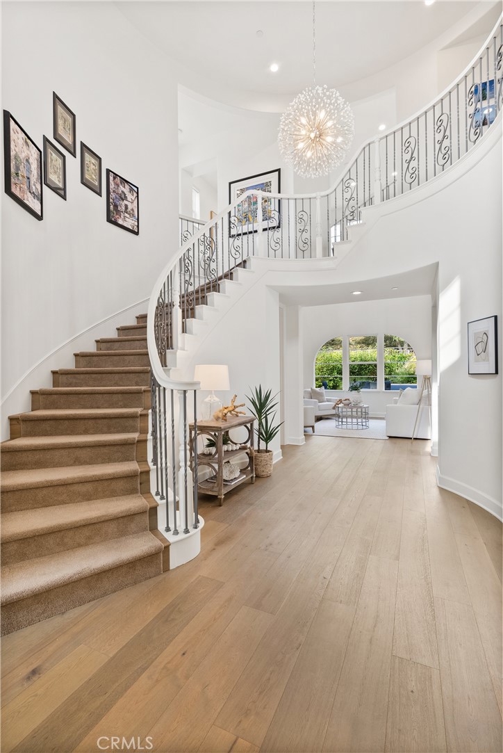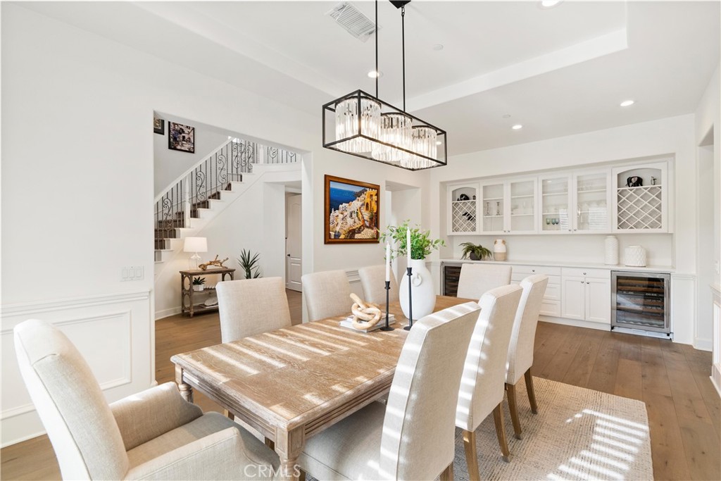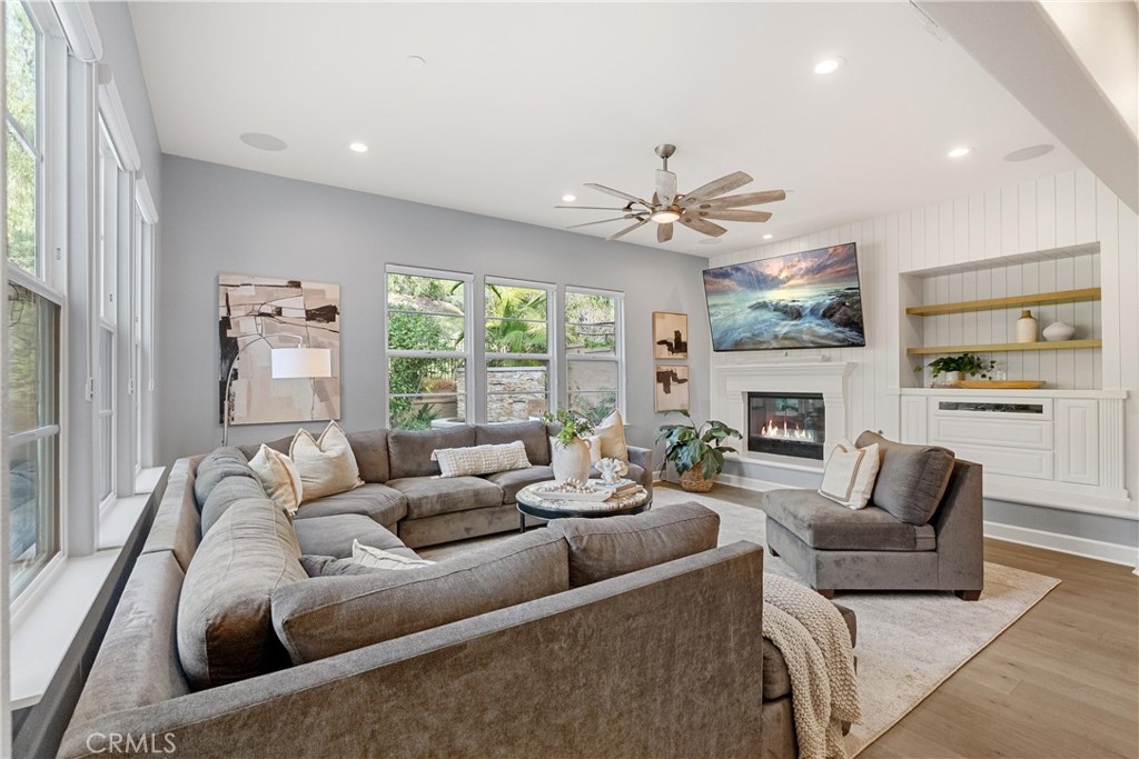 Welcome to this stunning residence located in the prestigious gated community of Rancho Madrina, perfectly situated on a private cul-de-sac. Boasting five spacious bedrooms, each with its own en-suite bathroom, this home is a masterpiece of luxury, functionality, and timeless craftsmanship.From the moment you step into the grand entry, you'll be captivated by the designer lighting accents, custom moldings, and built-ins that define the exceptional quality of this home. The thoughtfully designed floor plan offers a refined flow, with the kitchen opening seamlessly to the inviting family room--ideal for gatherings or relaxed evenings. A true chef's haven, the kitchen features high-end Thermador and Sub-Zero appliances, a walk-in pantry, a convenient pot filler, quartz countertops, and a custom backsplash that adds a touch of artistry.Gleaming hardwood floors extend through most of the home, enhancing its warmth and character. The main floor bedroom adds flexibility and convenience, perfect for hosting guests or accommodating multigenerational living. Impeccably maintained, this home features newer HVAC systems, a water-softening system, and has been repiped with durable PEX piping for ultimate peace of mind.Nestled in a serene and private location, this exceptional property is just moments from major freeways, downtown San Juan Capistrano, and top-rated private schools. Additional highlights include ample storage, a thoughtfully curated interior, and the timeless quality that makes this home truly special.