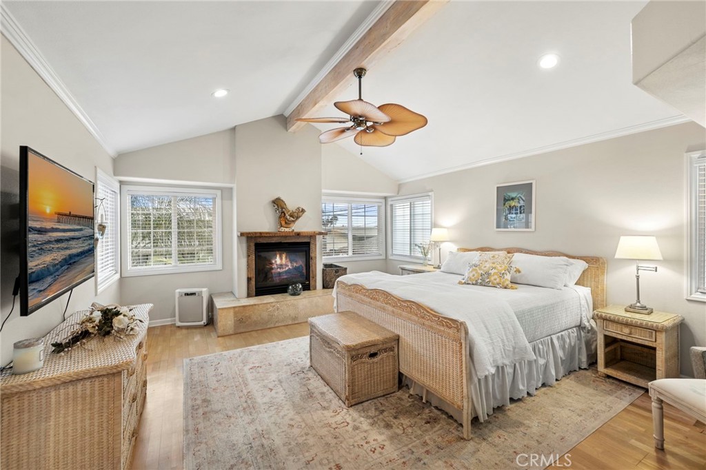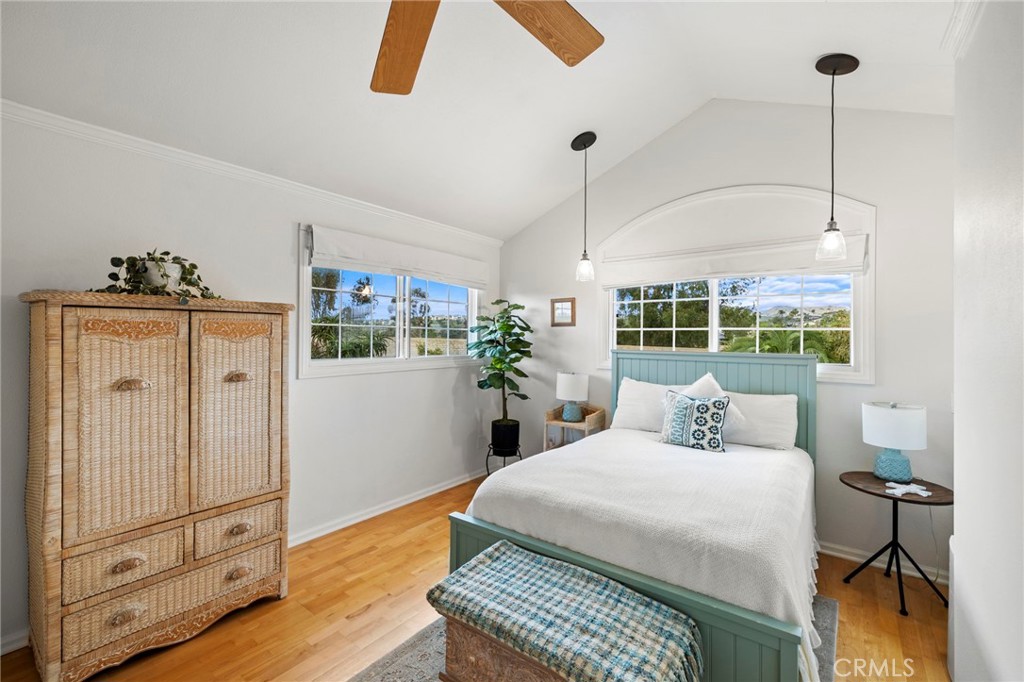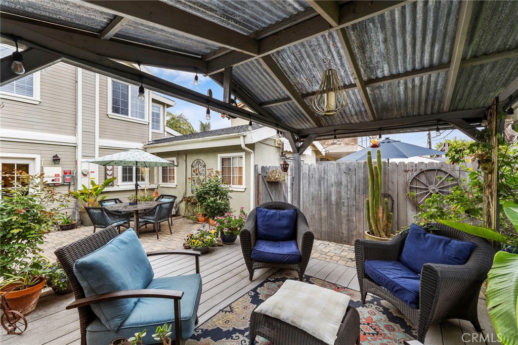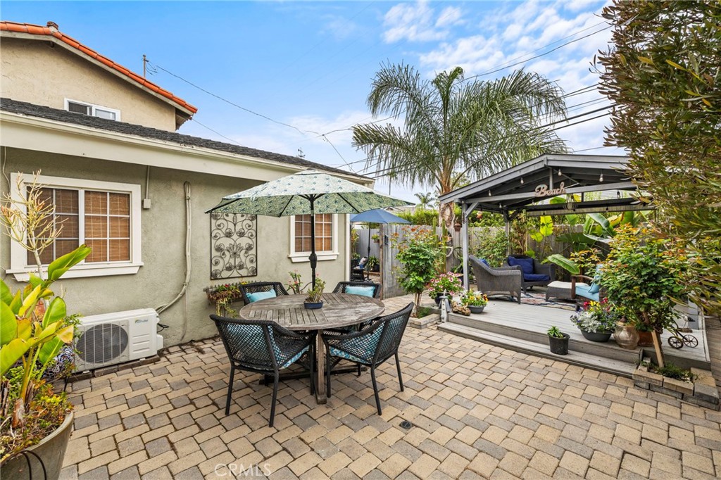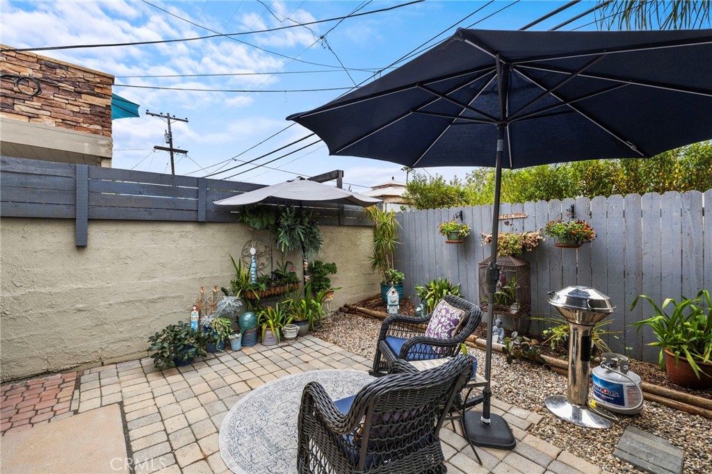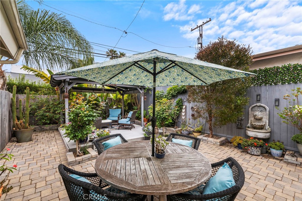 Located on a quiet single loaded street on the ocean side of the 5 in Capo Beach, this light filled and thoughtfully upgraded residence offers a rare blend of versatility, privacy, and everyday ease just minutes from the coast. The setting feels notably calm and removed, creating a sense of quiet that is unexpected for such a convenient location. Spanning approximately 2,600 square feet, the property features four bedrooms and four bathrooms, including a fully permitted ADU with its own address, Unit B. The layout offers exceptional flexibility for multi generational living, guest accommodations, or income potential. It can function as a three bedroom main residence with a private one bedroom ADU or easily transition into a cohesive four bedroom home or attached in law suite. Natural light fills the main living spaces, where a vaulted wood ceiling enhances the sense of volume in the living and dining areas. The kitchen is both functional and inviting, complete with a peninsula bar, granite countertops, full tile backsplash, stainless steel apron sink, and stainless steel appliances. A stacked stone fireplace anchors the family room, creating a warm and comfortable gathering space. French doors open to a private backyard designed for relaxed outdoor living, with paver decking, a tranquil fountain, and a pergola setting ideal for entertaining or unwinding. Upstairs, the primary suite offers a peaceful retreat with vaulted ceilings, a fireplace, jetted tub, private bath, and a separate office area framed by a sliding barn door. The ADU, remodeled approximately one year ago, includes its own living area, ensuite bedroom, vaulted ceilings, and private yard. It is fully permitted with the city, features a fire rated separation from the main home, and shares utilities while maintaining its own legal address. Set on an approximately 4,400 square foot homesite, the property welcomes with a charming front yard, white picket fence, and covered entry porch. Additional upgrades include PEX piping, a tankless water heater, and owned solar. Located close to Palisades Elementary and just moments from Dana Point Harbor, the Lantern District, shops, dining, and coastal access, this home offers a flexible lifestyle opportunity in a peaceful coastal setting.