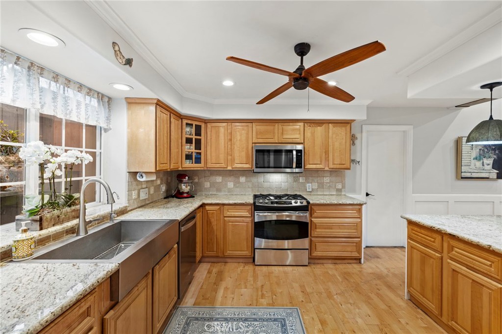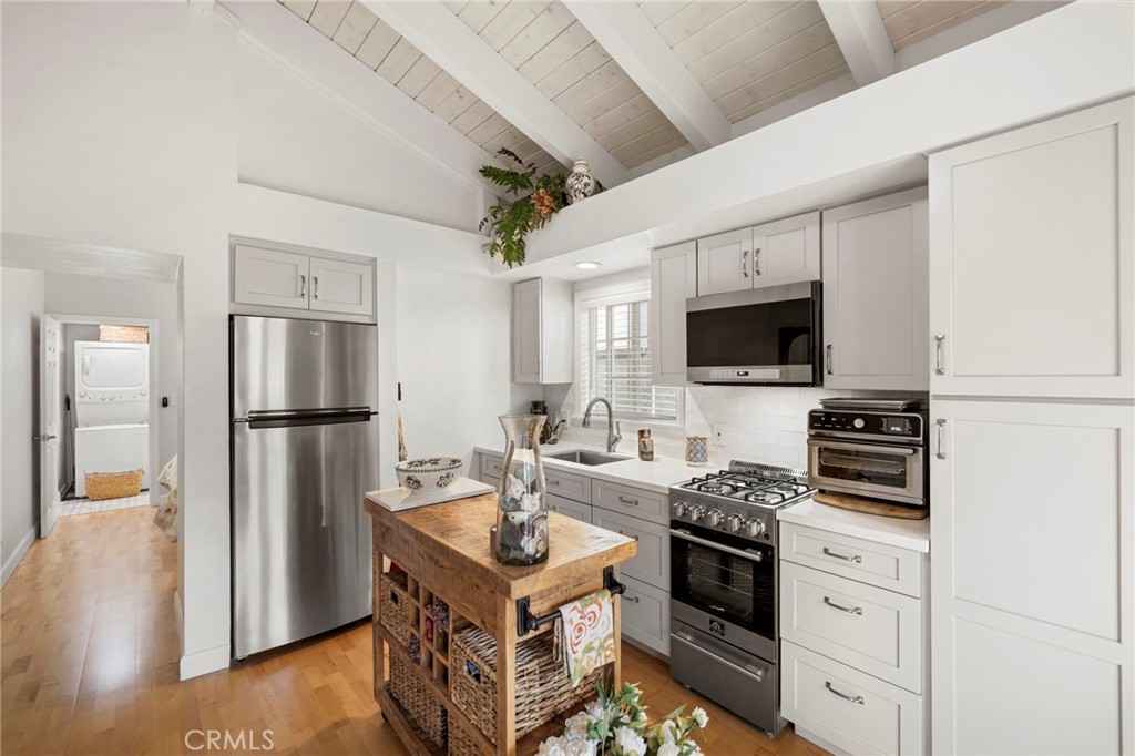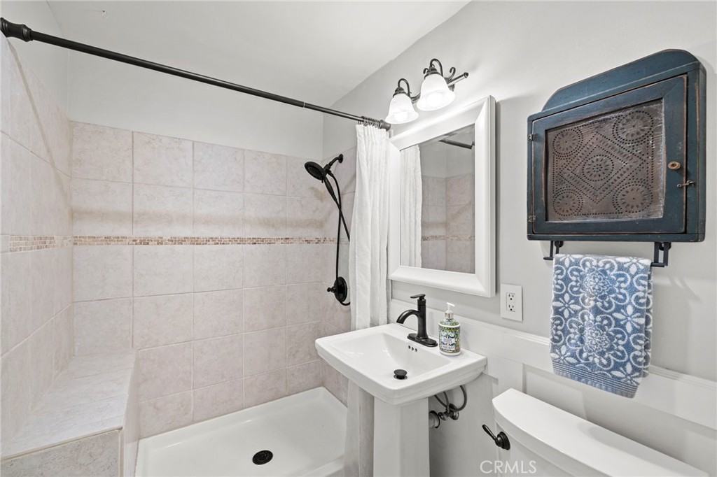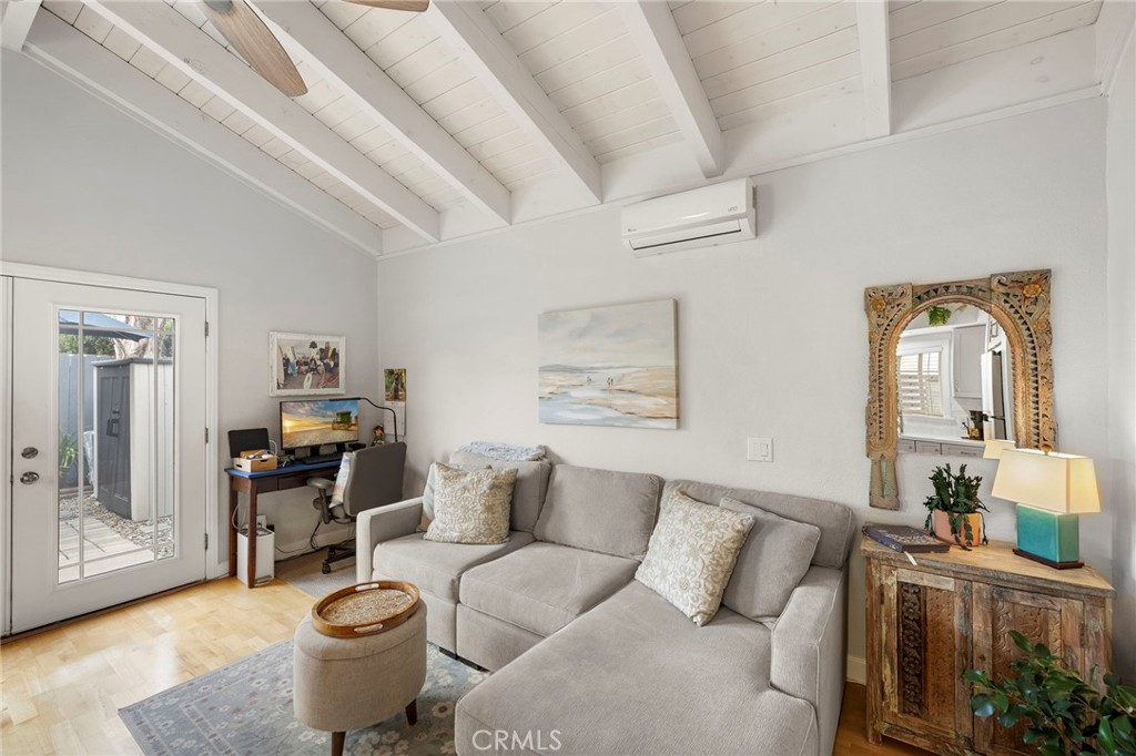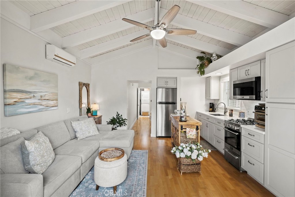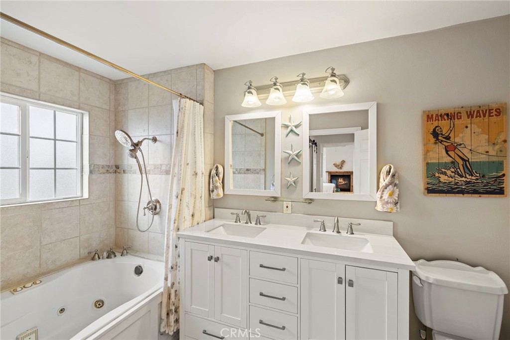 Located on a quiet single loaded street on the ocean side of the 5 in Capo Beach, this light filled and thoughtfully upgraded residence offers a rare blend of versatility, privacy, and everyday ease just minutes from the coast. The setting feels notably calm and removed, creating a sense of quiet that is unexpected for such a convenient location. Spanning approximately 2,600 square feet, the property features four bedrooms and four bathrooms, including a fully permitted ADU with its own address, Unit B. The layout offers exceptional flexibility for multi generational living, guest accommodations, or income potential. It can function as a three bedroom main residence with a private one bedroom ADU or easily transition into a cohesive four bedroom home or attached in law suite. Natural light fills the main living spaces, where a vaulted wood ceiling enhances the sense of volume in the living and dining areas. The kitchen is both functional and inviting, complete with a peninsula bar, granite countertops, full tile backsplash, stainless steel apron sink, and stainless steel appliances. A stacked stone fireplace anchors the family room, creating a warm and comfortable gathering space. French doors open to a private backyard designed for relaxed outdoor living, with paver decking, a tranquil fountain, and a pergola setting ideal for entertaining or unwinding. Upstairs, the primary suite offers a peaceful retreat with vaulted ceilings, a fireplace, jetted tub, private bath, and a separate office area framed by a sliding barn door. The ADU, remodeled approximately one year ago, includes its own living area, ensuite bedroom, vaulted ceilings, and private yard. It is fully permitted with the city, features a fire rated separation from the main home, and shares utilities while maintaining its own legal address. Set on an approximately 4,400 square foot homesite, the property welcomes with a charming front yard, white picket fence, and covered entry porch. Additional upgrades include PEX piping, a tankless water heater, and owned solar. Located close to Palisades Elementary and just moments from Dana Point Harbor, the Lantern District, shops, dining, and coastal access, this home offers a flexible lifestyle opportunity in a peaceful coastal setting.
