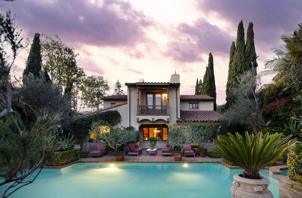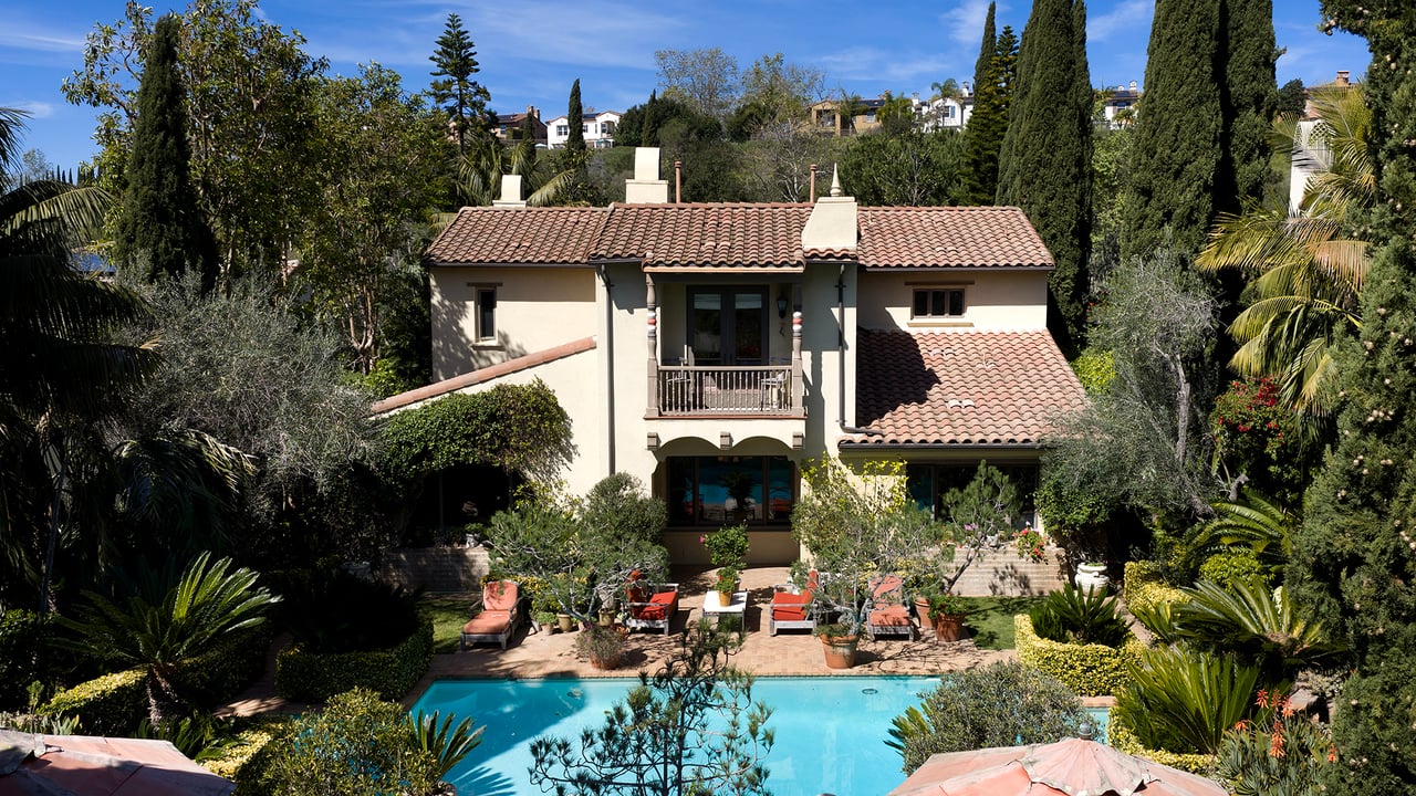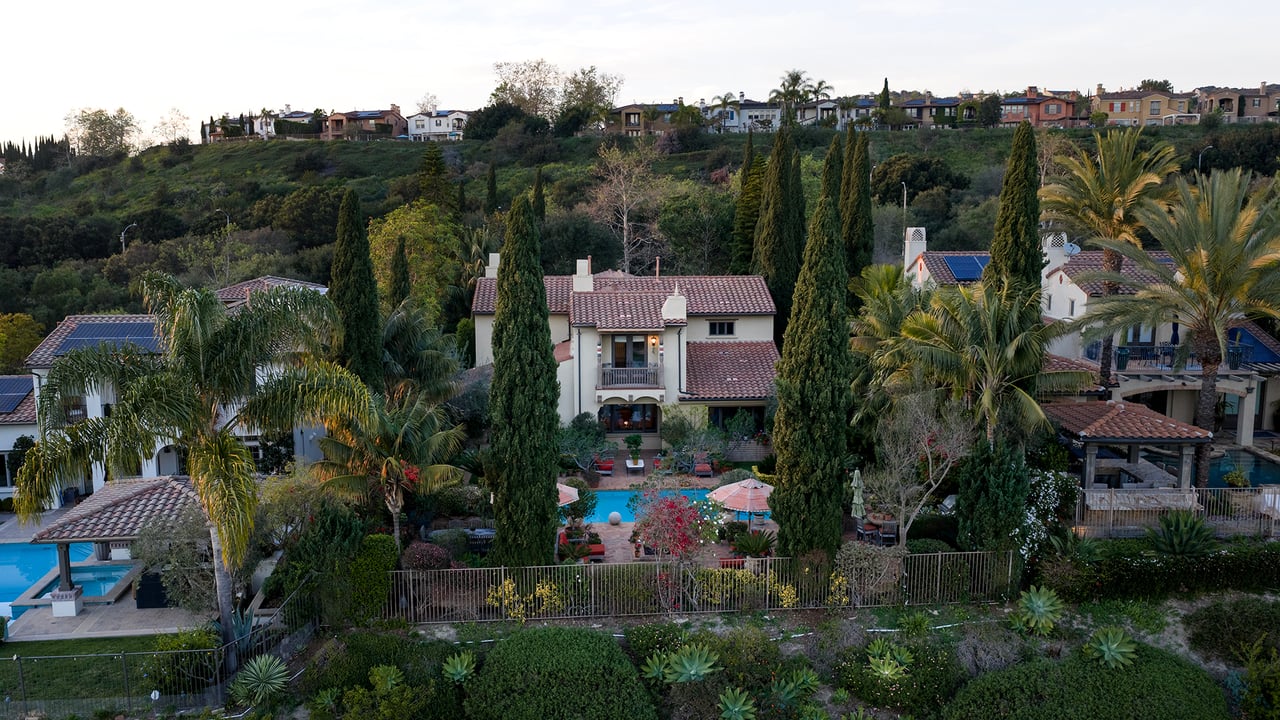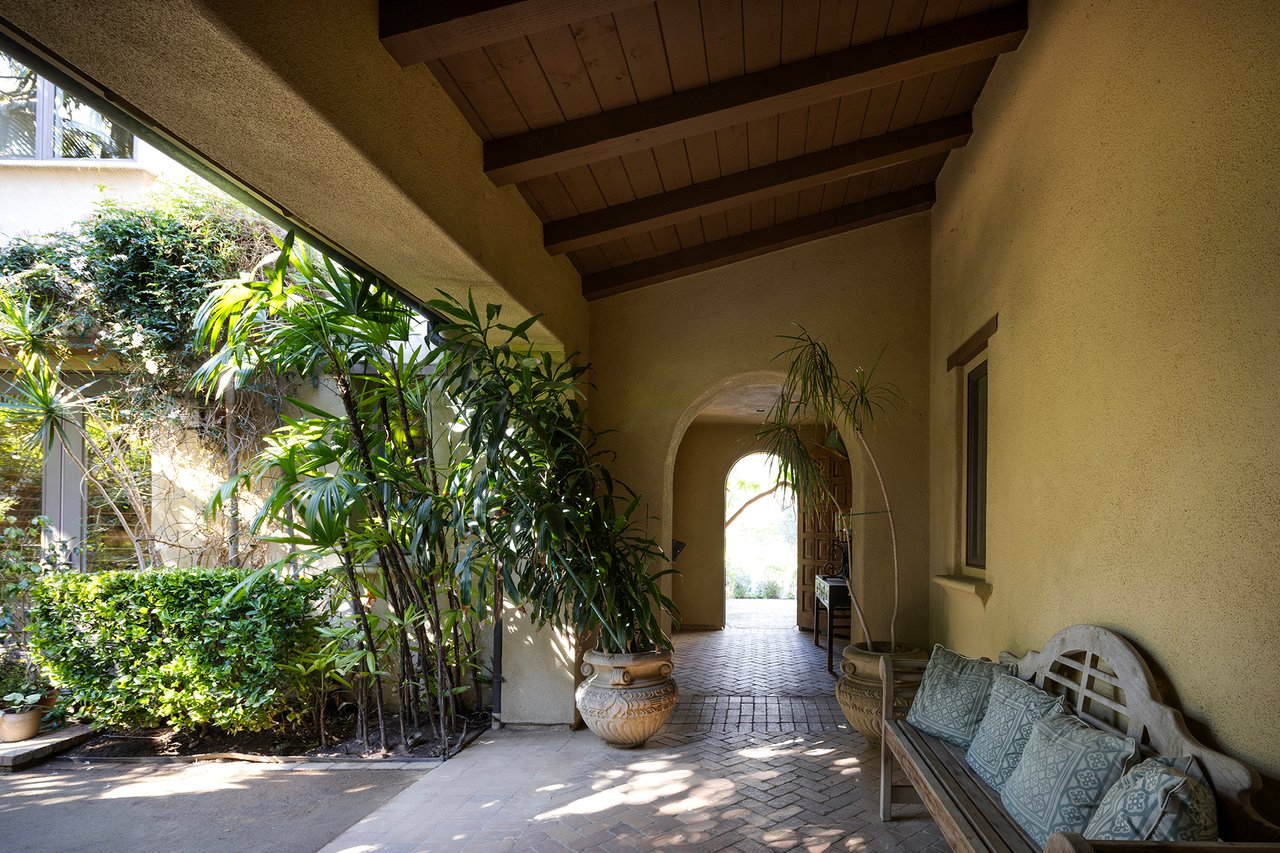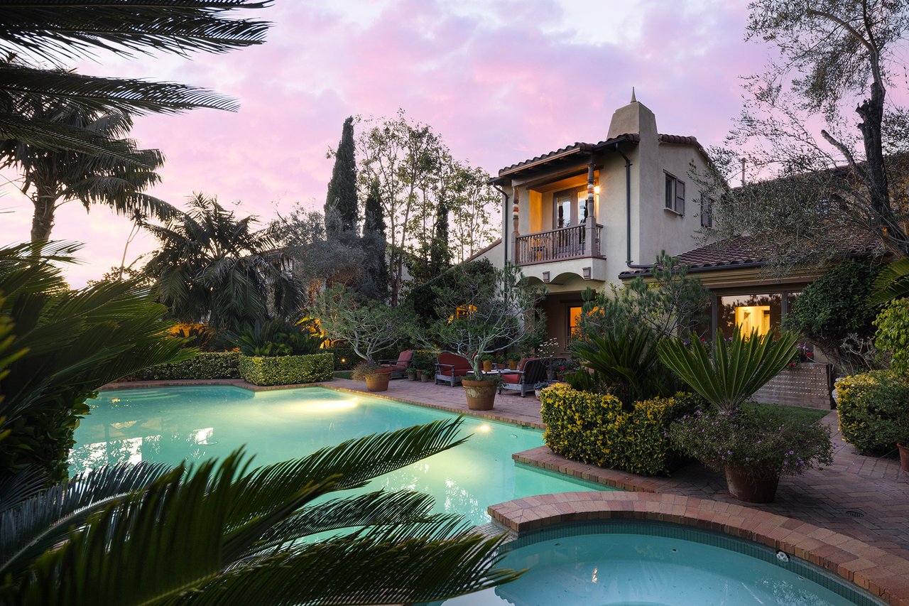 Set behind the gates of Careyes on one of its largest and most coveted 1/3-acre lots, this Italian Riviera-inspired estate unfolds like a private European retreat tucked quietly into the hills of San Clemente. From the moment you arrive, there is a shift. The architecture feels storied and intentional, rooted in another era. Soaring wood-beamed ceilings rise above Richard Marshall hardwood floors with intricate mosaic inlays, while wrought iron detailing, arched passages, and precast stone fireplaces create depth and romance throughout. The expansive floor plan offers six bedrooms, five full baths and two half baths, including two detached casitas. The downstairs casita is appointed with a high-end TV surround sound system, ideal for theater-style entertaining, while the upper casita offers its own private living space for guests or multigenerational flexibility. Formal and informal spaces flow into a gourmet kitchen with professional-grade appliances and granite countertops, allowing the home to live as beautifully as it entertains. Interior rooms and garden areas were pre-wired for high-end sound, creating a seamless indoor-outdoor experience. Upstairs, the primary suite serves as a private sanctuary, opening to a double-doored balcony with peek-a-boo ocean views beyond the rolling fairways of the Fred Couples-designed championship golf course and adjacent natural preserve. Yet it is the grounds that truly set this property apart. The backyard unfolds in terraces of aged brick, a rare architectural landscape that evokes the romance of the Italian coast. Imported Italian planters frame the estate, while mature landscaping forms a living wall of privacy, enclosing the property in quiet seclusion. Strategically placed water features provide a constant, soothing soundtrack as birds move through the trees throughout the day. At the heart of the garden, a resort-caliber pool shimmers with imported Walker Zanger Italian tile, paired with a heated spa that spills gently into the pool in a continuous cascade. Sunlight moves across brick and water as the day unfolds, creating an atmosphere that is immersive, transportive, and remarkably serene. Every pathway, hedge, and terrace has been considered with intention. The outdoor experience is not an accessory to the home. It is its soul.