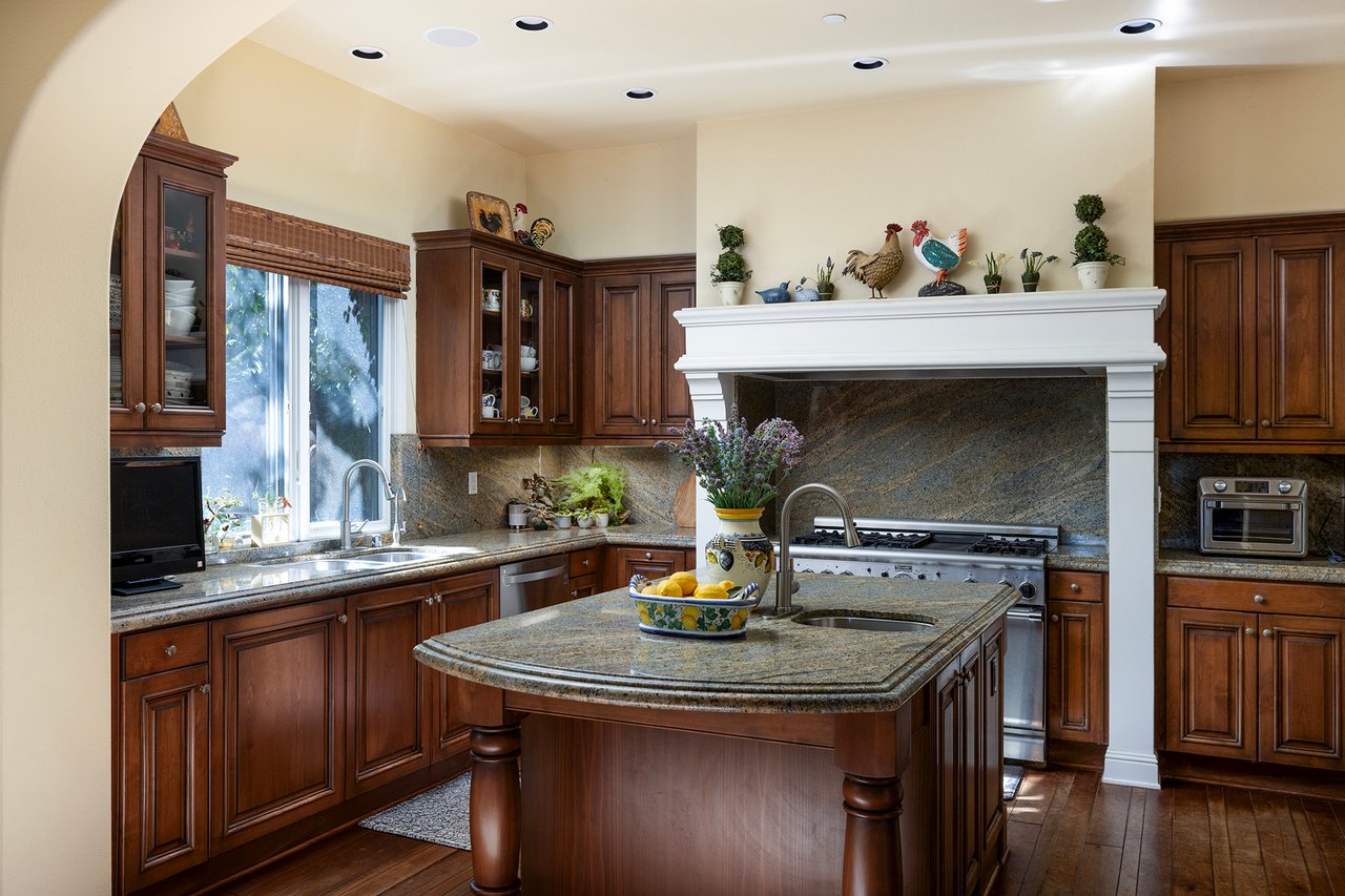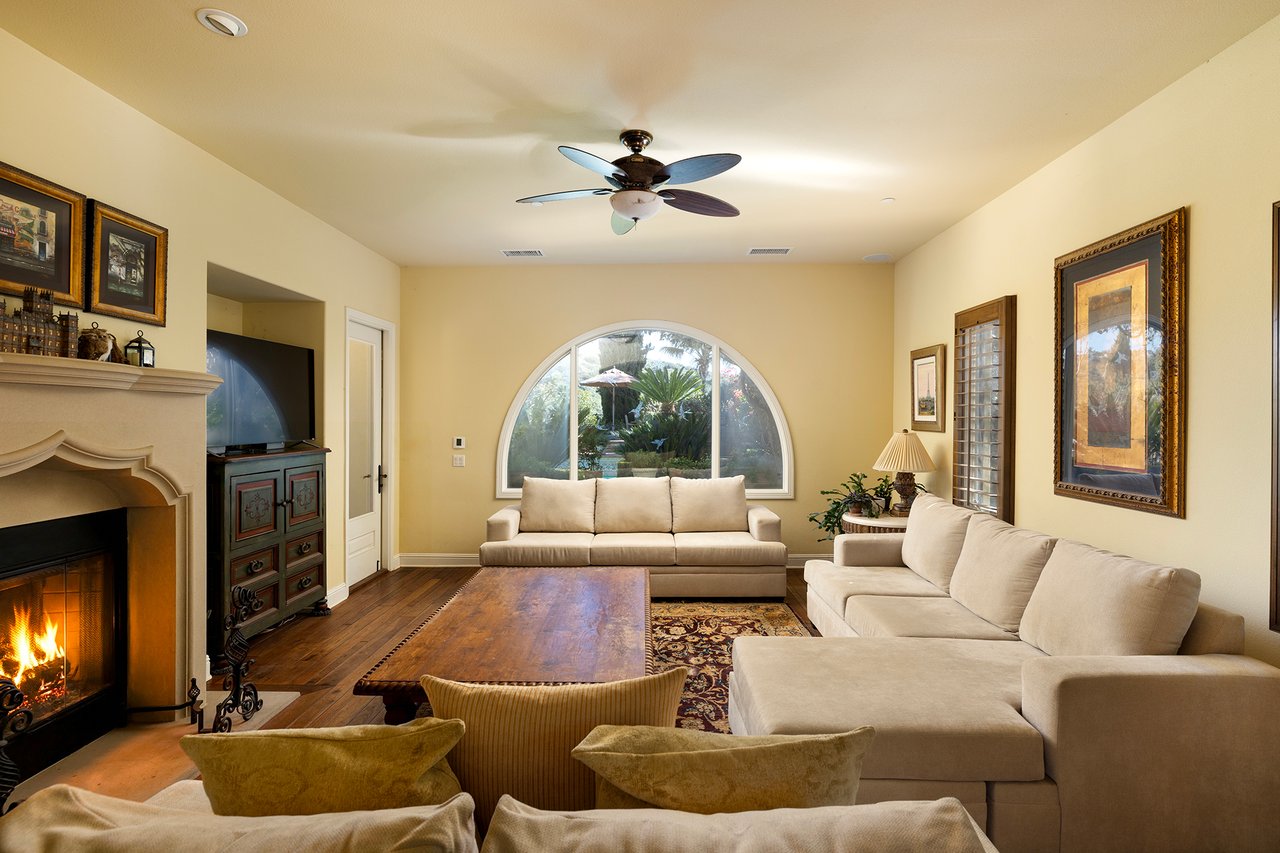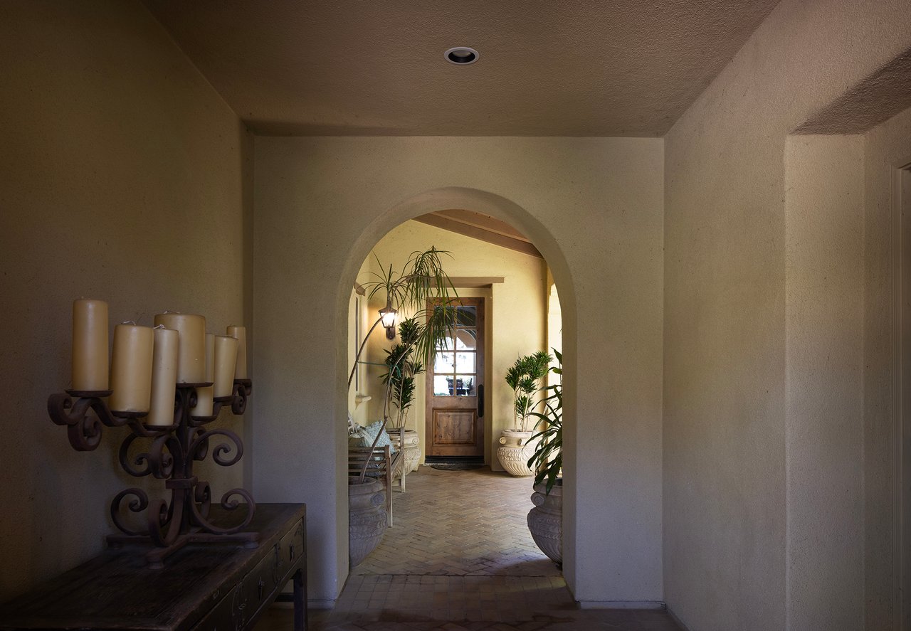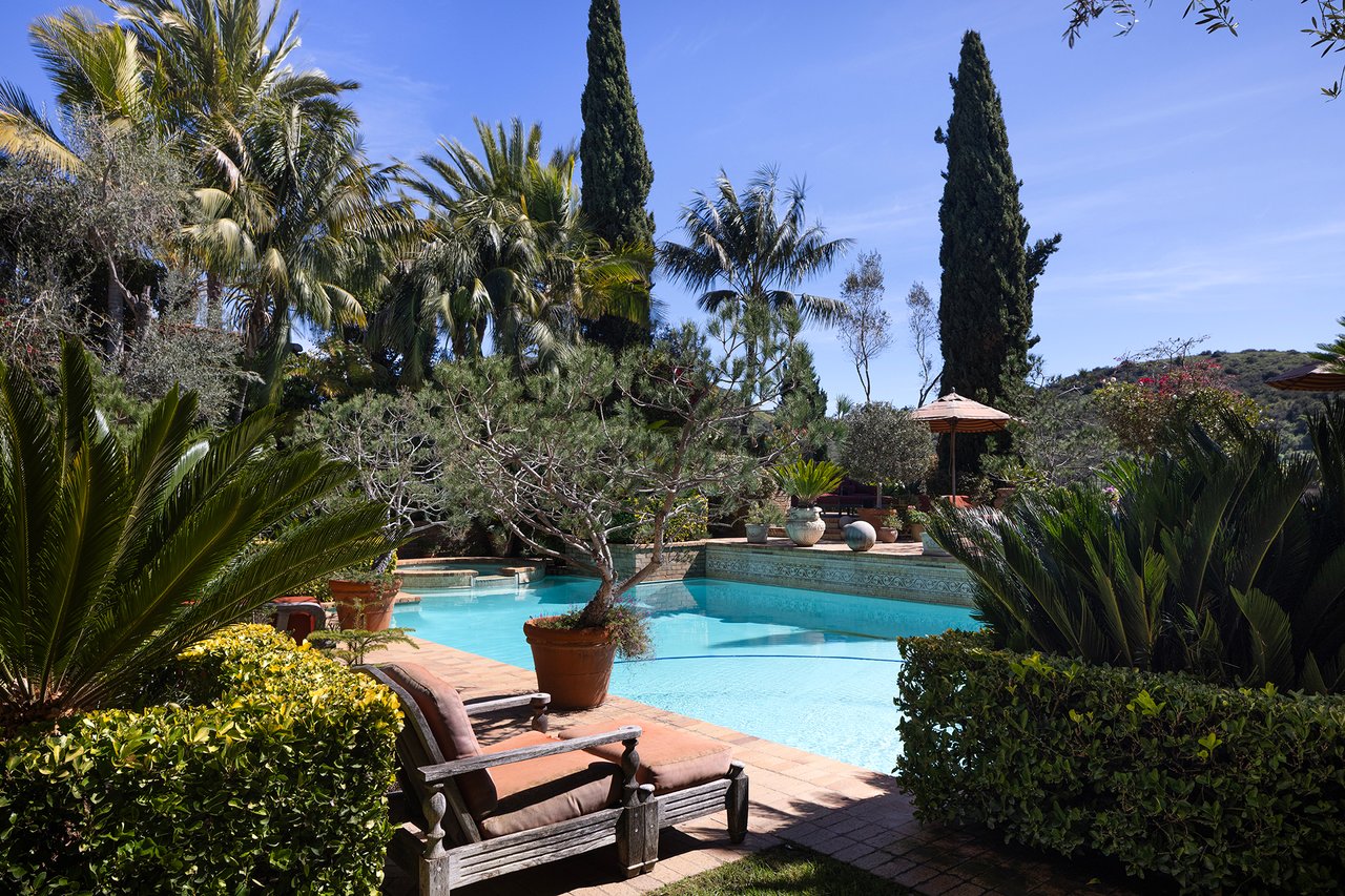 Set behind the gates of Careyes on one of its largest and most coveted 1/3-acre lots, this Italian Riviera-inspired estate unfolds like a private European retreat tucked quietly into the hills of San Clemente. From the moment you arrive, there is a shift. The architecture feels storied and intentional, rooted in another era. Soaring wood-beamed ceilings rise above Richard Marshall hardwood floors with intricate mosaic inlays, while wrought iron detailing, arched passages, and precast stone fireplaces create depth and romance throughout. The expansive floor plan offers six bedrooms, five full baths and two half baths, including two detached casitas. The downstairs casita is appointed with a high-end TV surround sound system, ideal for theater-style entertaining, while the upper casita offers its own private living space for guests or multigenerational flexibility. Formal and informal spaces flow into a gourmet kitchen with professional-grade appliances and granite countertops, allowing the home to live as beautifully as it entertains. Interior rooms and garden areas were pre-wired for high-end sound, creating a seamless indoor-outdoor experience. Upstairs, the primary suite serves as a private sanctuary, opening to a double-doored balcony with peek-a-boo ocean views beyond the rolling fairways of the Fred Couples-designed championship golf course and adjacent natural preserve. Yet it is the grounds that truly set this property apart. The backyard unfolds in terraces of aged brick, a rare architectural landscape that evokes the romance of the Italian coast. Imported Italian planters frame the estate, while mature landscaping forms a living wall of privacy, enclosing the property in quiet seclusion. Strategically placed water features provide a constant, soothing soundtrack as birds move through the trees throughout the day. At the heart of the garden, a resort-caliber pool shimmers with imported Walker Zanger Italian tile, paired with a heated spa that spills gently into the pool in a continuous cascade. Sunlight moves across brick and water as the day unfolds, creating an atmosphere that is immersive, transportive, and remarkably serene. Every pathway, hedge, and terrace has been considered with intention. The outdoor experience is not an accessory to the home. It is its soul.