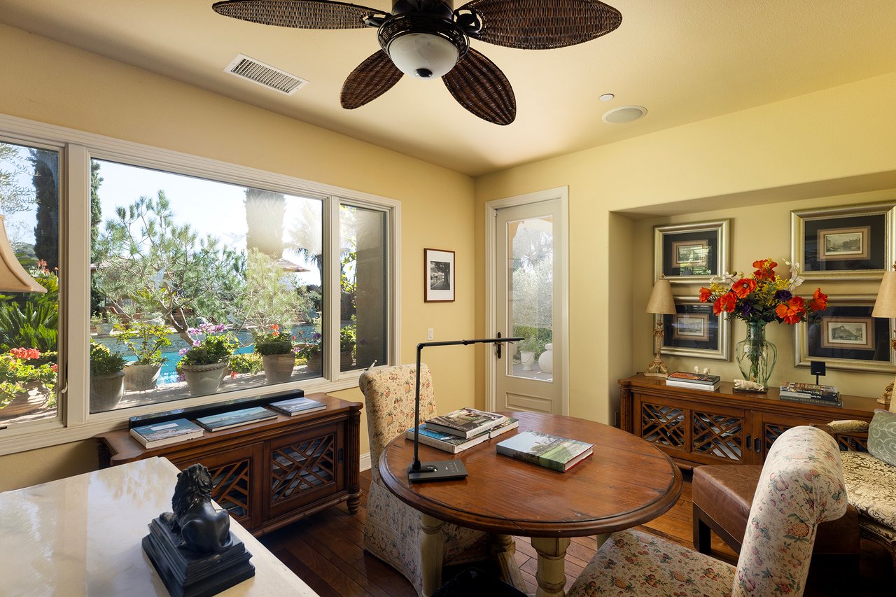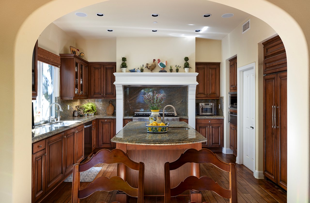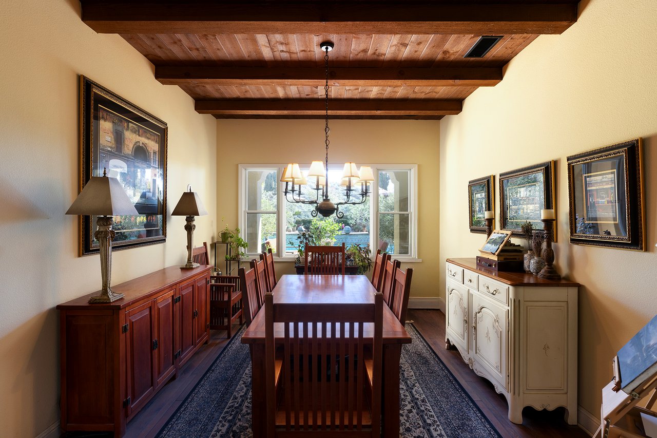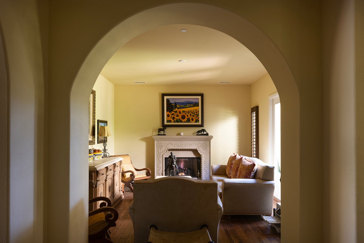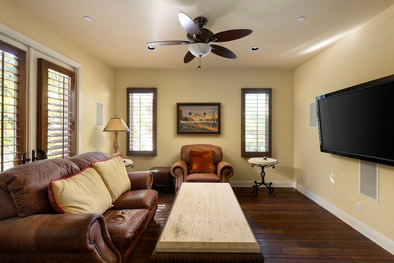 Set behind the gates of Careyes on one of its largest and most coveted 1/3-acre lots, this Italian Riviera-inspired estate unfolds like a private European retreat tucked quietly into the hills of San Clemente. From the moment you arrive, there is a shift. The architecture feels storied and intentional, rooted in another era. Soaring wood-beamed ceilings rise above Richard Marshall hardwood floors with intricate mosaic inlays, while wrought iron detailing, arched passages, and precast stone fireplaces create depth and romance throughout. The expansive floor plan offers six bedrooms, five full baths and two half baths, including two detached casitas. The downstairs casita is appointed with a high-end TV surround sound system, ideal for theater-style entertaining, while the upper casita offers its own private living space for guests or multigenerational flexibility. Formal and informal spaces flow into a gourmet kitchen with professional-grade appliances and granite countertops, allowing the home to live as beautifully as it entertains. Interior rooms and garden areas were pre-wired for high-end sound, creating a seamless indoor-outdoor experience. Upstairs, the primary suite serves as a private sanctuary, opening to a double-doored balcony with peek-a-boo ocean views beyond the rolling fairways of the Fred Couples-designed championship golf course and adjacent natural preserve. Yet it is the grounds that truly set this property apart. The backyard unfolds in terraces of aged brick, a rare architectural landscape that evokes the romance of the Italian coast. Imported Italian planters frame the estate, while mature landscaping forms a living wall of privacy, enclosing the property in quiet seclusion. Strategically placed water features provide a constant, soothing soundtrack as birds move through the trees throughout the day. At the heart of the garden, a resort-caliber pool shimmers with imported Walker Zanger Italian tile, paired with a heated spa that spills gently into the pool in a continuous cascade. Sunlight moves across brick and water as the day unfolds, creating an atmosphere that is immersive, transportive, and remarkably serene. Every pathway, hedge, and terrace has been considered with intention. The outdoor experience is not an accessory to the home. It is its soul.