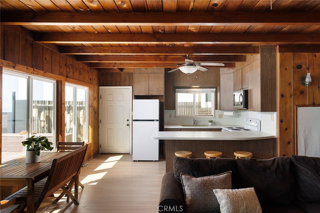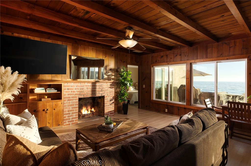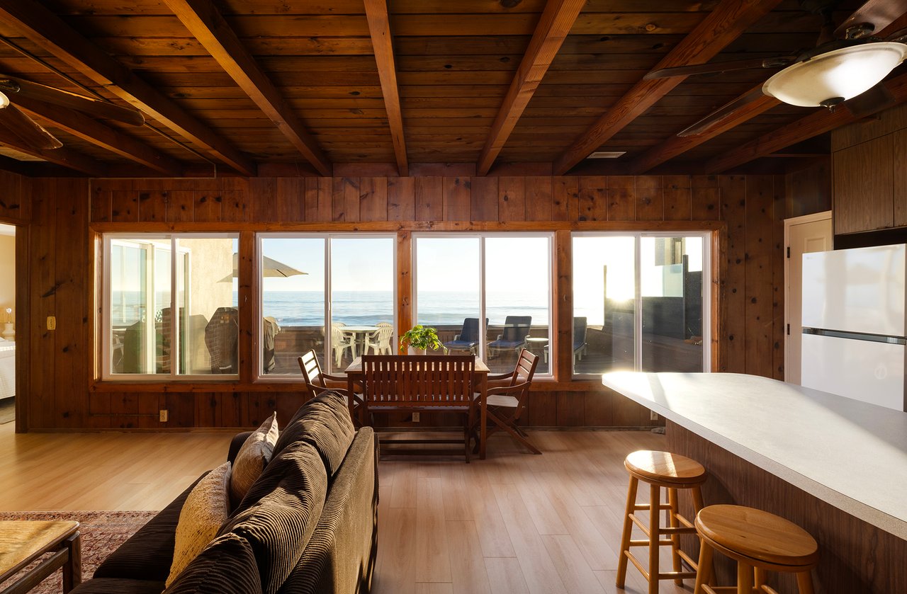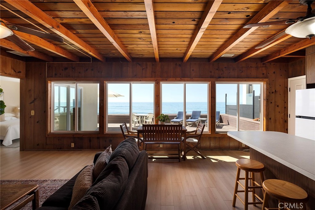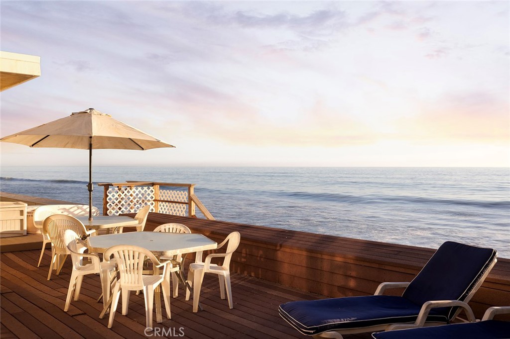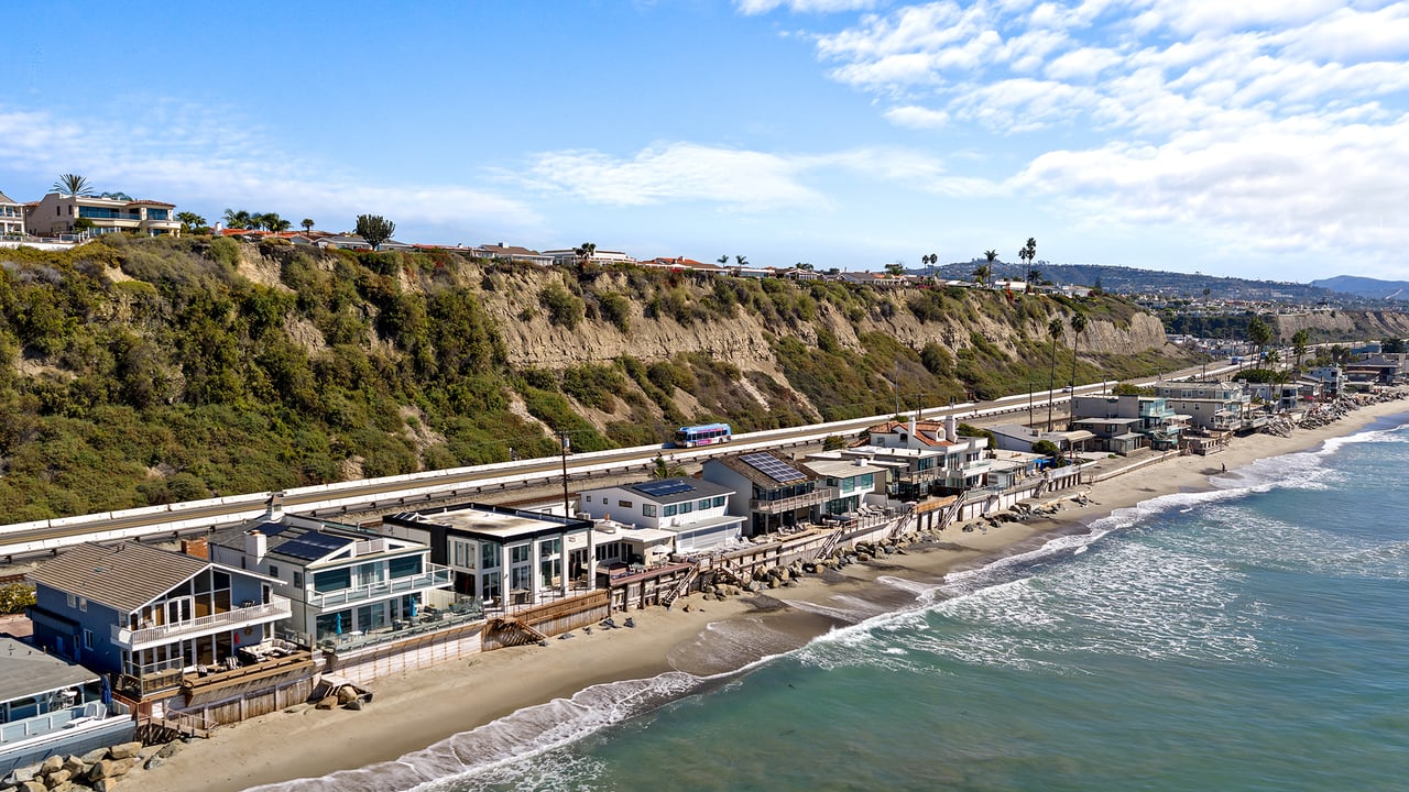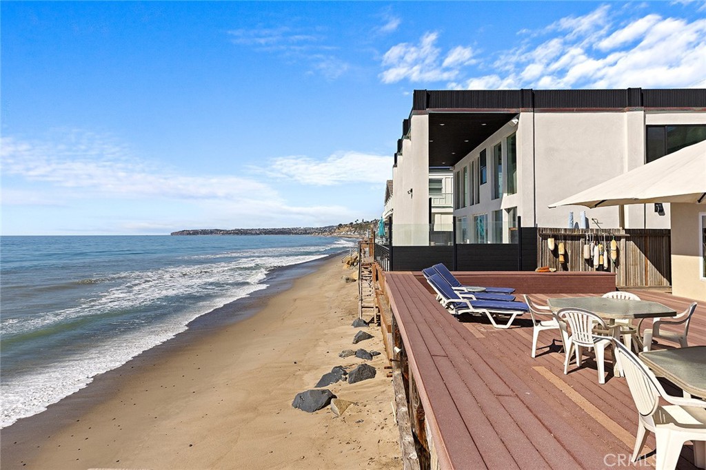Where classic California lives forever by the sea. Preserved with care and perched directly on the sand, this mid-century beach cottage along Dana Point's guard-gated Beach Road offers a glimpse into coastal living as it was meant to be--simple, soulful, and endlessly relaxing. Behind the seawall and the sound of the surf, original details tell the story of the home's 1940s heritage: beamed wood ceilings, paneled walls, and a breezy open layout that connects every moment to the ocean just beyond the deck. Wide windows frame Catalina views, while natural light drifts across warm laminate floors and a palette that feels both nostalgic and current. Three bedrooms and two baths unfold on a single level, offering effortless flow from morning coffee to sunset gatherings. The kitchen remains open to the main living area--where family, friends, and salty air naturally converge. Step outside to the expansive deck and watch the tide roll in from your private stretch of sand--your front-row seat to dolphins, color-soaked skies, and the rhythm of coastal life. Situated halfway between Los Angeles and San Diego--but a world away--Beach Road offers a level of privacy and tranquility rarely found along the Southern California coast. Unobstructed front-row views focus on breaking waves and the azure Pacific Ocean, while Catalina Island, city lights, San Clemente's pier, and Dana Point's rugged Headlands draw the eye up and down the shore. Homeowners along this exclusive stretch own to the median high-tide line, creating an unmatched connection to the sand and sea. With a single-car garage and four-car parking pad, this is one of the few places where convenience and serenity meet at the water's edge. Whether preserved in its current vintage beauty or reimagined as a modern retreat, life here remains centered on the sea--a rare opportunity to experience the heritage of true California beachfront living, timeless and always within earshot of the waves.