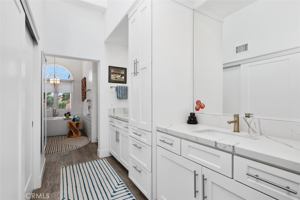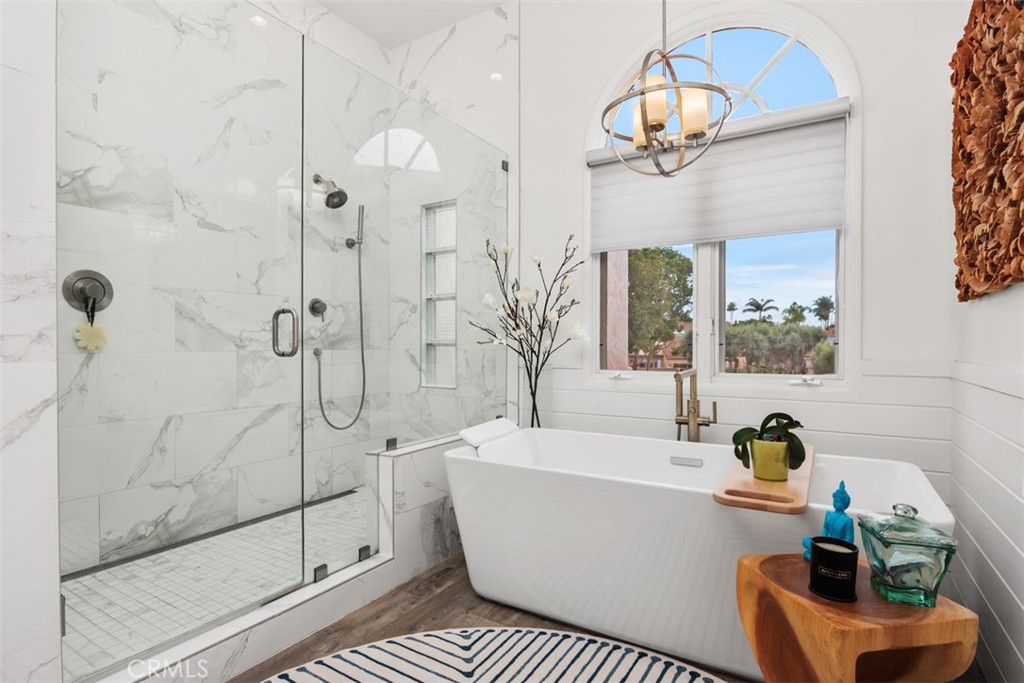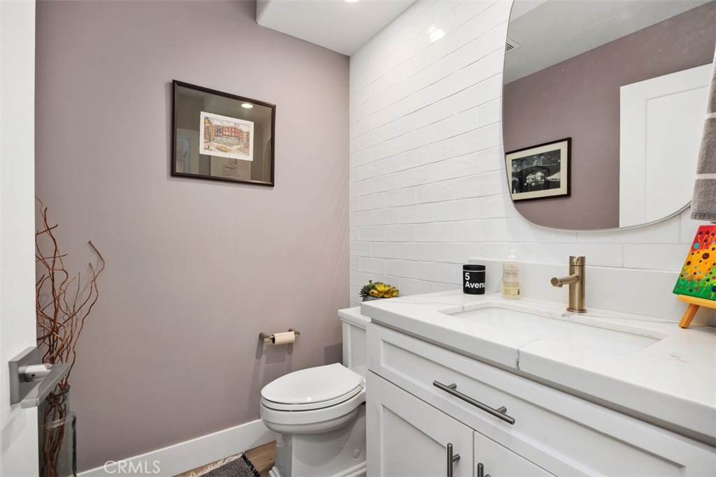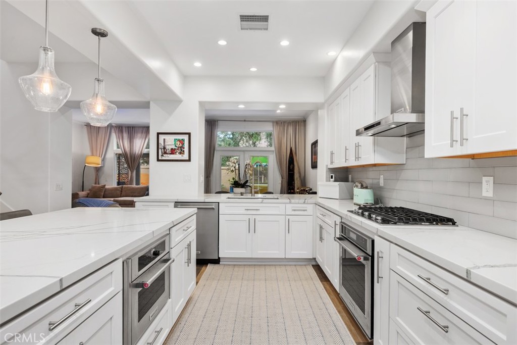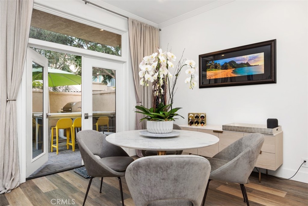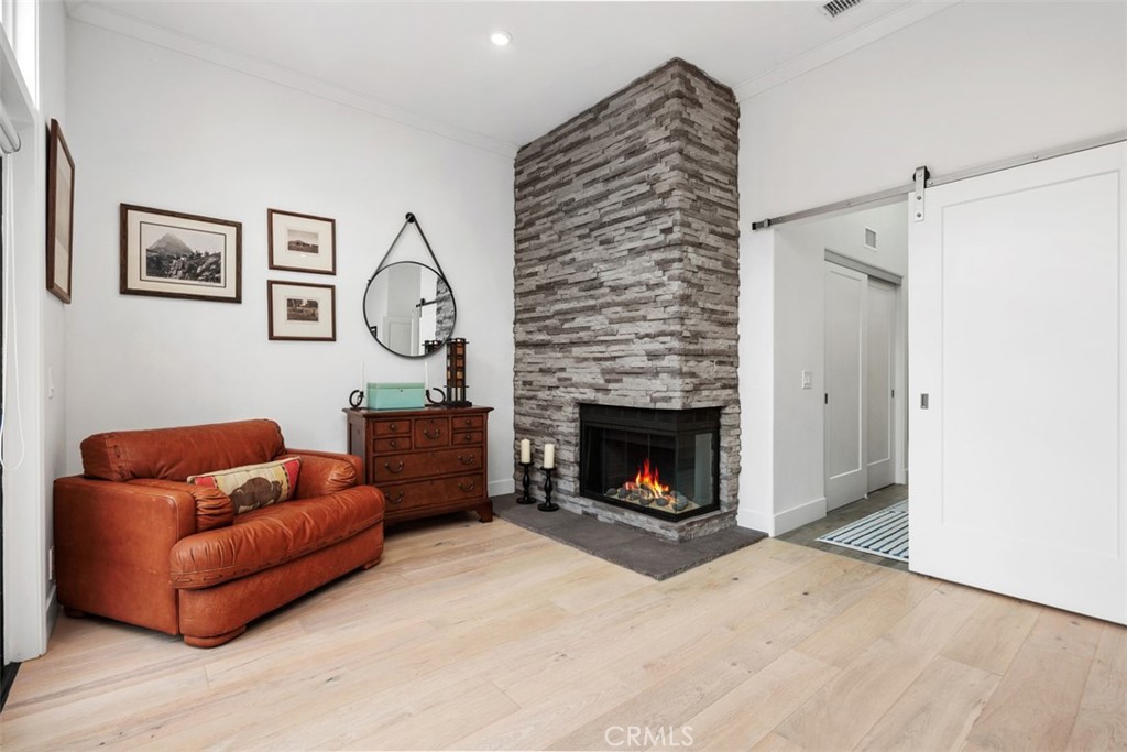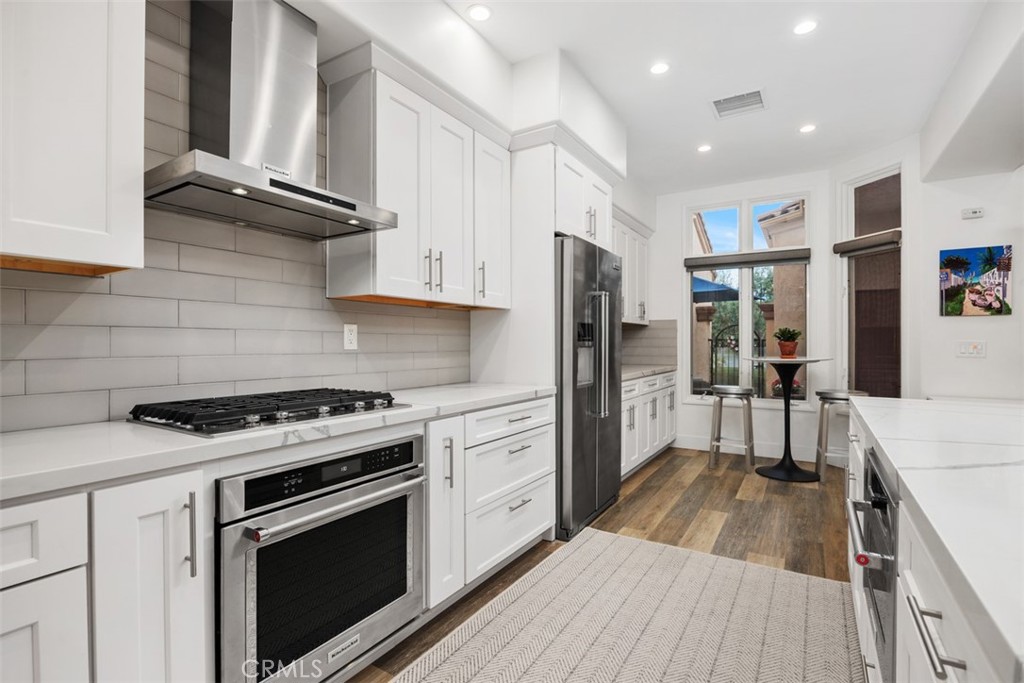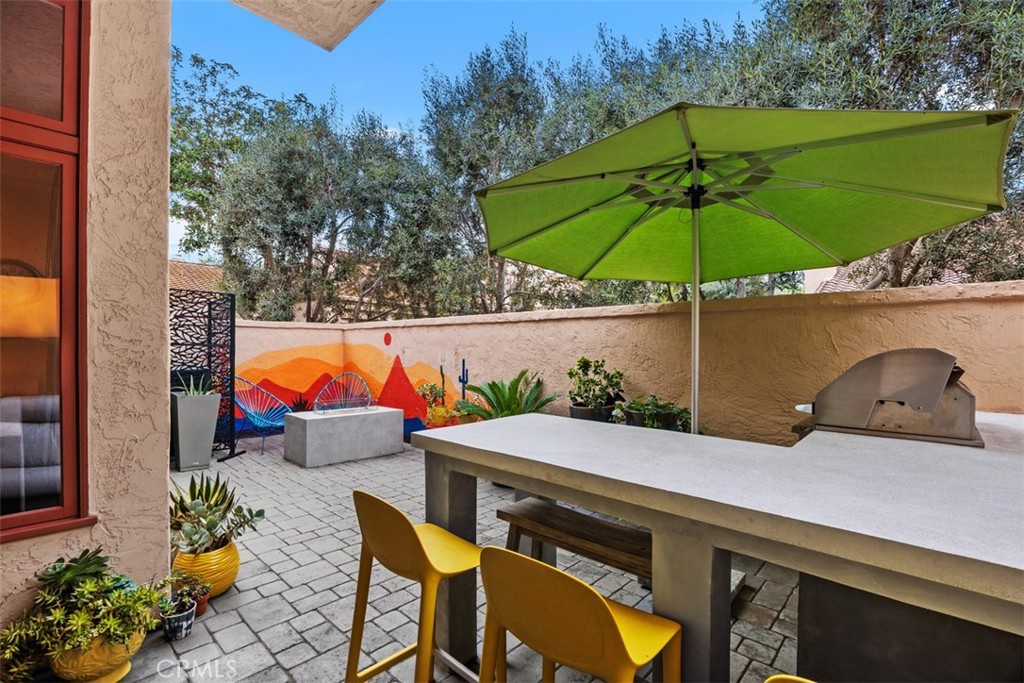 Set within the gated Alcala enclave of Whispering Palms, this refined Davidson-built residence blends elevated design with a relaxed, effortless way of living. The sought-after Viola model offers generous indoor-outdoor flow, airy volume, and thoughtfully refreshed spaces that complement the community's tranquil Rancho Santa Fe setting. A prior full remodel introduced quartz surfaces, European-style shaker cabinetry, Coretec Blackstone Oak plank flooring on the main level, and KitchenAid appliances. The current owner continued the enhancements with hardwood flooring throughout the upper level, hardwood stairs with a modern open rail, upgraded fireplace inserts, a refreshed patio environment, and additional functional improvements including a newer water heater, water purification system and updated garage door opener. The kitchen features quartz counters, a stylish matte ceramic tile backsplash, a center island, and seamless connection to the great room. The living area centers around a stone-accented fireplace and extends toward the outdoor patio--finished in custom concrete pavers and designed with a built-in dining/bar setup, BBQ, and fire feature for effortless evening gatherings. Upstairs, the private rooms feel warm and calm, supported by rich hardwood flooring and a thoughtfully enhanced primary suite with quartz counters and contemporary finishes. The Alcala community provides a serene resort-style environment with two pools, two spas, lushly maintained grounds, roaming security, and gated access with an attendant on most days. Positioned moments from the La Valle Coastal Club, coastal conveniences, and all the charm of Rancho Santa Fe, this residence offers an elevated lifestyle where comfort, design, and ease converge.