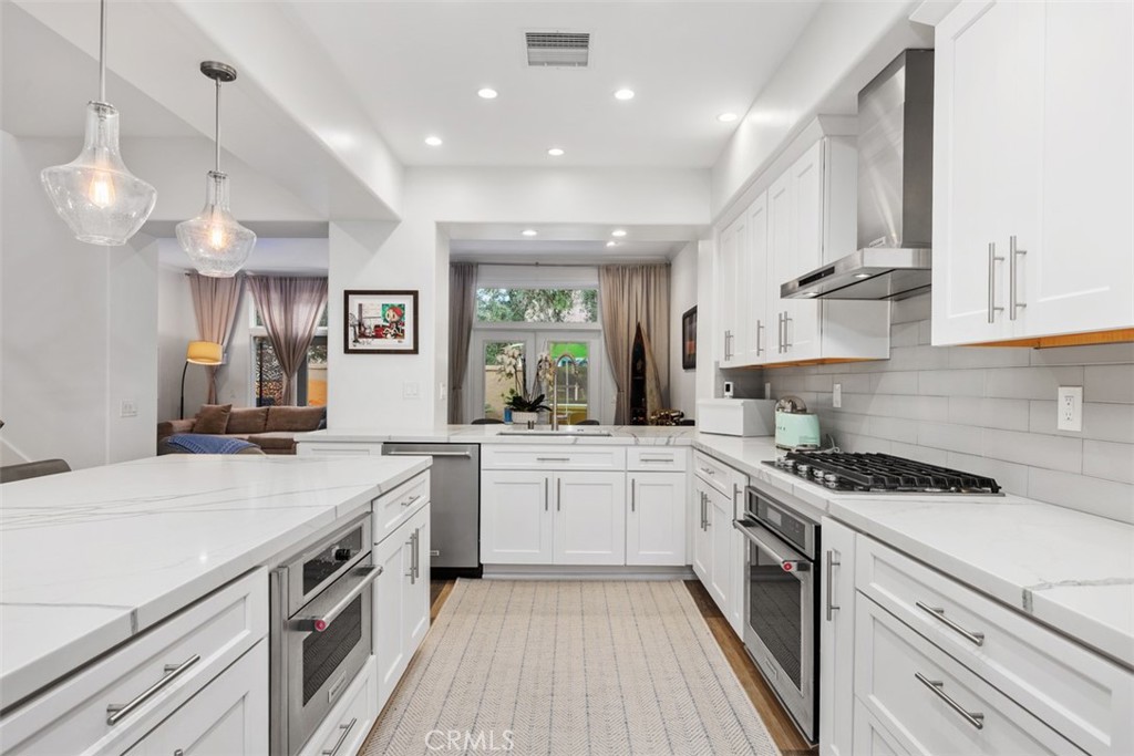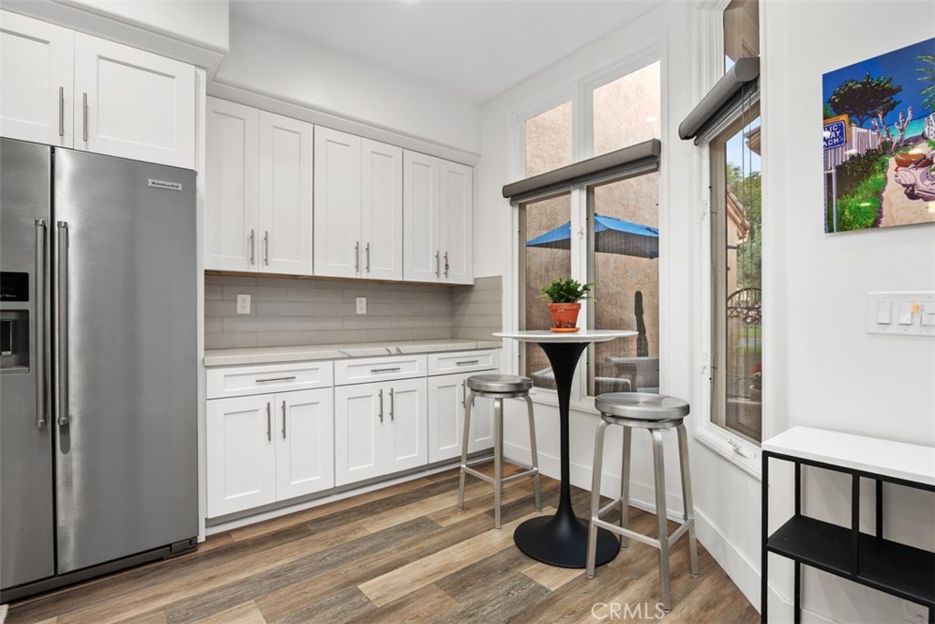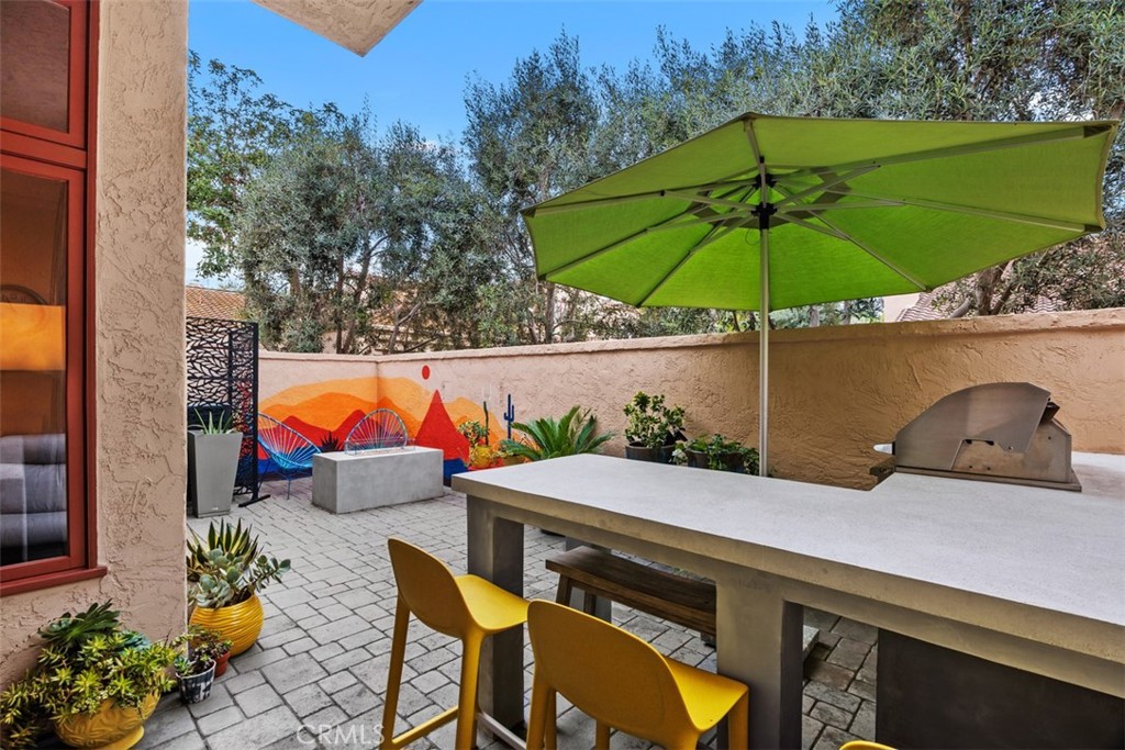 Set within the gated Alcala enclave of Whispering Palms, this refined Davidson-built residence blends elevated design with a relaxed, effortless way of living. The sought-after Viola model offers generous indoor-outdoor flow, airy volume, and thoughtfully refreshed spaces that complement the community's tranquil Rancho Santa Fe setting. A prior full remodel introduced quartz surfaces, European-style shaker cabinetry, Coretec Blackstone Oak plank flooring on the main level, and KitchenAid appliances. The current owner continued the enhancements with hardwood flooring throughout the upper level, hardwood stairs with a modern open rail, upgraded fireplace inserts, a refreshed patio environment, and additional functional improvements including a newer water heater, water purification system and updated garage door opener. The kitchen features quartz counters, a stylish matte ceramic tile backsplash, a center island, and seamless connection to the great room. The living area centers around a stone-accented fireplace and extends toward the outdoor patio--finished in custom concrete pavers and designed with a built-in dining/bar setup, BBQ, and fire feature for effortless evening gatherings. Upstairs, the private rooms feel warm and calm, supported by rich hardwood flooring and a thoughtfully enhanced primary suite with quartz counters and contemporary finishes. The Alcala community provides a serene resort-style environment with two pools, two spas, lushly maintained grounds, roaming security, and gated access with an attendant on most days. Positioned moments from the La Valle Coastal Club, coastal conveniences, and all the charm of Rancho Santa Fe, this residence offers an elevated lifestyle where comfort, design, and ease converge.
