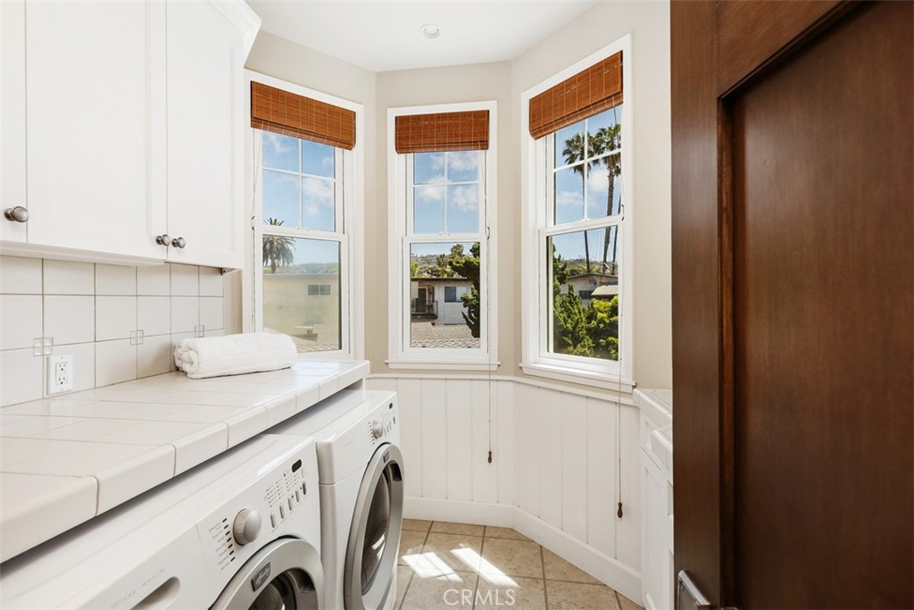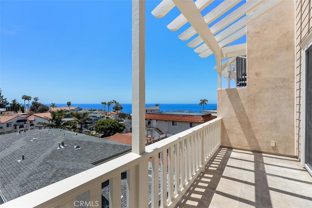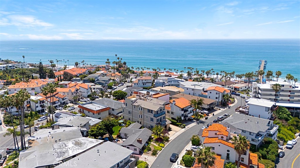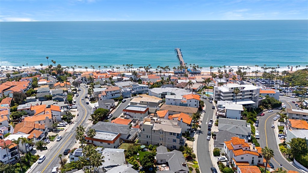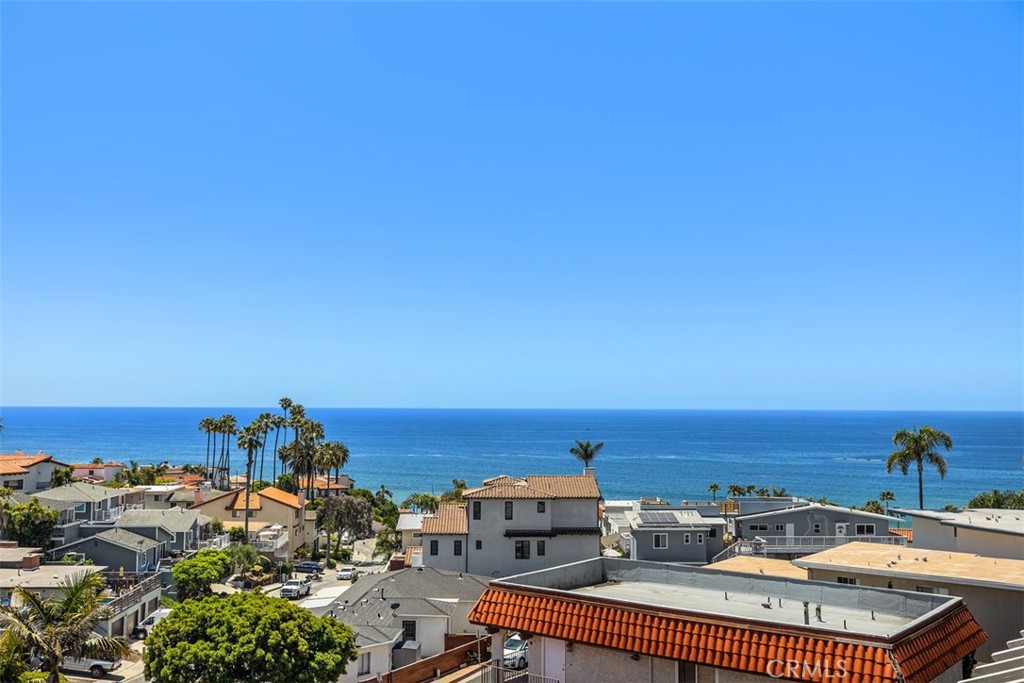 Located in one of the most desirable areas of San Clemente, 407 Monterey Lane is steps away from the famed San Clemente Pier, beaches, as well as the top culinary spots, wine bars, and boutique shops of Avenida Del Mar. This 3-bedroom, 4-bathroom home offers breathtaking panoramic ocean and city views from almost every room, encapsulating the essence of living by the ocean. The professional kitchen is equipped with GE Monogram Profile series appliances, including a 36" refrigerator, 48" commercial-grade range, double ovens, noise minimizer dishwasher, designer fixtures, and a walk-in pantry. The large family room, adjacent to the kitchen, features one of four ocean-view decks in the home. A gorgeous fireplace warms the space, and sliding glass doors open to a spiral staircase leading to the rooftop deck. The spacious primary suite includes a primary bath with dual sinks, a separate claw-foot soaking tub, and shower. An elevator provides access to each floor. The 2-car garage offers high ceilings, custom cabinets, and a utility sink. Other features include multi-zoned controlled heating systems, two air conditioning units, a re-circulating hot water system, ample storage, all Wi-Fi equipment (UNIFI) - comprising six high-end access points hardwired for top-speed internet throughout the home, a Eufy video doorbell, in-ceiling speakers, family room Samsung TV, and a wireless smart-controlled sprinkler system.