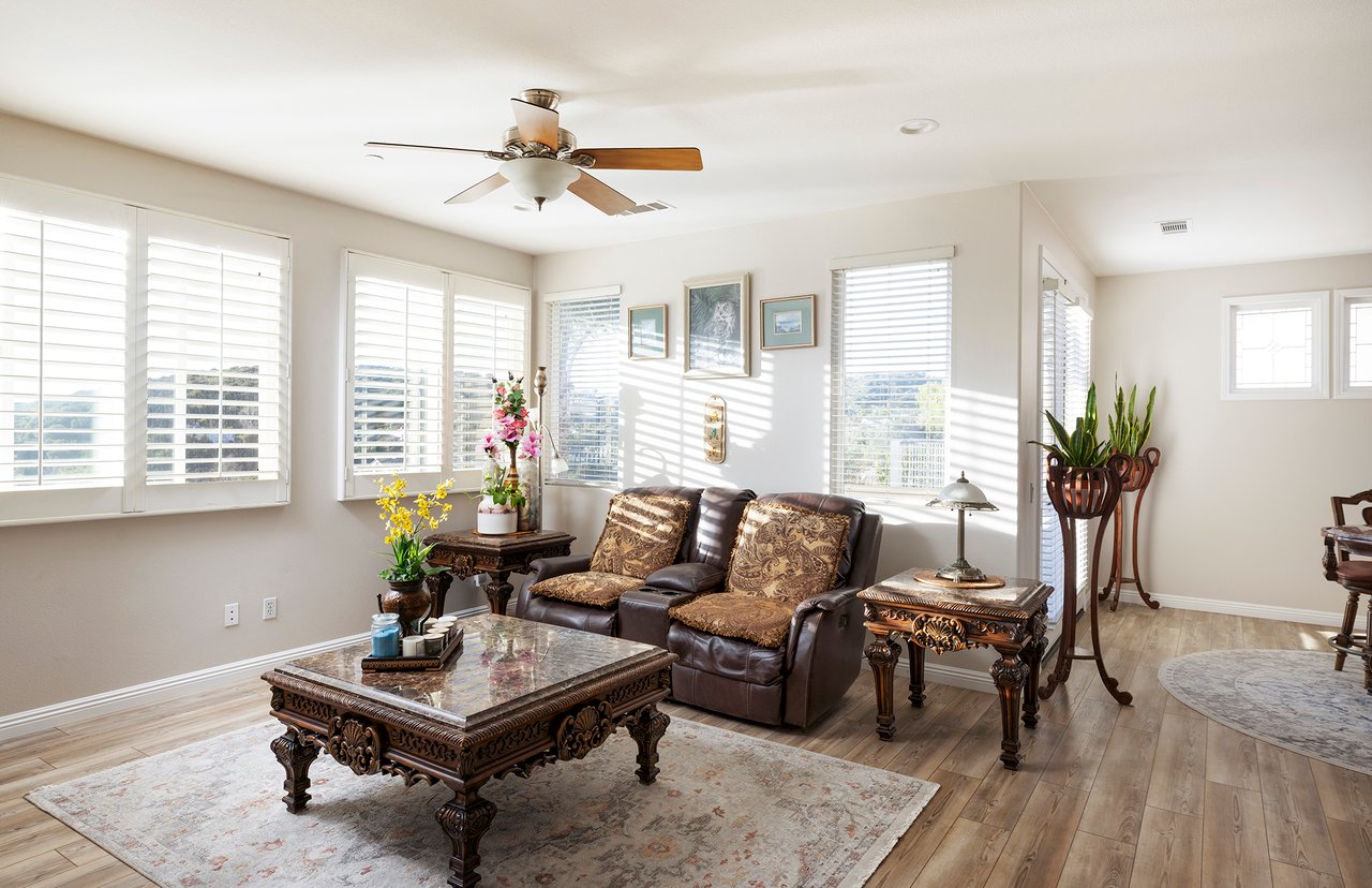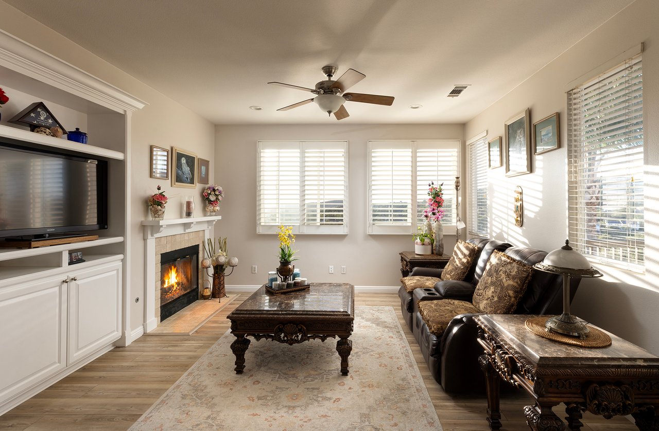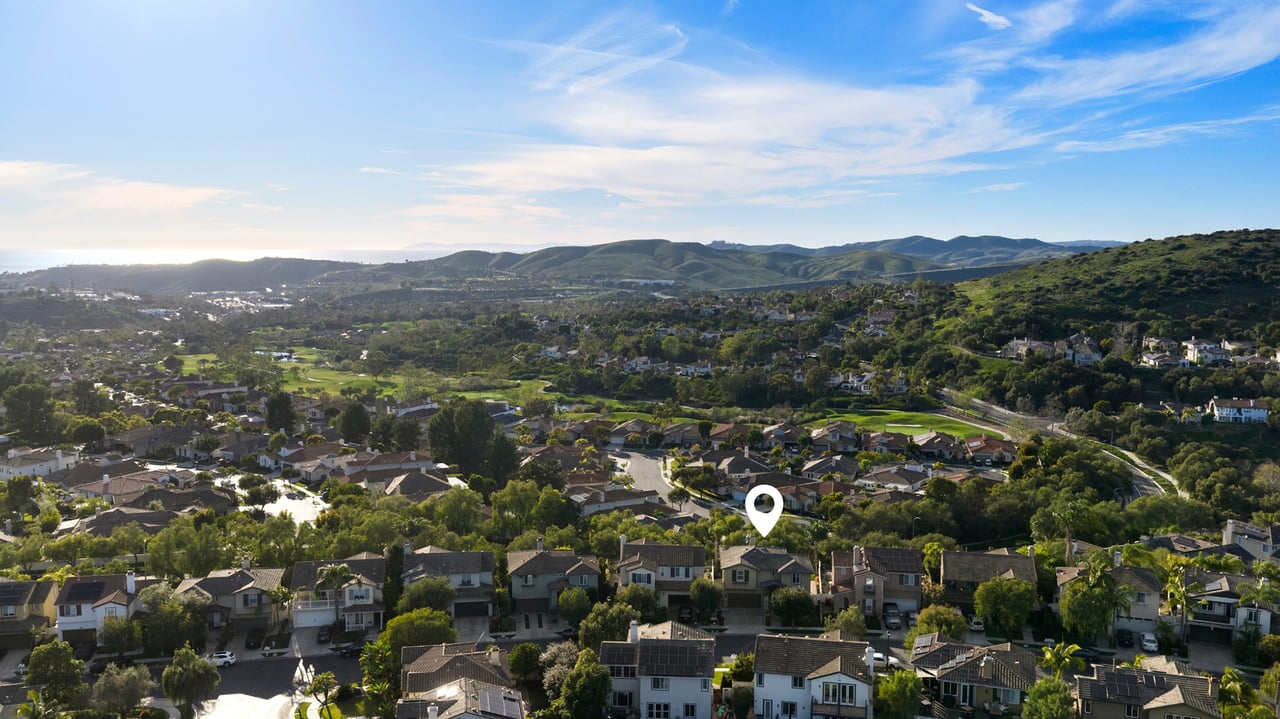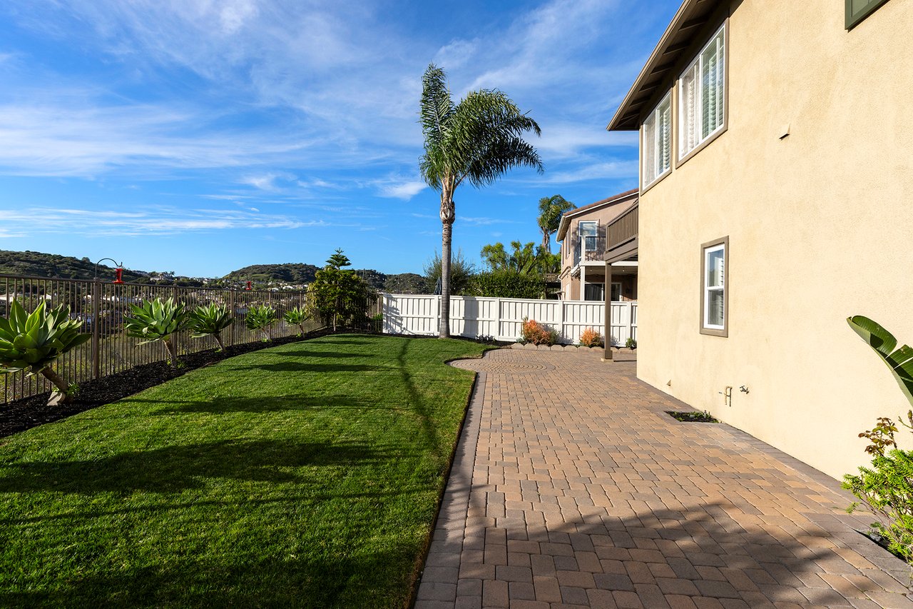 Set on a premium view lot in Farralon Ridge, this Brookfield home offers space, light, and an elevated perspective over Talega's rolling hills, open valley views, and a peek-a-boo glimpse of the Pacific beyond. With no homes directly behind, the setting feels open and private, with wide skies and layered vistas that shift beautifully throughout the day. Designed with a reverse floorplan, the main living areas and primary suite are positioned upstairs to capture natural light and views. The living room features a fireplace and expansive windows, flowing to the dining area and a private balcony--an inviting place to take in morning light or evening skies. The layout offers a comfortable flow for both daily living and gathering. The kitchen opens to the family room and includes wood cabinetry, KitchenAid stainless steel appliances, a five-burner gas cooktop, separate oven, pantry storage, and a breakfast counter for casual dining. Flooring throughout the home includes luxury vinyl tile, with tumbled travertine in the entry and kitchen, and terra cotta tile in the bathrooms and laundry room--each space finished with materials chosen for durability and character. The primary suite offers hillside, valley, and peek-a-boo ocean views, along with a walk-in closet and a spacious bath featuring dual sinks, a separate walk-in shower, and a jetted soaking tub. Two additional bedrooms and flexible living space provide options for guests, remote work, or creative use. Seller upgrades include an updated A/C system, electrical panel, water heater, KitchenAid stainless steel appliances, interior and exterior paint, exterior lighting, Polyaspartic garage flooring, plus more--thoughtful improvements that enhance comfort, efficiency, and everyday function. Outdoors, the backyard includes lawn and patio areas framed by wrought iron fencing to preserve the view. With no rear neighbor, the lot enjoys both openness and privacy, along with generous space to explore the addition of a future pool. Living in Talega means access to community pools, pickleball and tennis courts, parks, playgrounds, clubhouse spaces, miles of scenic trails, and the Talega Golf Club. Award-winning schools, neighborhood shops, dining, and San Clemente's beaches are just minutes away. A well-located home with views, meaningful upgrades, and a layout designed to elevate everyday living.