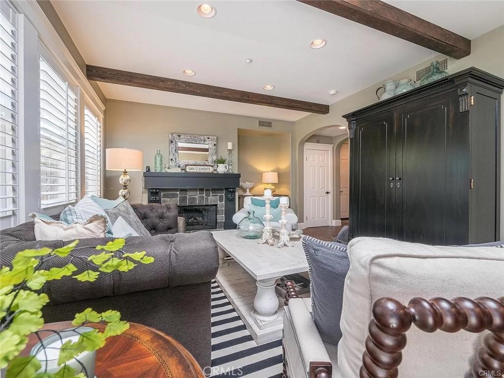 This three-bed, two-and-a-half bath townhouse in Talega features elegant and well-appointed interiors with multiple living areas, including a dedicated home office, a spacious living room with exposed wooden beams, modern fixtures, and a private, enclosed backyard. The home's design blends contemporary and classic Spanish design elements, highlighted by upscale finishes and abundant natural light. The surrounding community offers extensive amenities, including several pools and hot tubs, well-maintained parks, engaging playgrounds, and scenic trails. Residents enjoy convenient shopping and dining options within walking distance and the highly-rated Vista Del Mar K-8 School school nearby. Additionally, golf enthusiasts can enjoy close proximity to the Fred Couples designed Talega Golf Club.