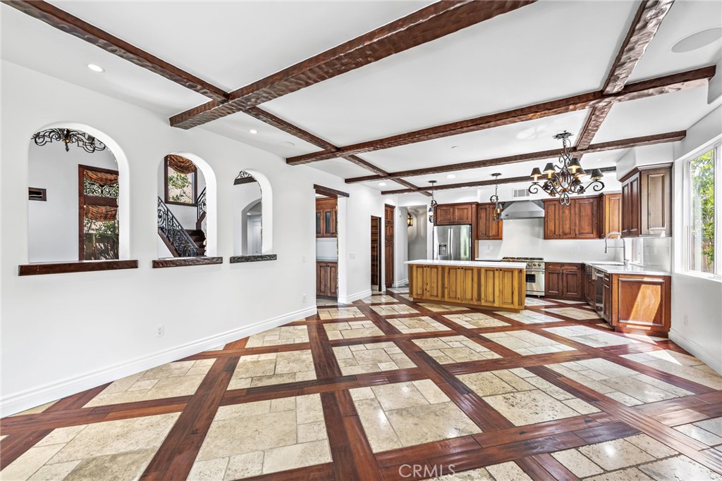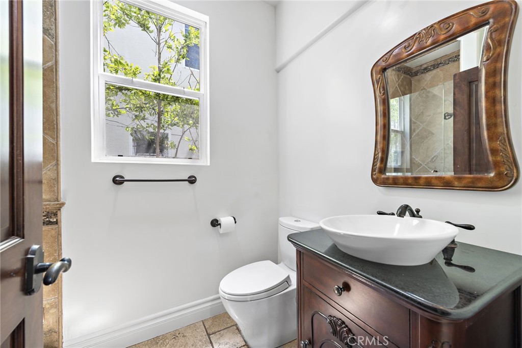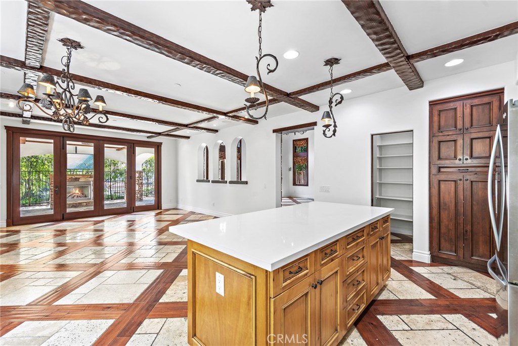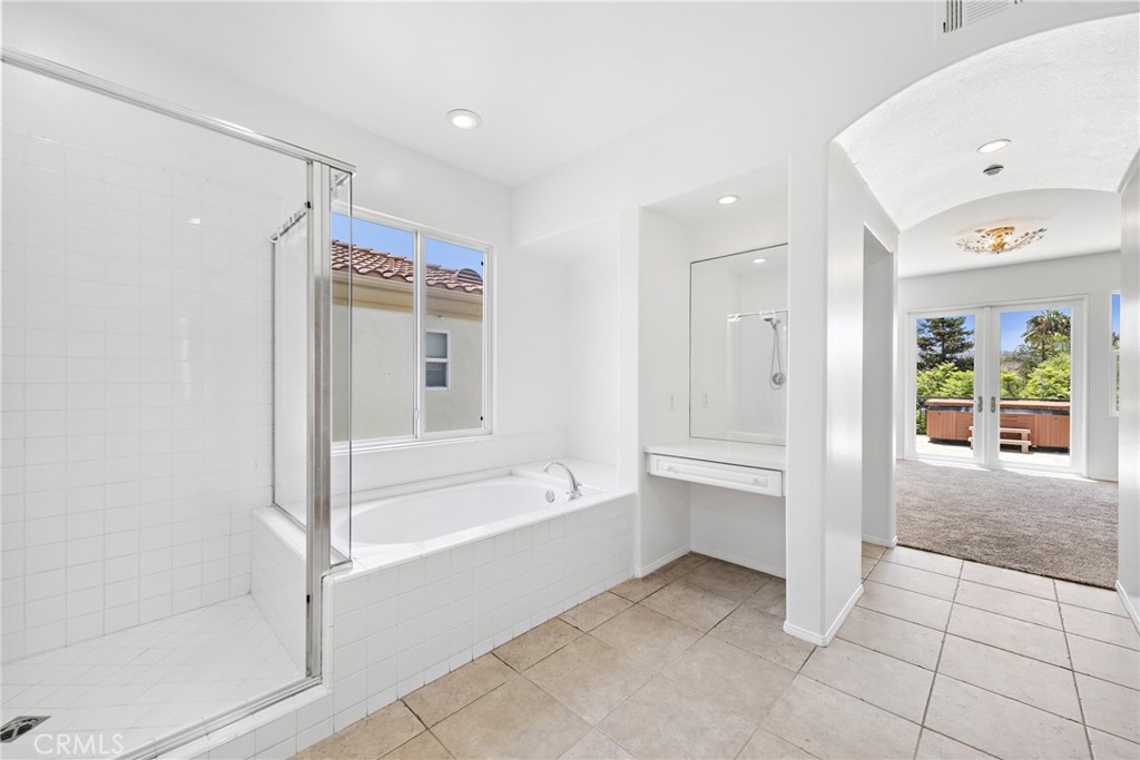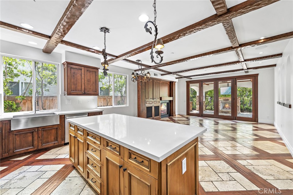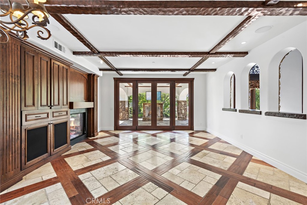 Rivaling custom homes with its impressive array of upgrades and refinements, this luxurious residence in Rancho San Clemente's gated Pacific Crest community is recently repiped and ready for move-in. Beautiful curb appeal is heightened with professionally maintained landscaping, water-saving synthetic turf, and a custom stone driveway. About 5,191 square feet, grounds continue in the private backyard, where stone decking complements a loggia with custom fireplace, in-ceiling heaters for year-round comfort, built-in speakers, a built-in BBQ bar with refrigerator, and remote-controlled shades creating a cozy outdoor room. Exceptional design and attention to detail is evident indoors as well, where virtually every room is adorned with custom enrichments. An arched cross-loin ceiling crowns the foyer, which leads to a stunning living and dining area with vaulted and beamed ceilings, a bar, custom stone wall, magnificent staircase with custom wrought iron railing, projector, and whole room black out curtains for entertaining. Matching wrought-iron detail graces nearby windows. Slideaway doors that open to the loggia provide an indoor/outdoor feel to the family room, where a beamed ceiling, fireplace and custom built-in entertainment center are on display. The family room offers a seamless transition to a chef's kitchen with island, a walk-in pantry, handsome wood cabinetry, custom countertops, and stainless-steel appliances including a new Viking six-burner range and matching vent hood. Four bedrooms, three baths and an office are offered in approximately 2,781 square feet of living space that is enhanced with fresh paint, custom wood and tile flooring, indoor/outdoor audio, wood interior doors, custom lighting fixtures, custom millwork, and a split three-car garage with built-in cabinetry and overhead storage. A library loft overlooks the living room, and the primary suite features a large and sunny deck with awning, hill views and a spa, a walk-in closet with built-ins, two sinks, a sit-down vanity, a soaking tub and a separate shower. Residents of Pacific Crest are rewarded with a prized location that is surrounded by rolling hills and open space. Outstanding schools, Vista Hermosa Sports Park, the Plaza Pacific shopping center, golf courses, hiking trails, and San Clemente's famous beaches and pier are enviably close.