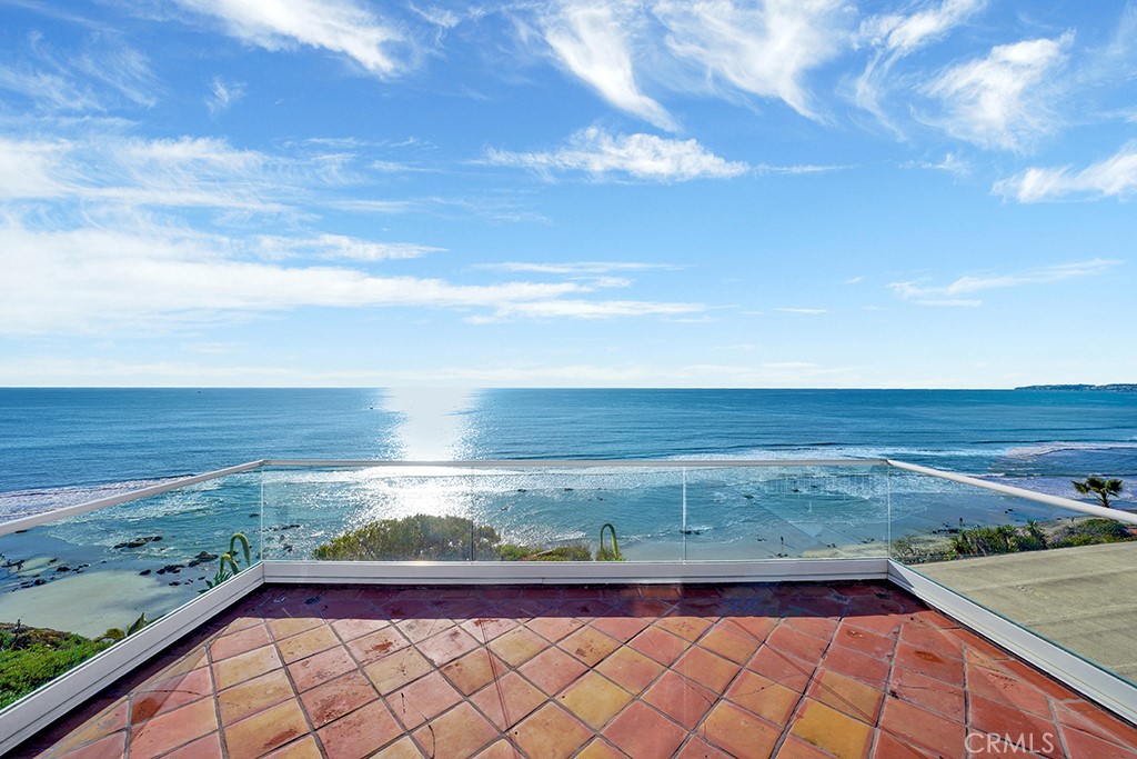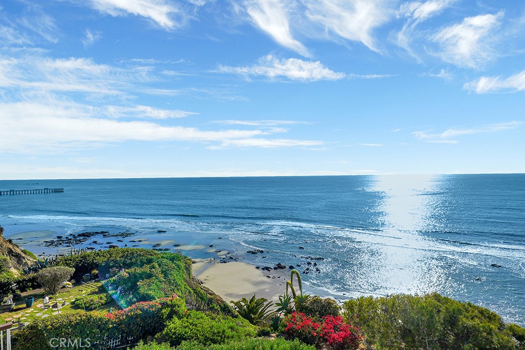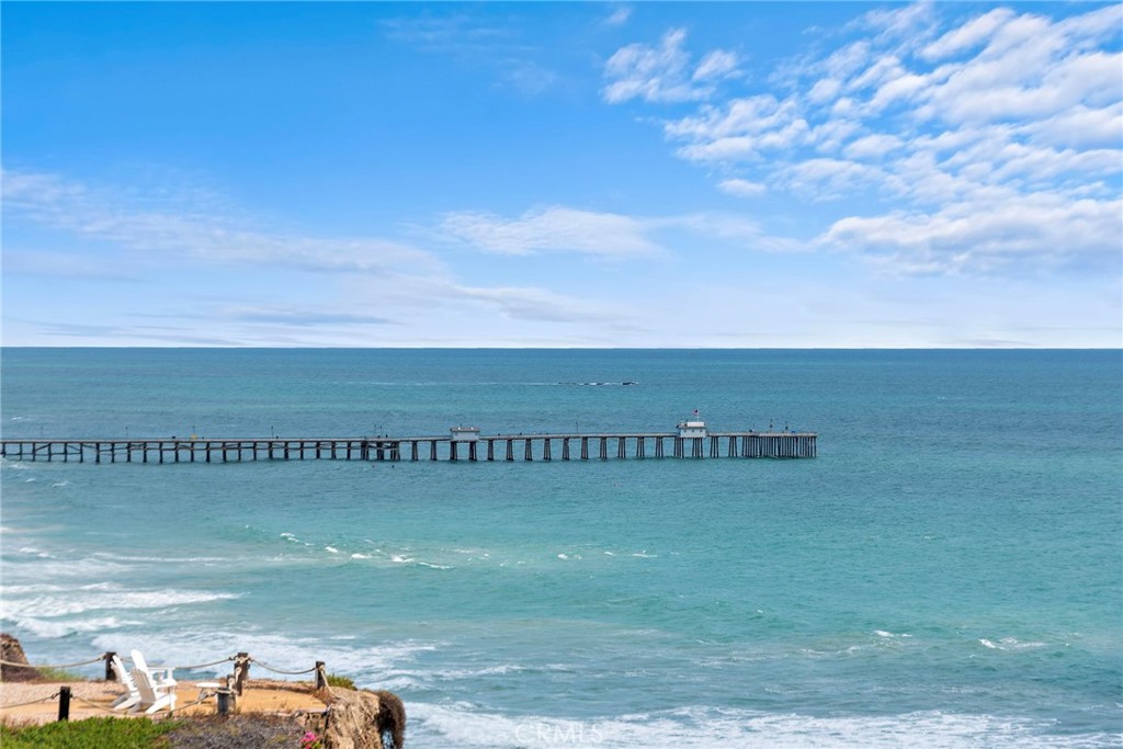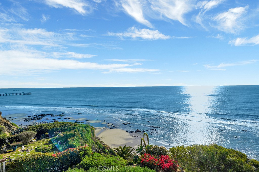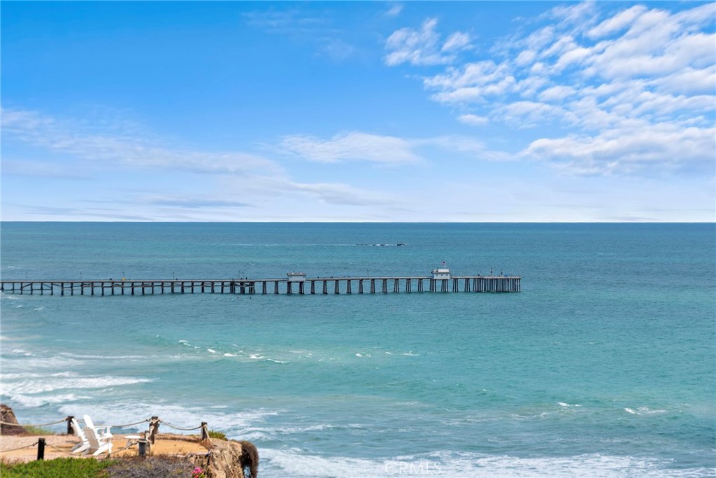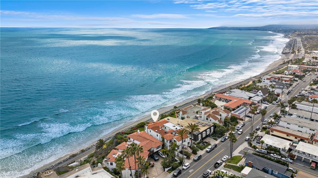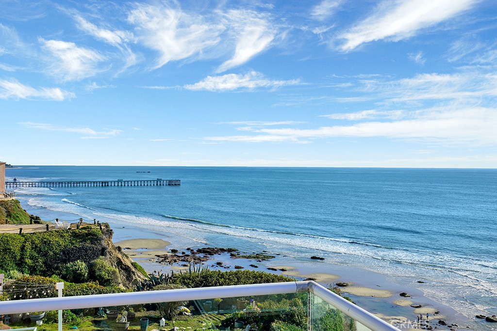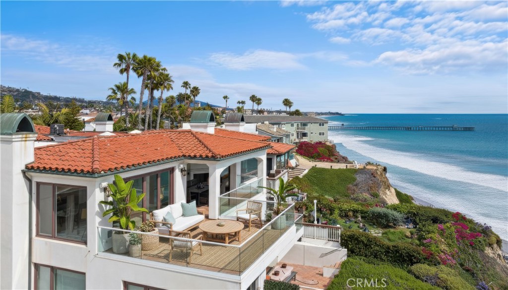 Positioned atop a secluded bluff overlooking the Pacific, this oceanfront penthouse in San Clemente presents a rare opportunity to experience coastal living with both privacy and architectural distinction. One of only three residences in an intimate building, the home captures sweeping views of whitewater, city lights, and the iconic San Clemente Pier from its elevated vantage point. Spanning approximately 3,287 square feet on a single level, the interior is accessible by private elevator or a spiral stair rising from the courtyard. The layout is open and intentional, with the kitchen, dining area, and living room unfolding toward a full-width oceanfront terrace. Floor-to-ceiling glass invites natural light and frames uninterrupted coastal views, while a terrace fireplace creates a focal point for morning coffee or evening gatherings. The kitchen is both functional and expressive, anchored by a central island and detailed with granite countertops, a skylight, and walk-in pantry. A suite of KitchenAid appliances, including a built-in refrigerator, blends utility with understated design. Adjacent to the kitchen, a dedicated wet bar with wine refrigeration supports seamless entertaining. The dining space is defined by custom cabinetry and a second fireplace, offering warmth and cohesion to the open plan. The primary suite is oriented toward the ocean, with sliding doors that open to the terrace. A custom walk-in closet, spa-like bath with jetted soaking tub, walk-in shower, and overhead skylights contribute to a quiet, restorative atmosphere. Two secondary bedrooms share a sophisticated Hollywood-style bathroom, while a spacious media room with vaulted ceilings, a corner fireplace, and private balcony offers added flexibility for hosting or retreat. Additional features include secure subterranean parking for four vehicles and a location just moments from downtown San Clemente's shops, cafes, coastal paths, and beaches. This luxury penthouse is a rare expression of refined coastal living in one of Southern California's most sought-after enclaves.