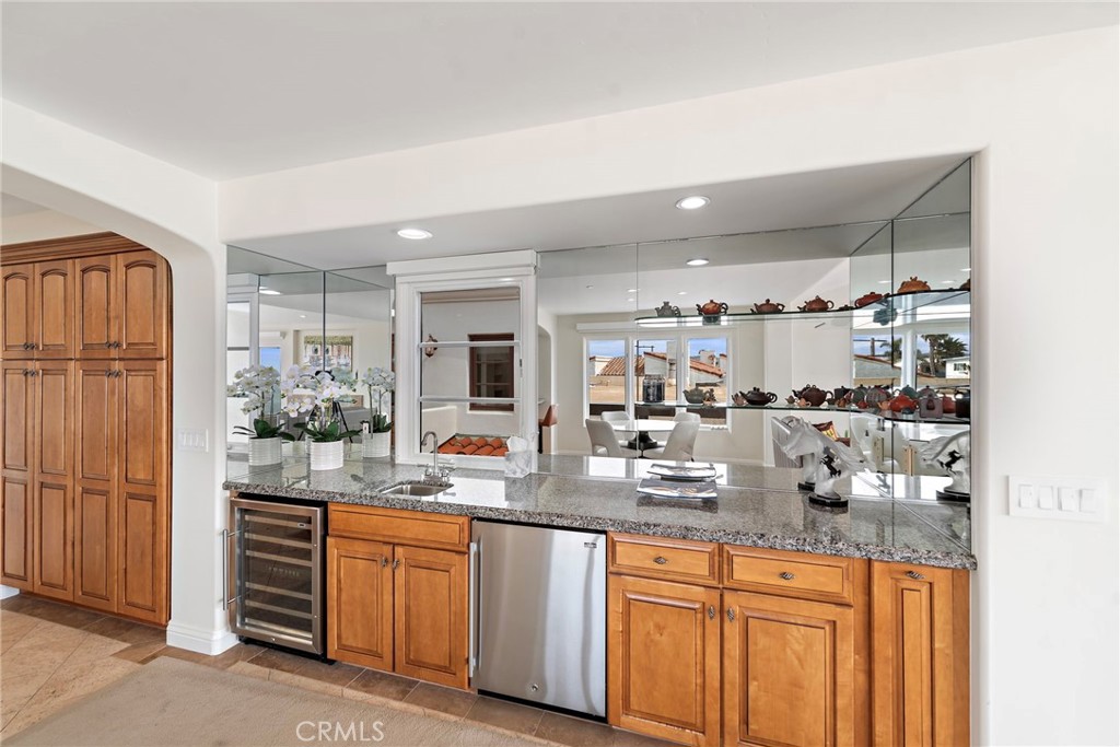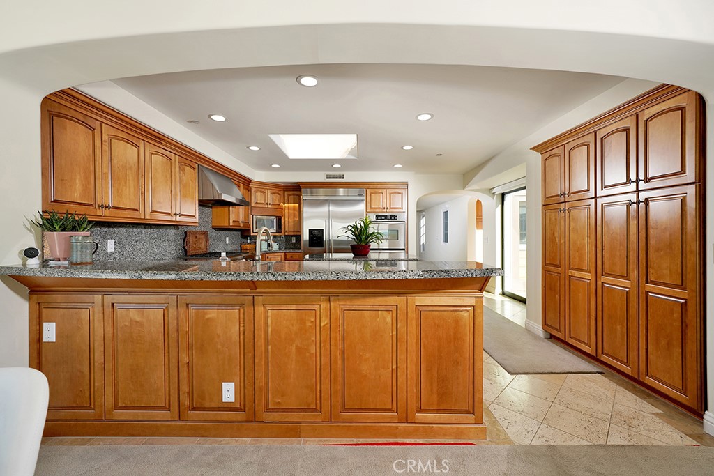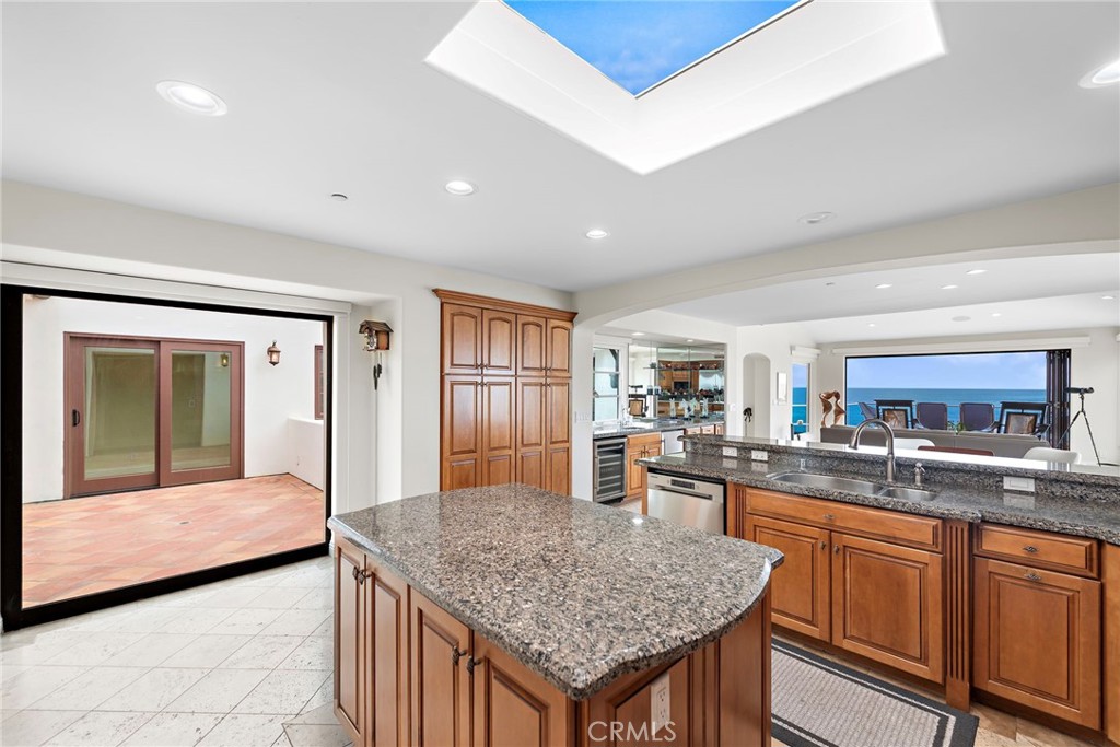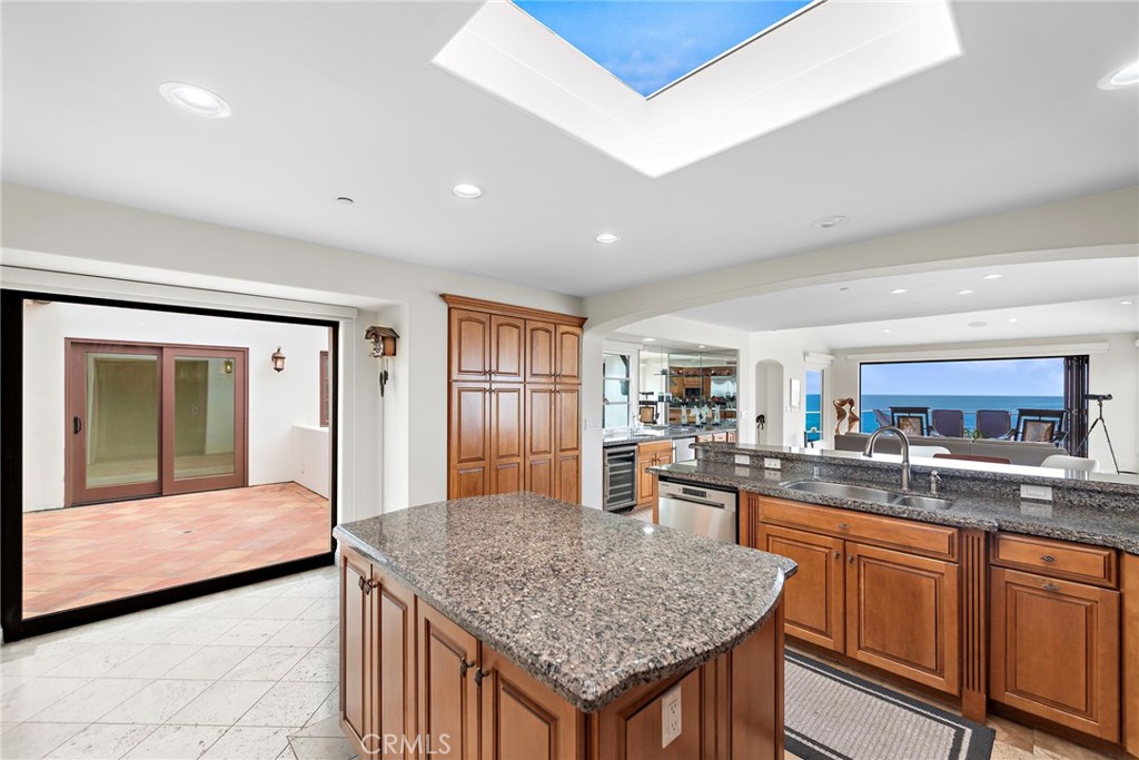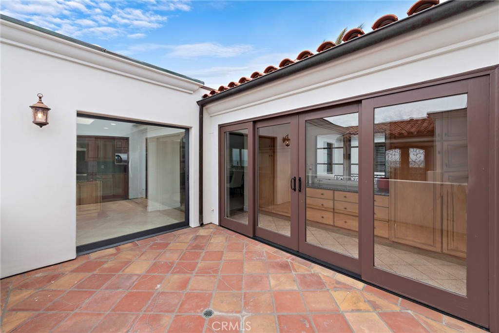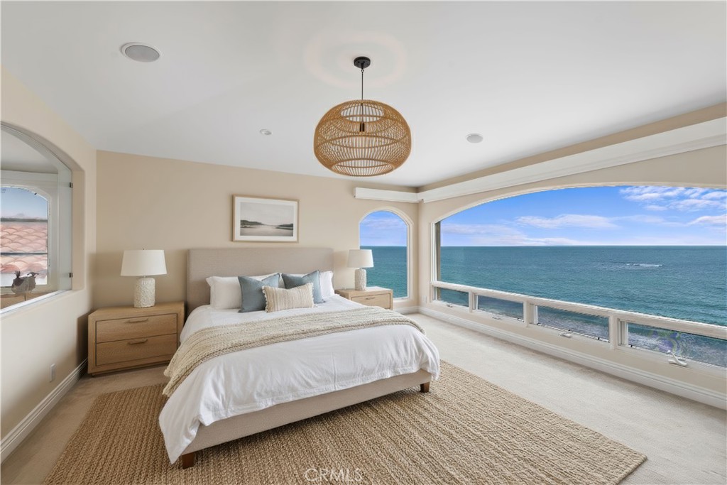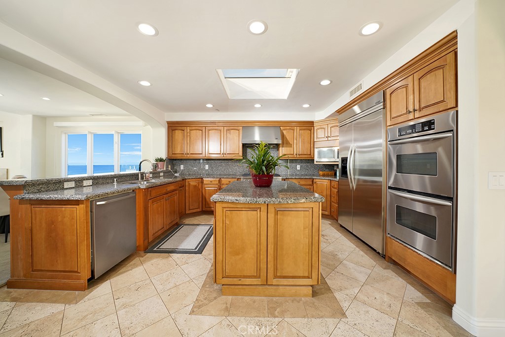 Positioned atop a secluded bluff overlooking the Pacific, this oceanfront penthouse in San Clemente presents a rare opportunity to experience coastal living with both privacy and architectural distinction. One of only three residences in an intimate building, the home captures sweeping views of whitewater, city lights, and the iconic San Clemente Pier from its elevated vantage point. Spanning approximately 3,287 square feet on a single level, the interior is accessible by private elevator or a spiral stair rising from the courtyard. The layout is open and intentional, with the kitchen, dining area, and living room unfolding toward a full-width oceanfront terrace. Floor-to-ceiling glass invites natural light and frames uninterrupted coastal views, while a terrace fireplace creates a focal point for morning coffee or evening gatherings. The kitchen is both functional and expressive, anchored by a central island and detailed with granite countertops, a skylight, and walk-in pantry. A suite of KitchenAid appliances, including a built-in refrigerator, blends utility with understated design. Adjacent to the kitchen, a dedicated wet bar with wine refrigeration supports seamless entertaining. The dining space is defined by custom cabinetry and a second fireplace, offering warmth and cohesion to the open plan. The primary suite is oriented toward the ocean, with sliding doors that open to the terrace. A custom walk-in closet, spa-like bath with jetted soaking tub, walk-in shower, and overhead skylights contribute to a quiet, restorative atmosphere. Two secondary bedrooms share a sophisticated Hollywood-style bathroom, while a spacious media room with vaulted ceilings, a corner fireplace, and private balcony offers added flexibility for hosting or retreat. Additional features include secure subterranean parking for four vehicles and a location just moments from downtown San Clemente's shops, cafes, coastal paths, and beaches. This luxury penthouse is a rare expression of refined coastal living in one of Southern California's most sought-after enclaves.
